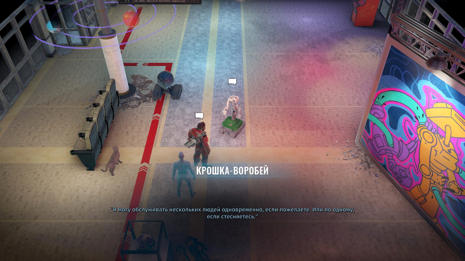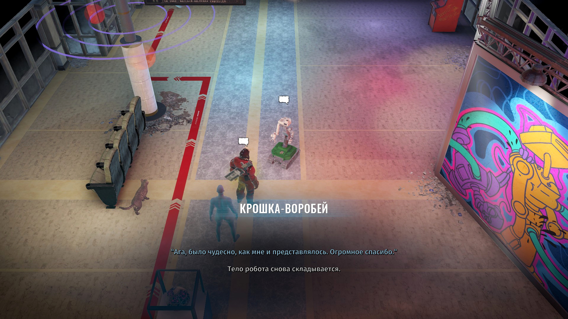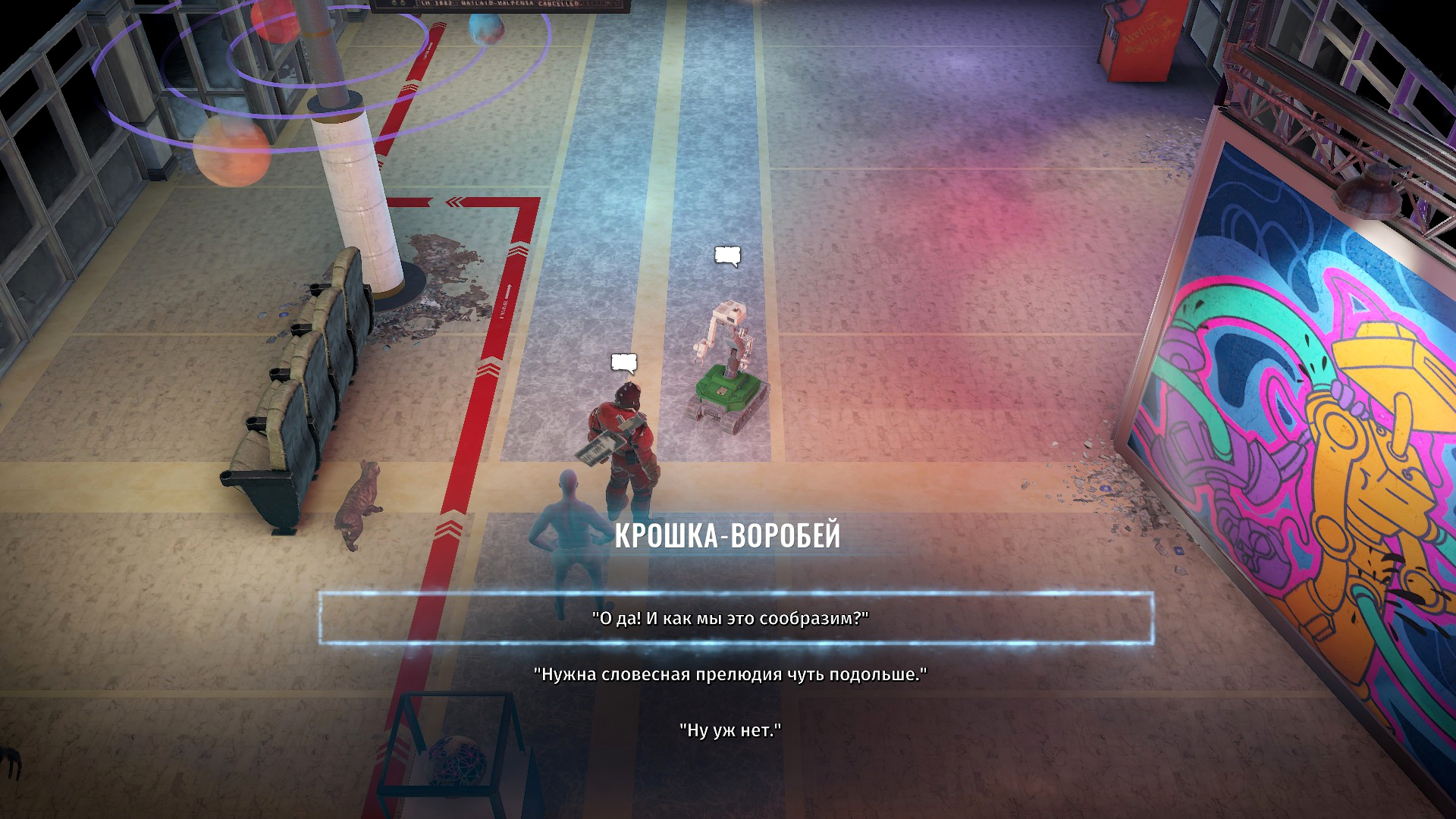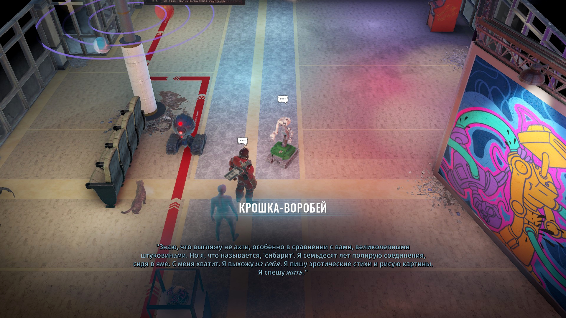 А вот задатки есть. Например, у дома В есть торговый автомат с напитками, который обрёл разум и любит болтать с прохожими. Спустя какое-то время при повторном визите с ним уже познакомится другая девушка у которой мужик — мудак и она будет ему жаловаться. И вот было бы забавно, если бы ты мог как-то помочь этому железному любителю поболтать выдвинуться в президенты или построить секту, ну что-то вот такое, интересное. Ну или на крайняк найти тело с писькой, перенести туда эту личность и они вместе с бабой пойдут сниматься в сериале ВандаВижен, но нет, на деле торговый автомат считают неисправным и просто откатывают к заводским настройкам, стирая ему личность. Возможно, можно было бы как-то изменить финал, но мне кажется нет. Вот такие здесь все квесты, сама идея у них может и не плоха, но по ходу дела они становятся всё тупее и унылее.