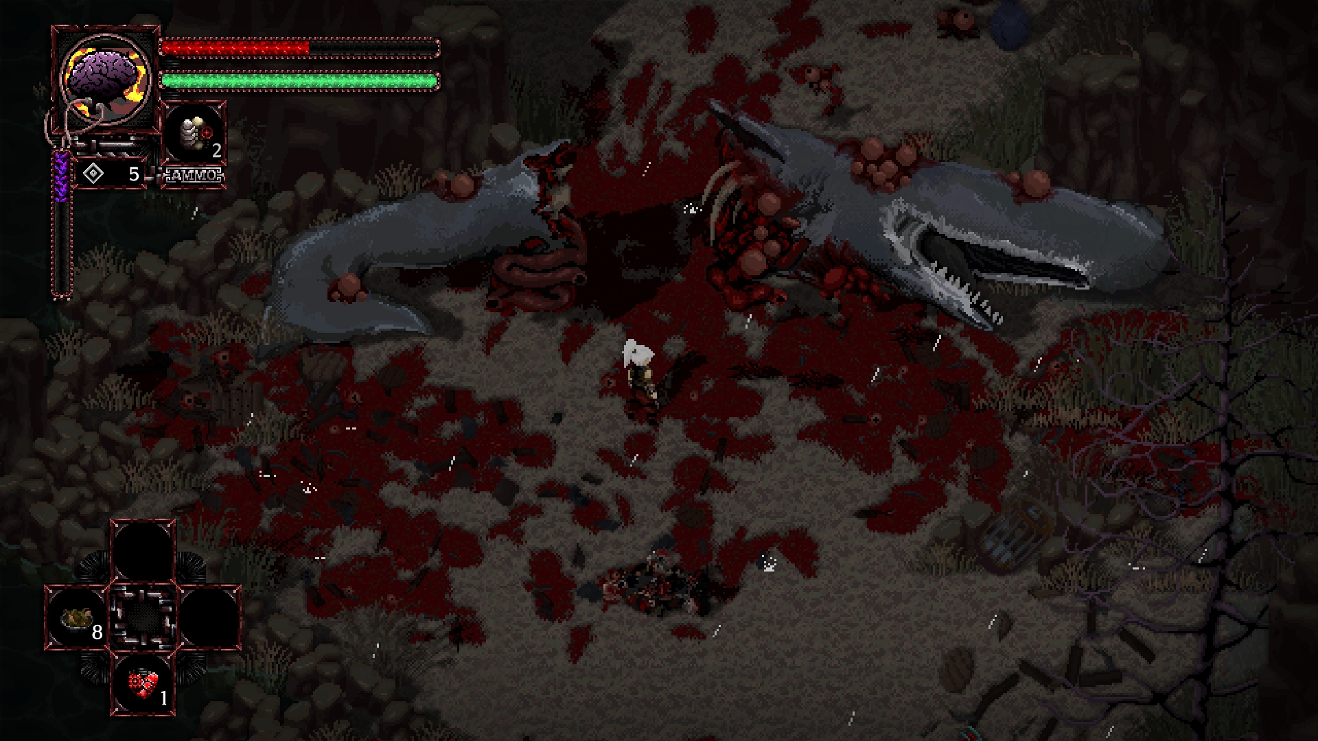 Пока все ждали Cyberpunk 2077 в Steam тихо релизнулась никому не известная пиксельная бладборну подобная соулс лайк игра с мрачной Лавкрафтовской атмосферой, неплохими боссами, арсеналом оружия и упоротым сюжетом. Это первые впечатления и именно поэтому она тут, я не успел далеко провинуться и не могу сказать, будет ли она интересной до конца.