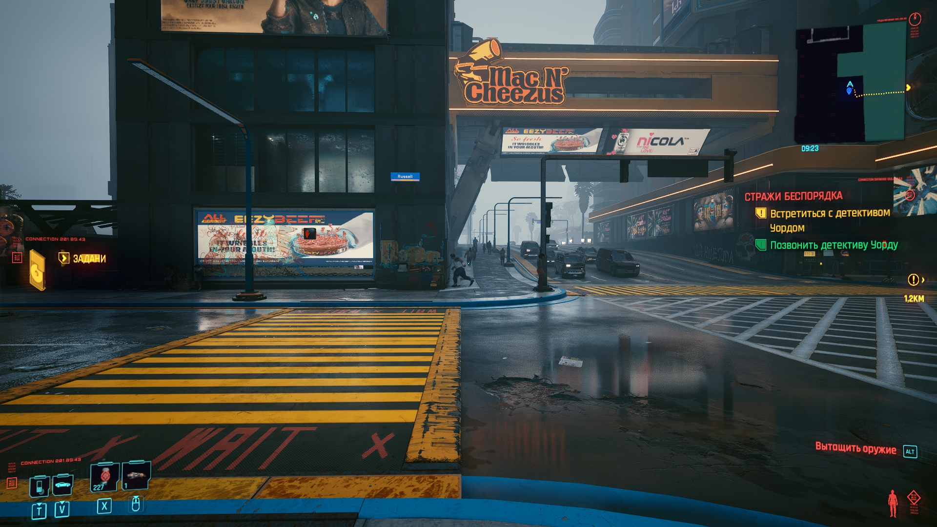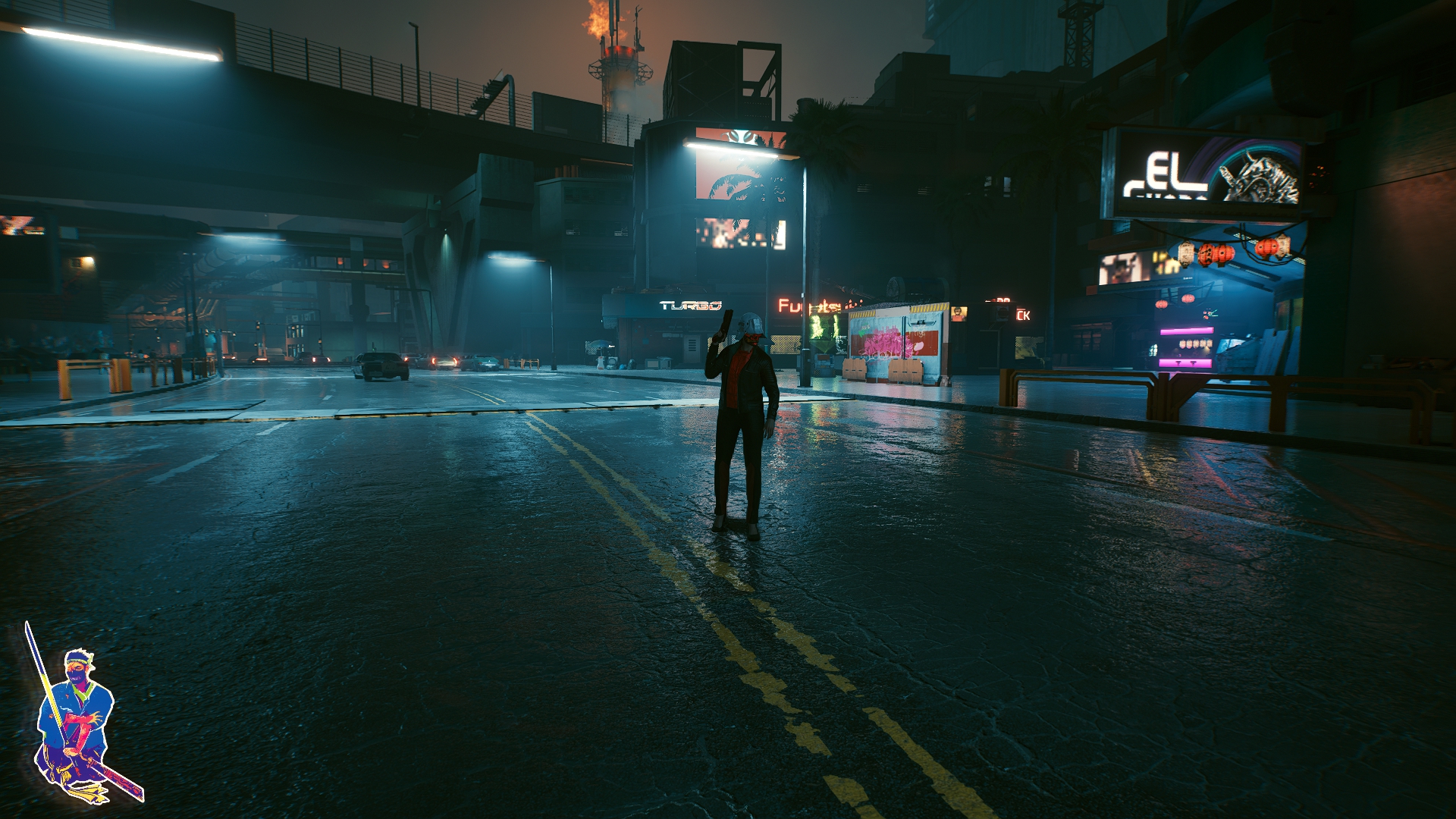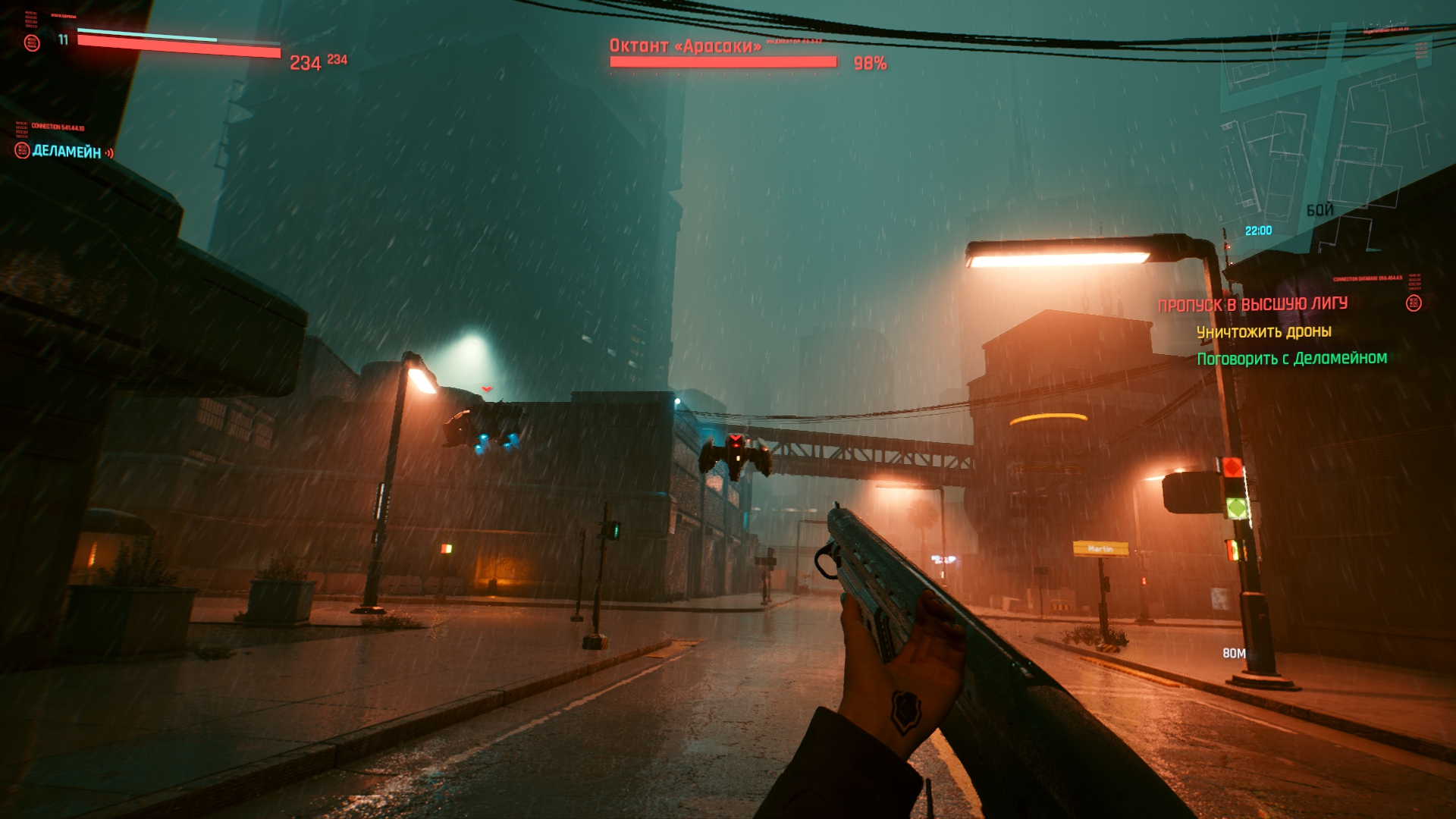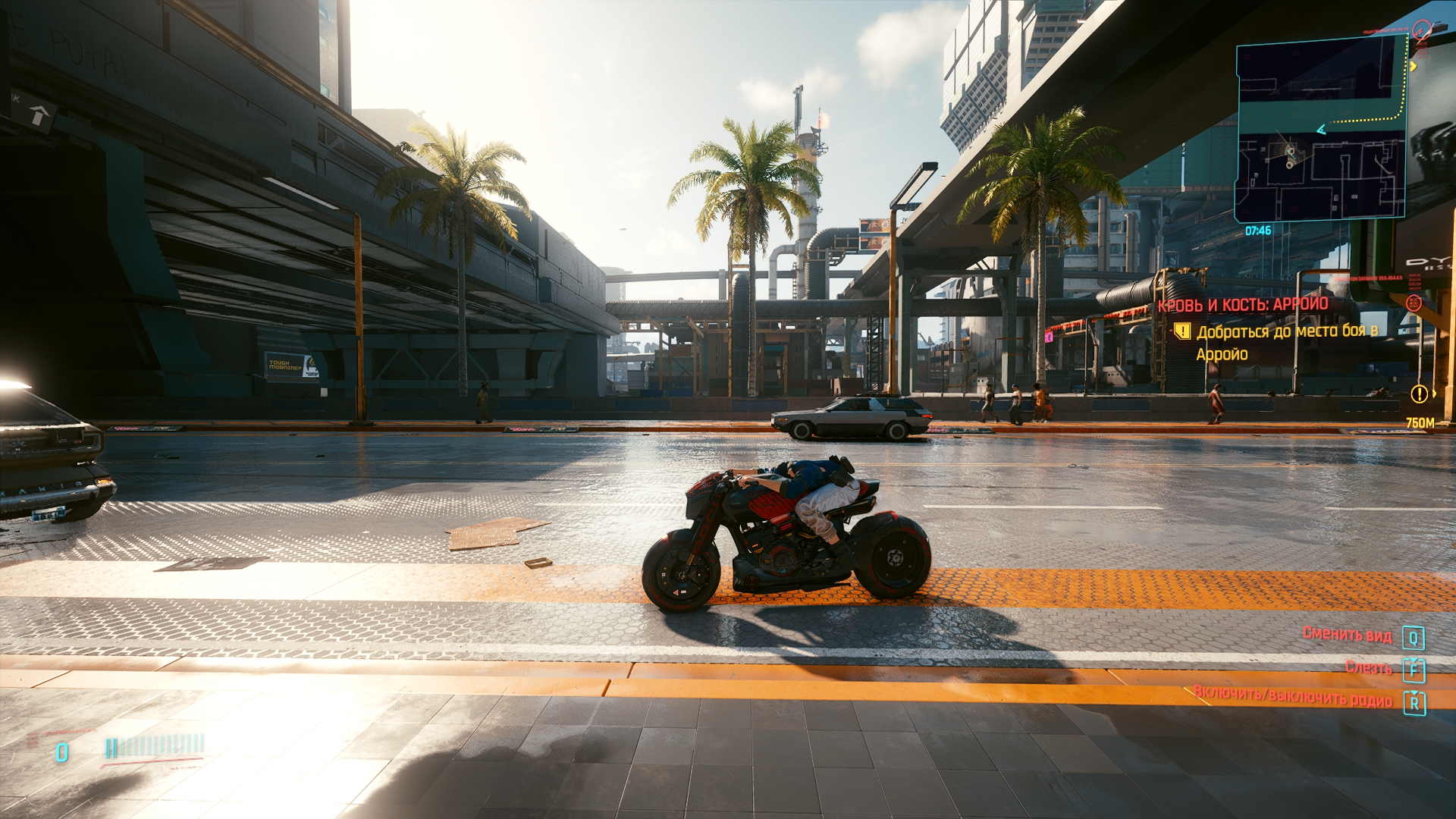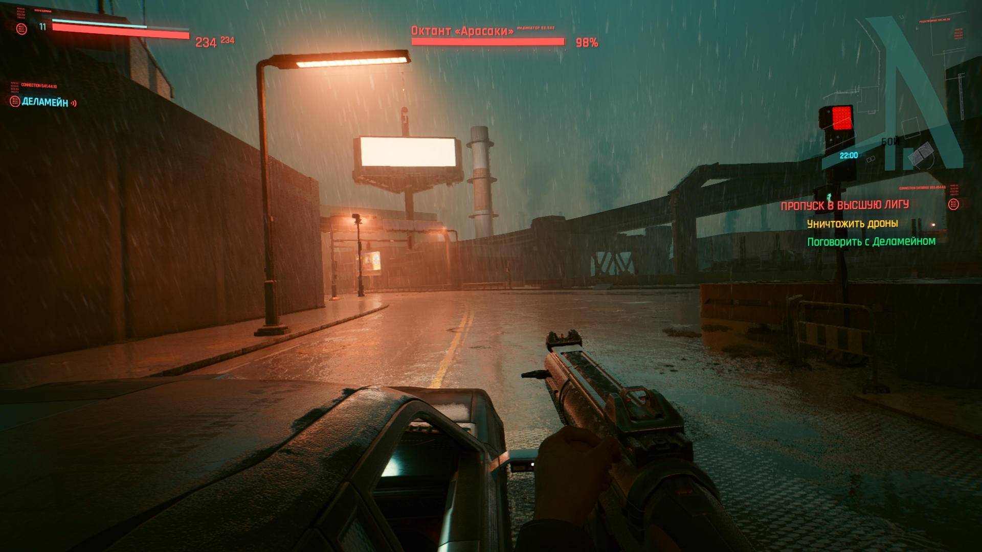 Ну и последнее, это атмосфЭра, я много лестного слышал и до выхода игры, мол, там охуенная музыка и т.д. Я не слушал и просто не обращал внимания, но поиграв... Выключил через 30 минут не сумев терпеть убогие радиостанции, которые заебут своим однообразием крайне быстро, а ОСТ самой игры насколько невыразительный, что даже если его не выключать, он не запомнится. Но самое забавное — в игре, которая называется киберПАНК нет ни одной рок-панк музыки вообще, там в принципе рока нет, только кто-то в микрофон насрал и эти великолепные звуки засунули в радиостанцию рока. Ну и хрен с ним, панком, тут и кибера нет. Для примера советую послушать Daniel Deluxe у которого музыка в 2077 раз лучше любого высера из игры, я уже не говорю про OST к бегущему и прочей классике.