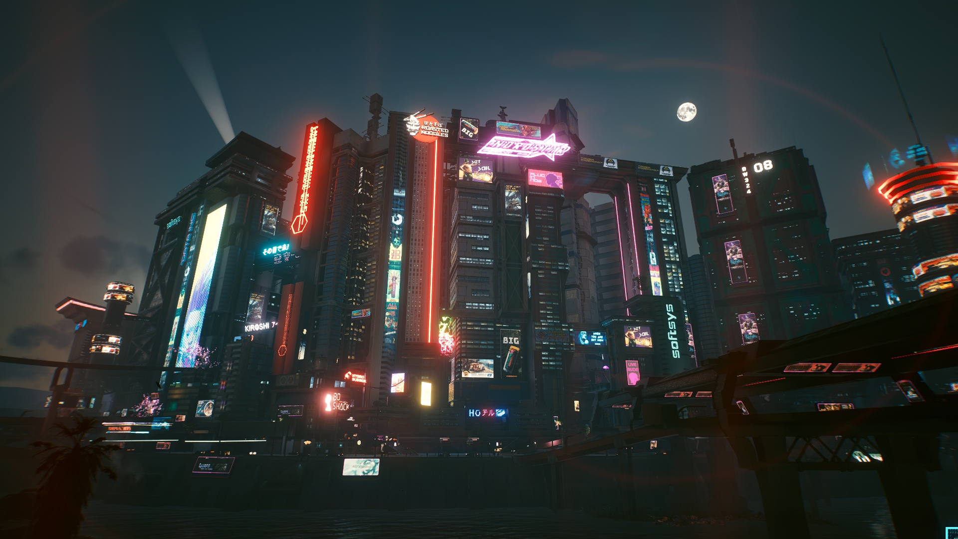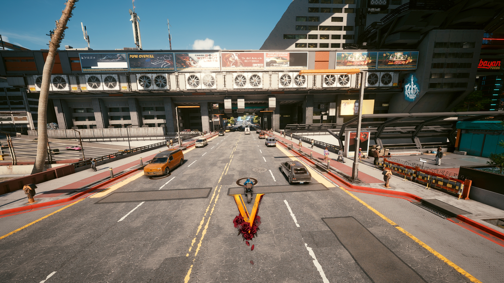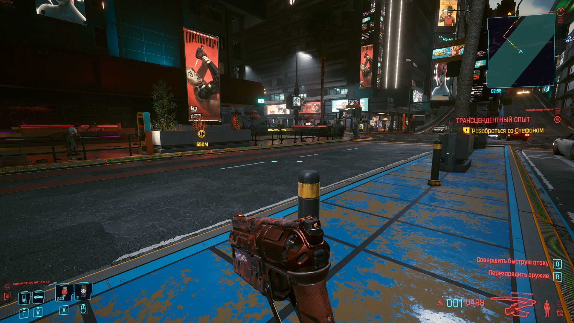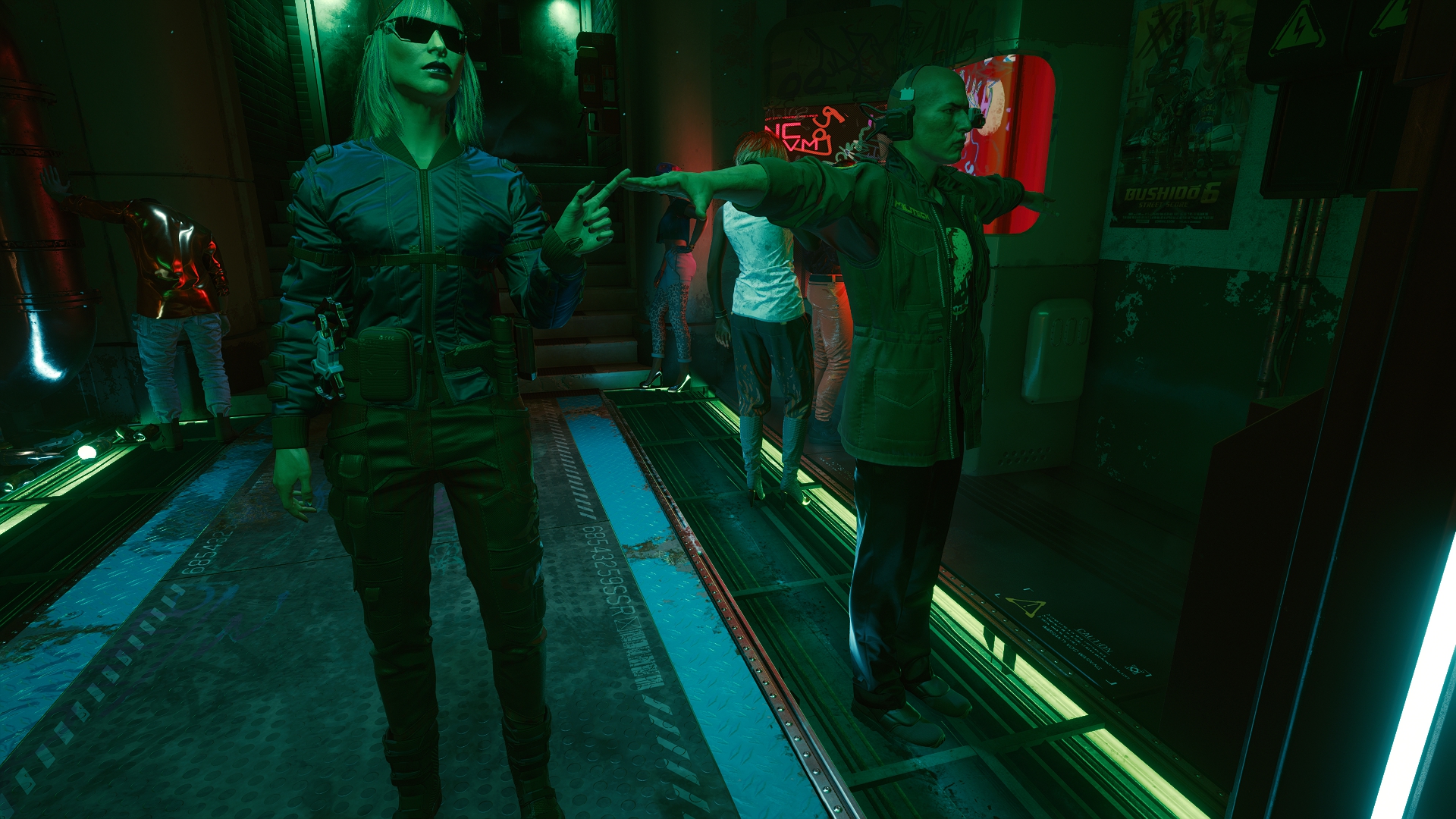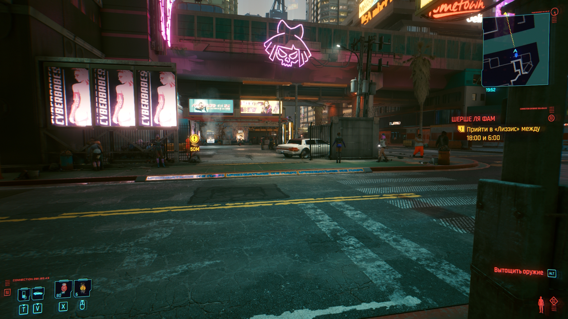 Ух, даже не знаю с чего начать. Попробуем для разнообразия с чего-то позитивного. Графика, она в игре хорошая, общие виды города, персонажи, оружие и одежда выглядят отлично, тут не доебешься. Хотя, все это выглядит отлично, пока игра не багует. И.е. где-то 30% времени. Замечу, я говорю именно про работу художников, те же анимации или физика одежды — стыд и позор. В 2020 не сделать хотя бы простенькую анимацию у пальто ещё постараться надо. Да и если честно, считать это за плюс максимально странно, когда каждый год выходит игра, которая поражает своей графикой. Так и тут, с выходом нового МЕ или Драгон Аге, киберпанк скорее всего конкуренции не выдержит.