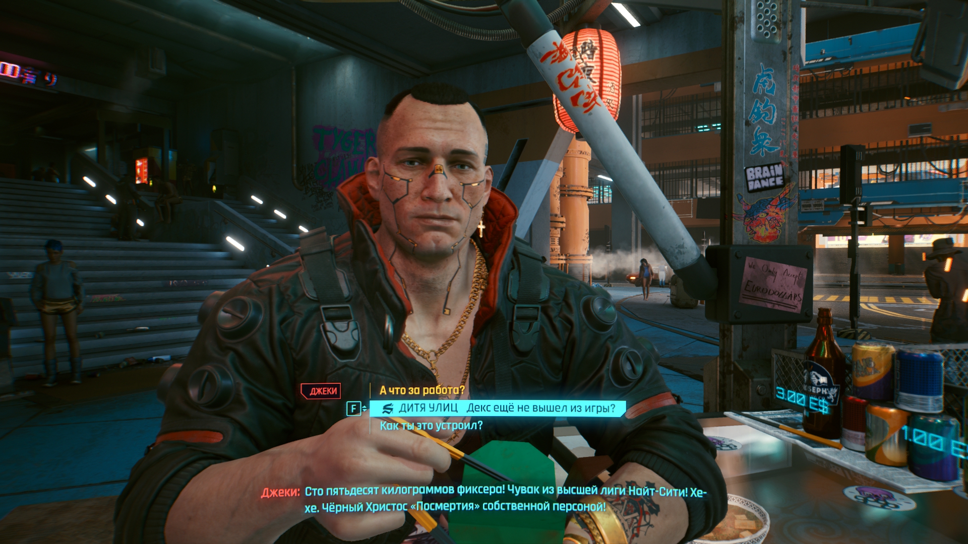 Ааа, точно, это же как бы ЭРПЕГЕ ! Это сейчас смешно прозвучит, но Ф4 больше РПГ, чем Киберпанк, хотя в фоллыче и оружия больше, и крафта там больше и стоила она меньше. Ну а если серьезно, это точно делали разрабы ведьмака ? Здесь вариативности нет от слова "совсем", почти половина квестов это куча воды и вариант "да" в нескольких формулировках, т.е. по факту ты не сможешь отказаться в сюжетном задании, например. Да и в побочках герой редко что-то решает. Зато можно задать кучу тупых вопросов, на которые даже НПС реагируют в стиле "ты че, тупой ?" Так же меня поразил сам сюжет, он настолько инфантильный и несвязный, что иногда просто не понимаешь, куда пропадают персонажи. Вот например, есть у нас СПОЙЛЕР, тебя с этим СПОЙЛЕРОМ знакомят, водят на задания и всячески пытаются сдружить, как это было в том же ведьмаке с Весемиром. Вот только там он умирает где-то под конец игры, а тут СПОЙЛЕРА сливают в самом начале и больше ты о нем не вспоминаешь... Зачем это персонаж ? Или вообще вся линия японцев, например отцеубийство. Ты этого японского пиздюка больше в игре не встретишь вообще, так нахуй он всрался ? Ах, да, в игре же есть Киану, который без шуток, один из лучших персонажей в игре, он интересно комментирует происходящее, но его настолько мало, что под конец я так и не запомнил ничего выдающегося с ним. Кстати об отношениях В и Джонни, хера они так резко развиваются ? Джонни секунду назад хотел убить В, а потом решил помогать потому что... Таким образом он как бы нагибает Арасуку ? Кстати о самих квестах, каких-то прям интересных в сюжете нет, вообще. Ни одного квеста, который сравнился бы с кровавым бароном, путешествием по иным мирам, дракой с дикой охотой. Тут все какое-то камерное. Зато в побочках удивили, да. Квесты с Панам наверное самое интересное, что вообще есть в игре, ещё неплохо получился квест с недоИисусом и детективом. Все остальное либо тупо говно, либо скриптовое говно, ведь тут даже сесть на стул самому не позволят, только когда это необходимо по сюжету.