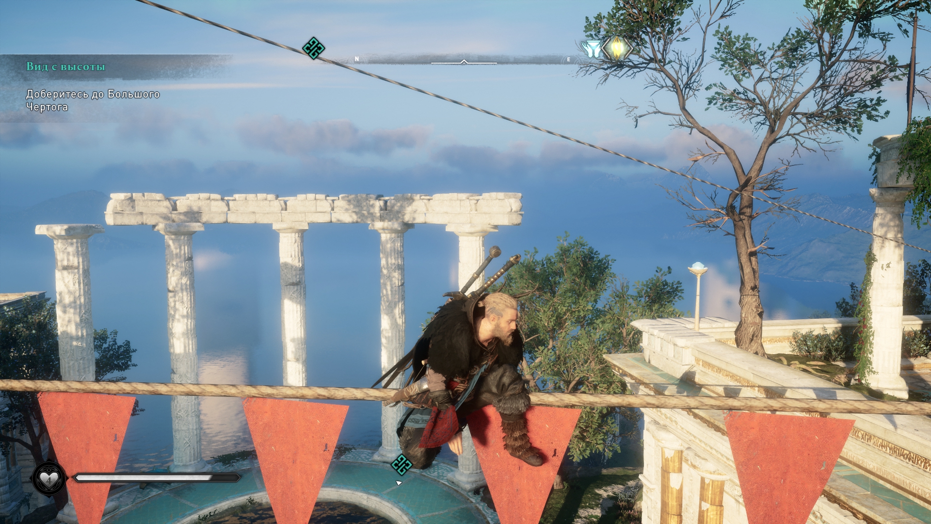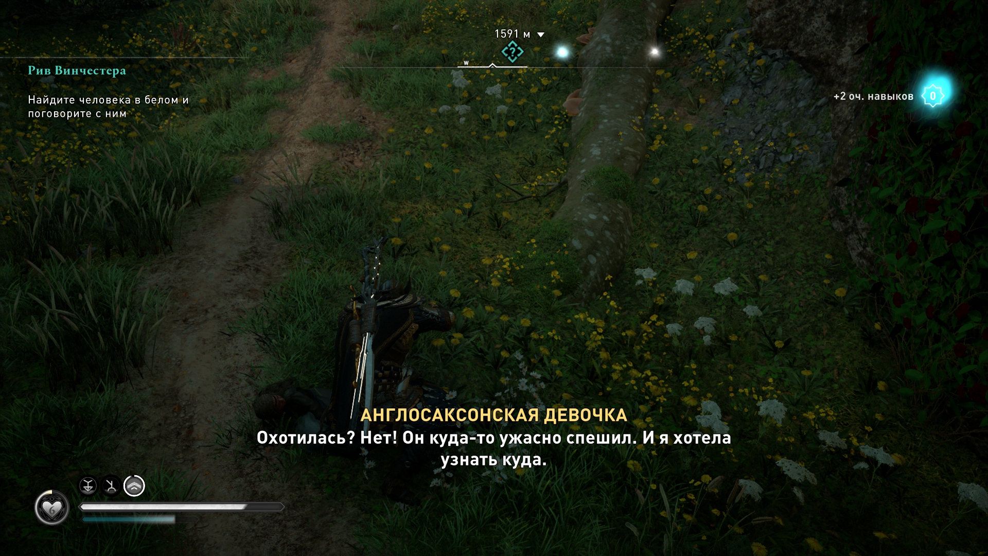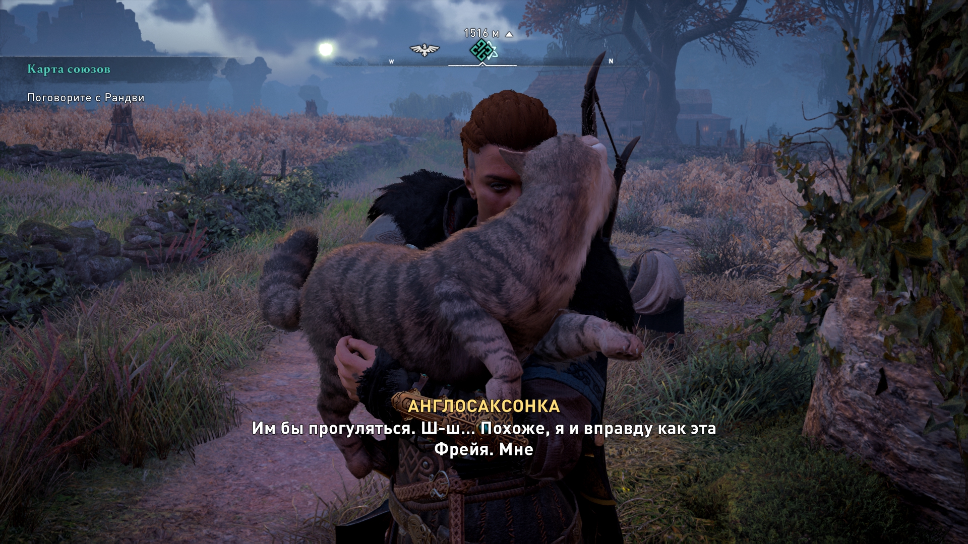 Valhalla: девочка будет ждать отца, пока весит последний листок на дереве. В прошлый раз был выбор, напомню. Тут же его нет, можно либо сбить листочек и квест закончится, либо пройти дальше и оставить висеть значок побочки на карте. ЭРПЭГЭ, блять...