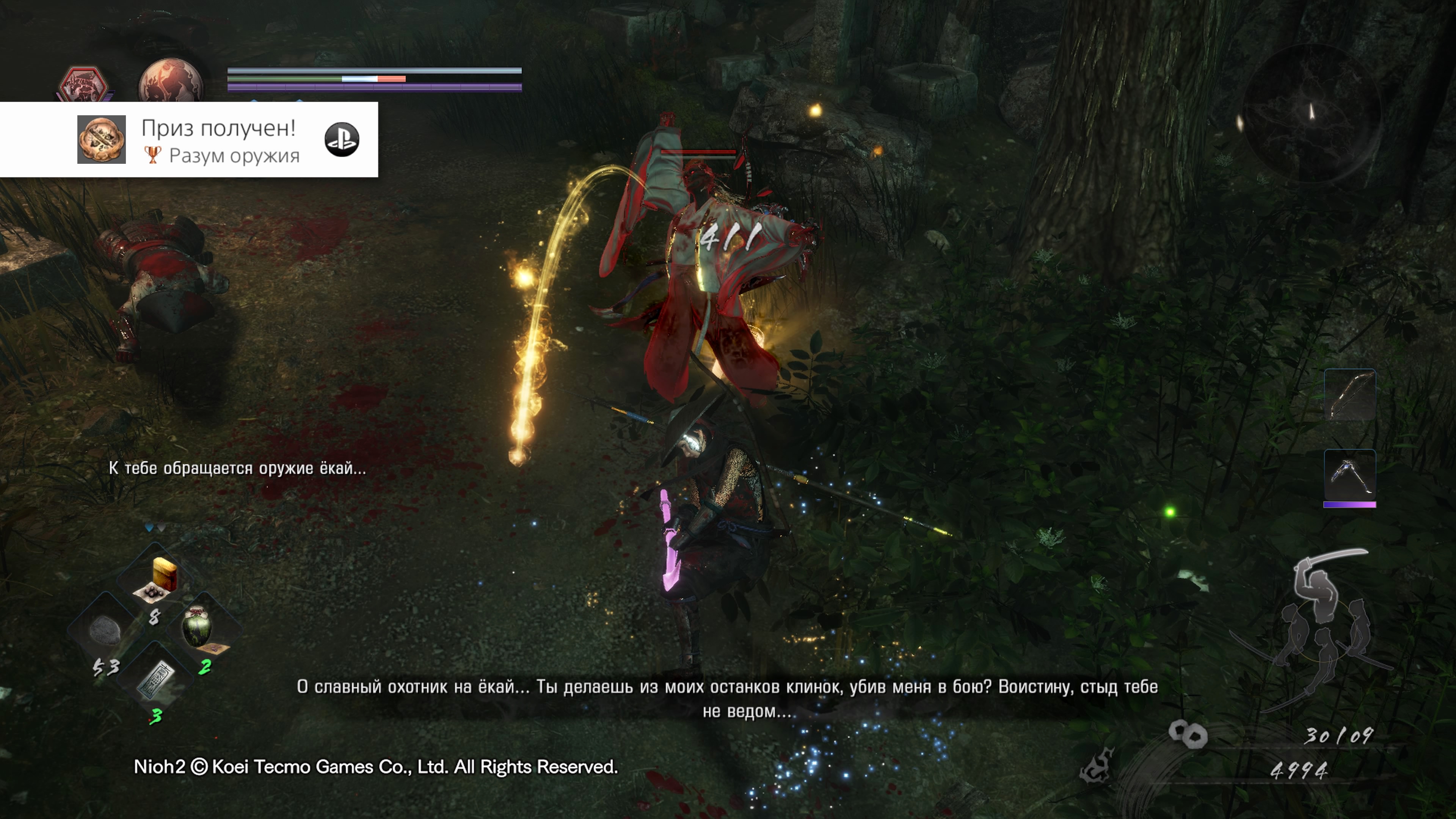 Сюжет тут посредственный и нужен для галочки, хоть и пытается зачем-то в очевидный "вот эта поворот". Ещё есть записки, чтобы раскрыть лор мира и коллекционные предметы, но я на это все как-то забивал и коллекционировал в основном катаны, которые выглядят бомбически.