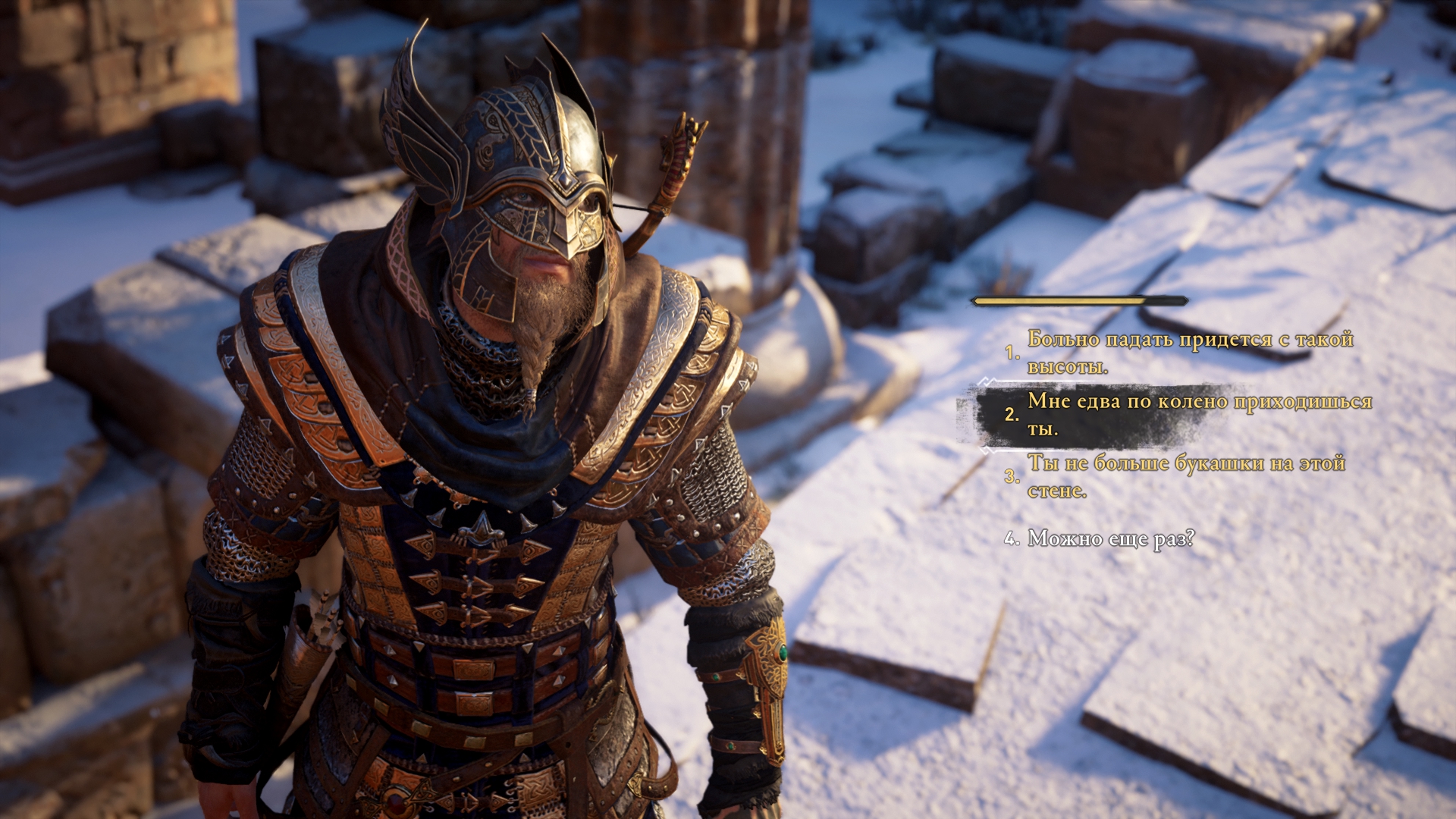 Побочные задания. Да, это именно типичные побочные задания, нахуя называть их "мировая активность" ? Ну разве чтоб сравнить себя с Рокстар, но вы не они. Ладно, на самом деле в игре есть парочка неплохих квестов, типо старика с вещами или берсерка Бьерна, ЗАДАНИЕ КОТОРОГО ДАЮТ ЗА ПРЕДЗАКАЗ ! Убейсофт, вы совсем охуели ? Все остальное либо всрато, либо является копипастой. Видимо у Убейсофтов кончился поставщик и им пришлось выкручиватся без их любимого снежка. Причем помимо спизженных квестов из предыдущих игр, они ещё и повторяются, например, в игре есть где-то четыре короля какого-то говна, типо король меленького островка или король горы. Ах да, чтоб меня не засирали попосту (пф, кого я обманываю ?), вот примеры спизженных квестов: