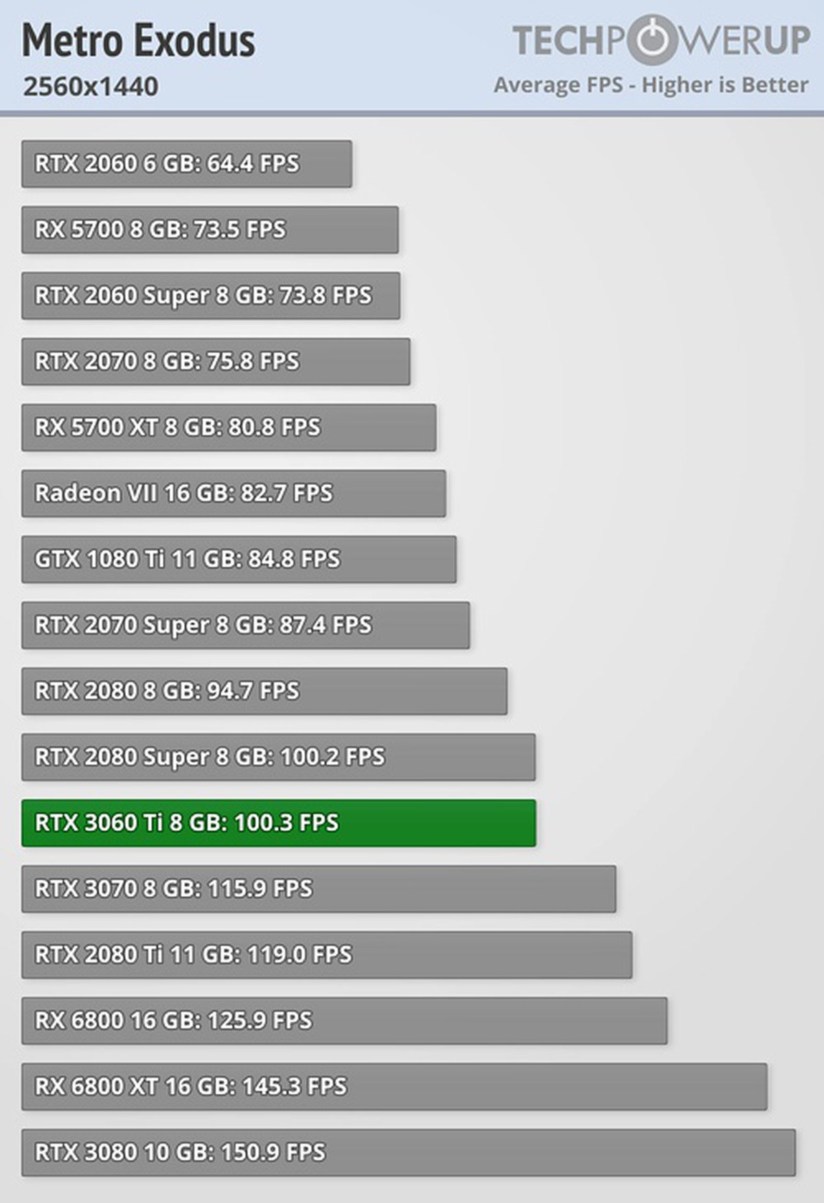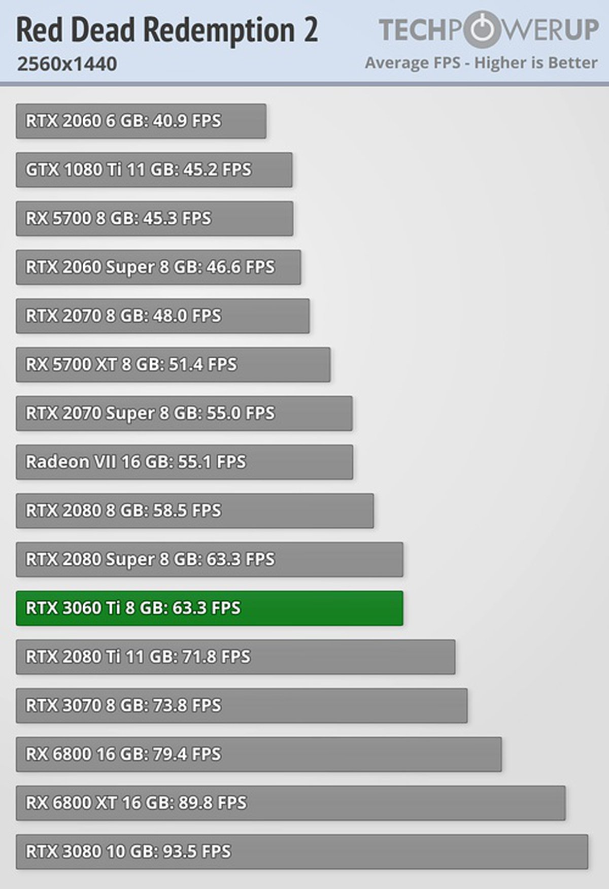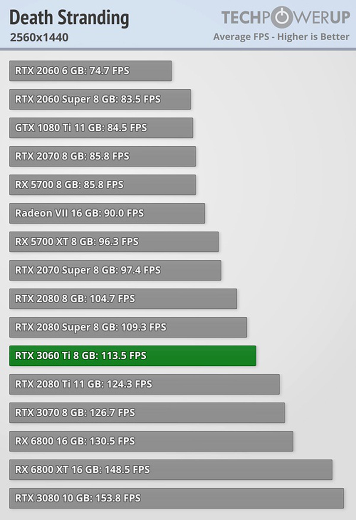 Лучшим разрешением для владельцев GeForce RTX 3060 Ti называют именно 1440p. В разрешении 4К карта может показать стабильные 60 кадров в секунду далеко не во всех играх, с 1440p такой проблемы нет.