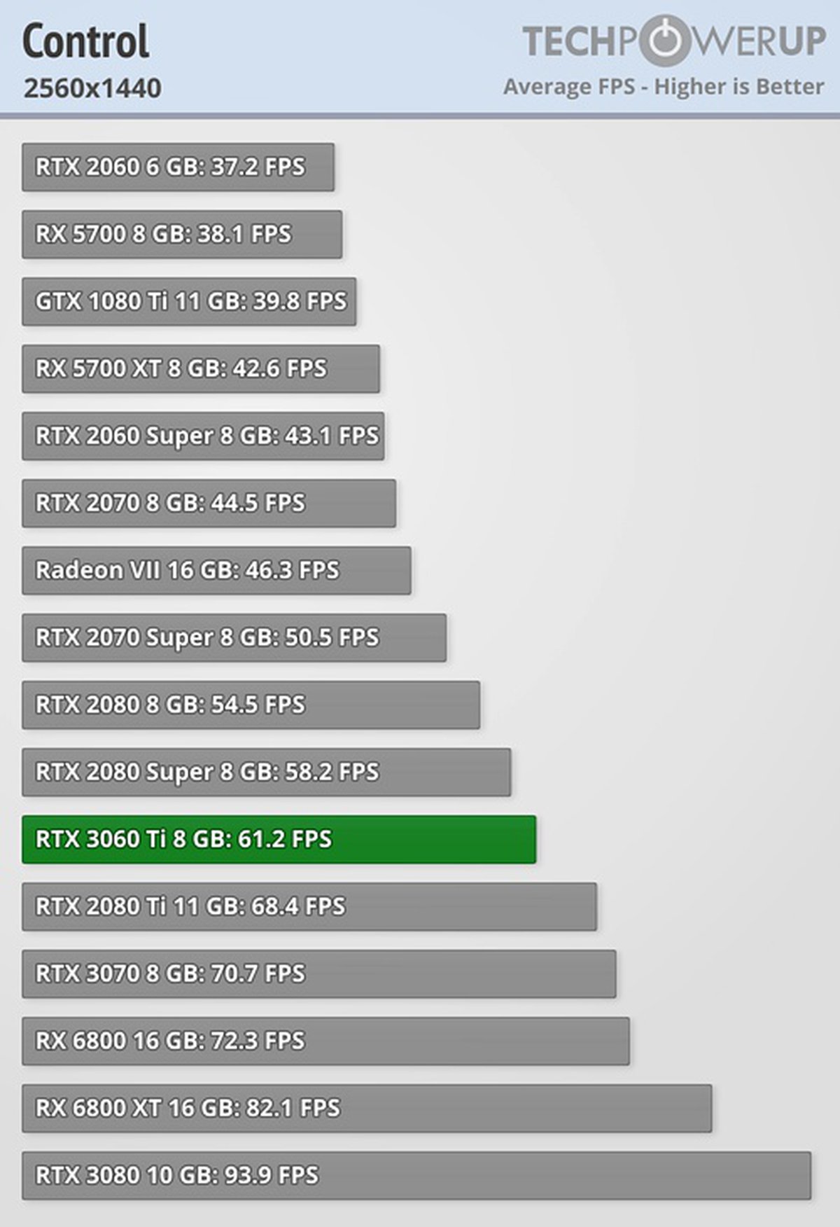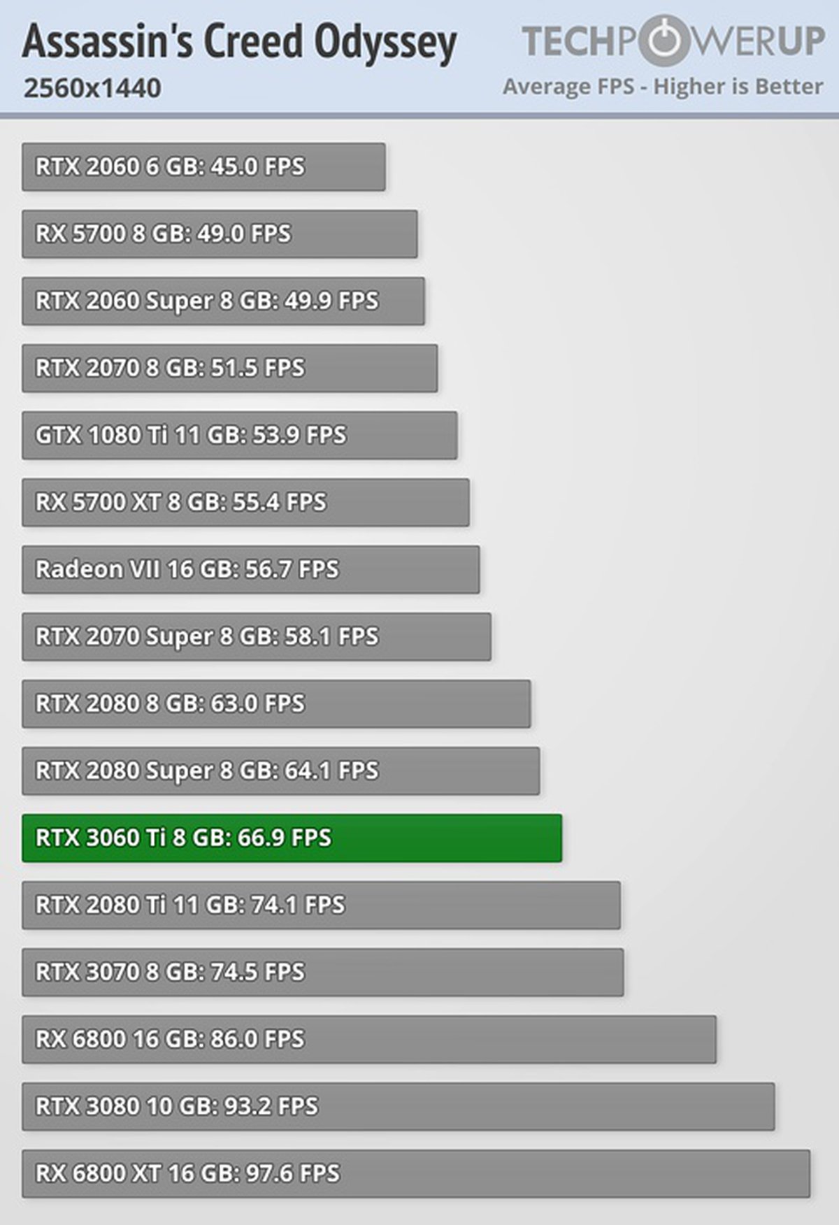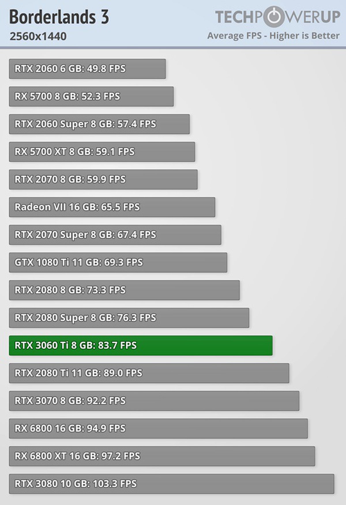 Лучшим разрешением для владельцев GeForce RTX 3060 Ti называют именно 1440p. В разрешении 4К карта может показать стабильные 60 кадров в секунду далеко не во всех играх, с 1440p такой проблемы нет.