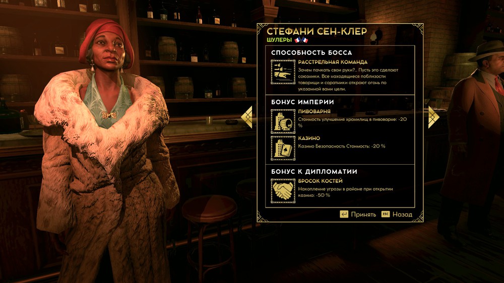 Сразу при выборе босса – персонажа, за которого предстоит покорять Чикаго, всплывает наша любимая повесточка. Ок, афроамериканское бандформирование действительно имелось в начале XX века, но неужели расизм тех лет позволил бы «гарлемской королеве» управлять многонациональным преступным синдикатом, плюс её биография заимствована из реальной истории, но слегка подправлена, дабы выставить мадам сильной и независимой.