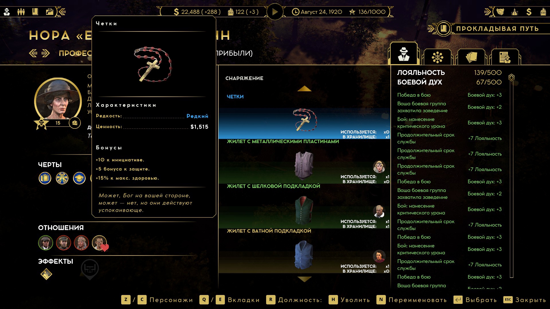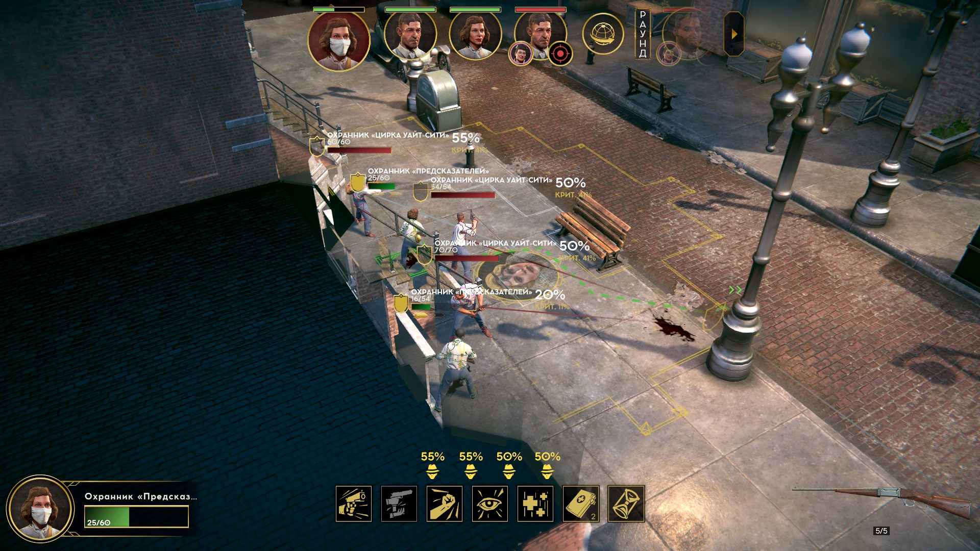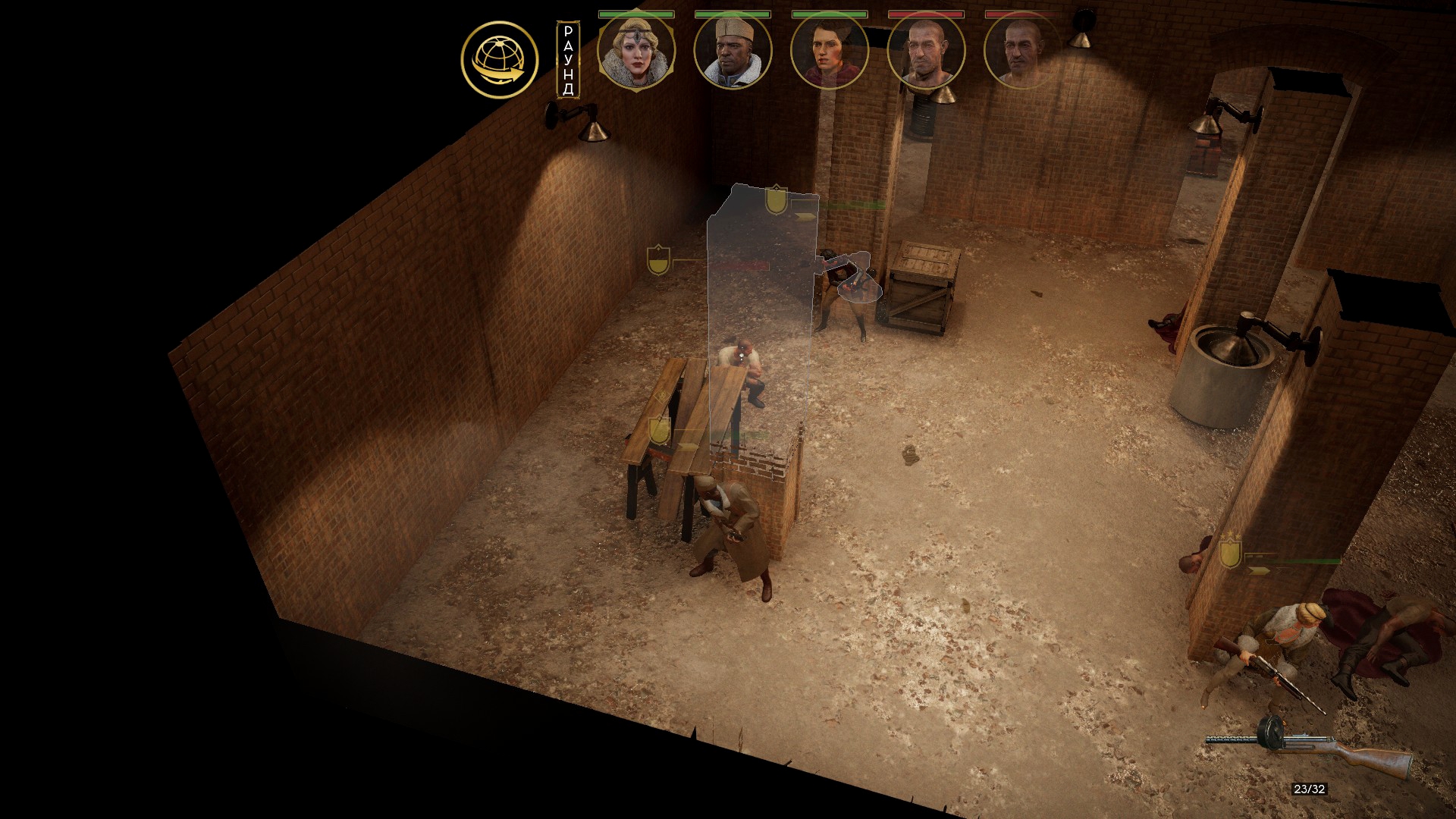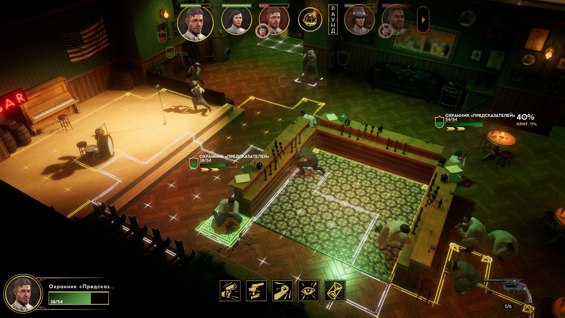 Внутри её логова начался тотальный багодром. Люди начали бегать сквозь интерьер. Разметка применяемых умения отвязывалась от применяющих. В какой-то момент я уже подумал, что без потерь не выберусь. Как вдруг случился Darkest Dungeon! Обычно ранения понижают боевой дух и характеристики. Кроме этого у гангстеров есть любовные отношения, и, если романтический интерес при смерти, статы тоже падают. Внезапно, моя пулемётчица оказалась самовлюблённой, и её всё заколебало конкретно. Сильное падение морали открыло черту, позволяющую автоматически пустить три очереди по врагам с низким здоровьем – «добить слабых».