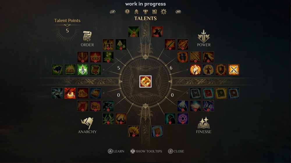 Мироздание вселенной игры, Антары, делится на 4 миропорядка: порядок, анархия, искусность и сила. Каждый раз, когда игрок делает выбор, персонаж получает очки талантов миропорядка, соответствующего решению, которые тратятся на получение пассивных навыков из соответствующей ветки.