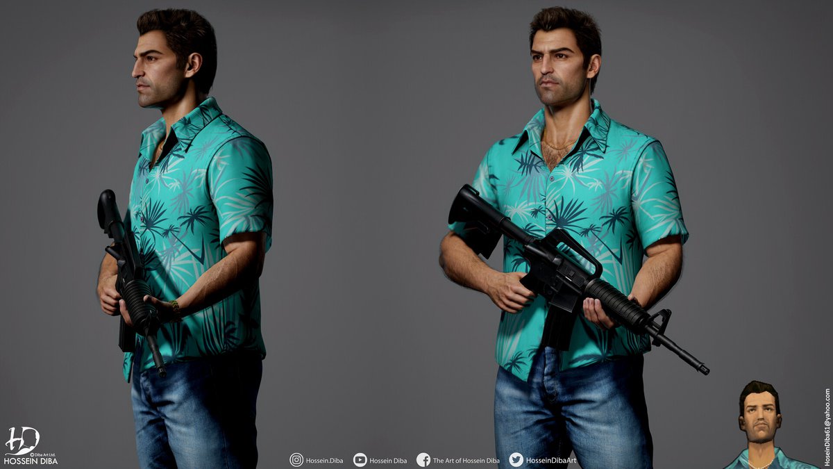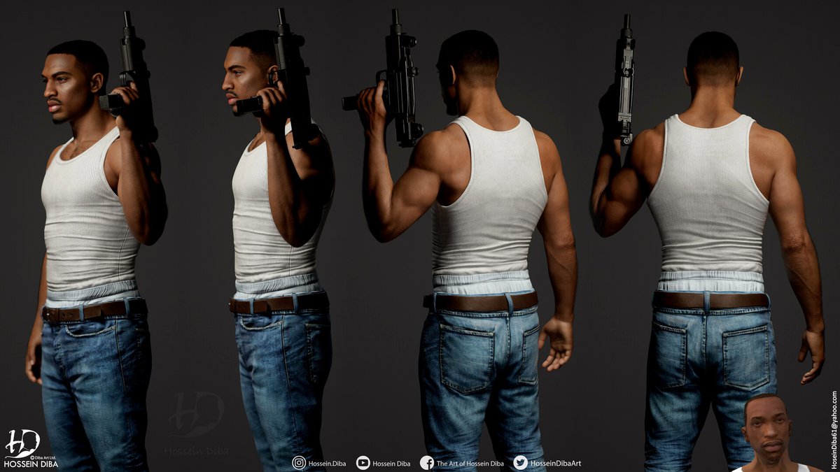 Диба создал некстген-версии главных героев нескольких игр серии. У нас есть реалистичные Нико Беллик из Grand Theft Auto 4, Карл Джонсон из Grand Theft Auto San Andreas и Томми Версетти из Grand Theft Auto Vice City.