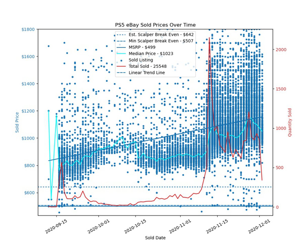 В конце 2020 года новые видеокарты и консоли гораздо проще найти на онлайн-аукционах, чем у ритейлеров — по ценам, заметно превышающим магазинные. Инженер-аналитик Майкл Дрисколл изучил данные о сделках, совершенных на eBay, и рассказал о доходах и объемах продаж реселлеров.