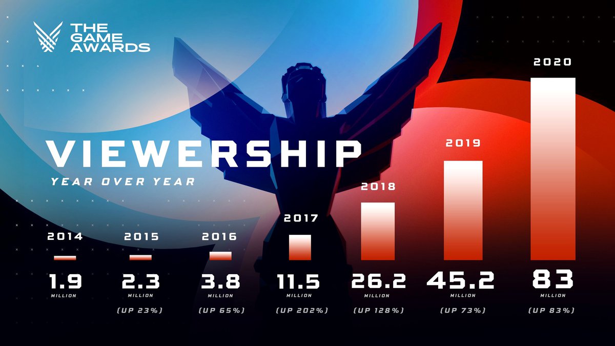 Продюсер The Game Awards Джефф Кейли опубликовал статистику по последней церемонии награждения. В этом году The Game Awards привлекла порядка 83 миллионов зрителей — в 36 раз больше, чем 5 лет назад.
