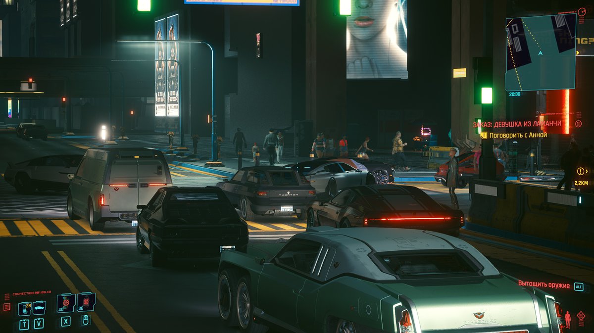 Изучать жизнь пешеходов в Cyberpunk 2077 легко и приятно: выбираете пару персонажей, садитесь им на хвост и начинаете более-менее ходить кругами. Собираясь посмотреть, как в игре устроен ИИ автомобилей, мы ожидали увидеть что-то похожее.