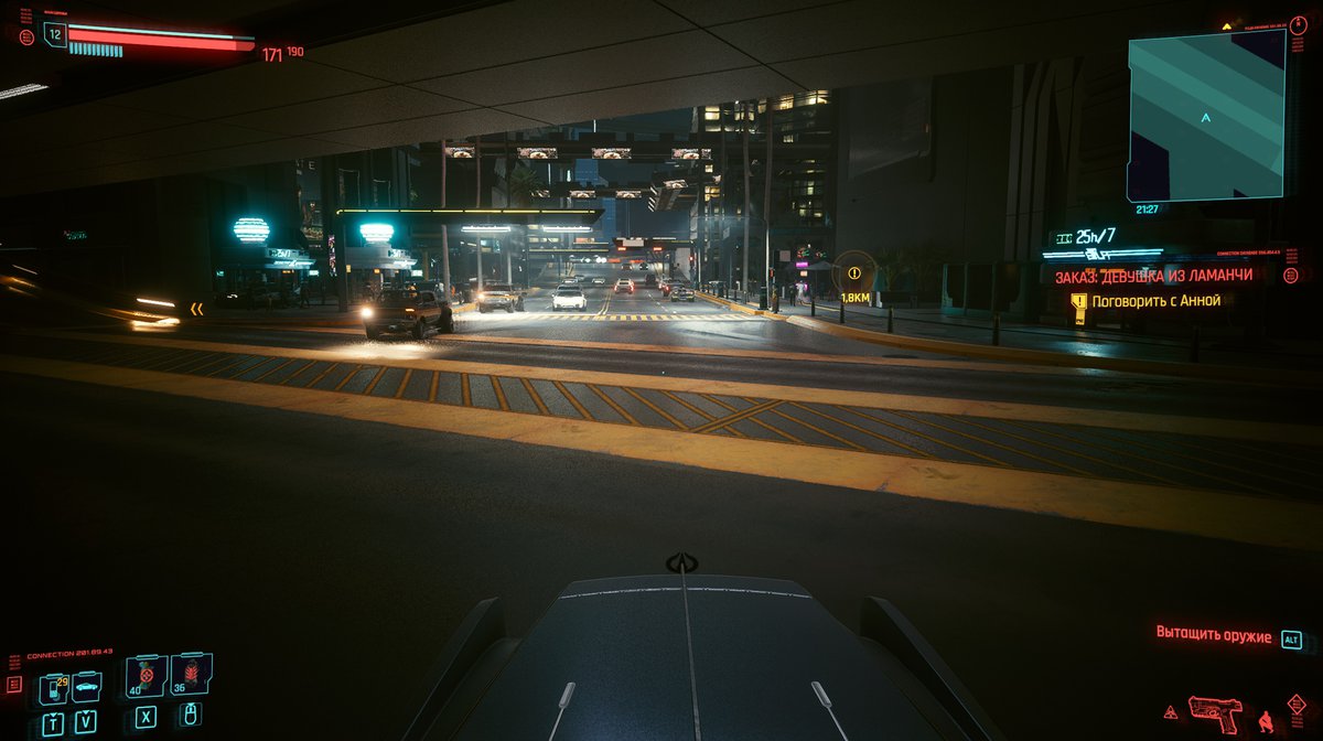 Скорее всего, думали мы, машины в худшем случае привязаны к какому-нибудь маршруту, а в лучшем — к какому-нибудь району, и колесят по ним бесконечно. Оказалось, что в искусственный интеллект водителей разработчики вложили чуть больше сил, чем в пешеходов Найт-Сити.