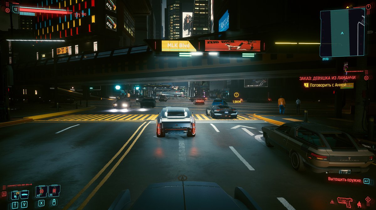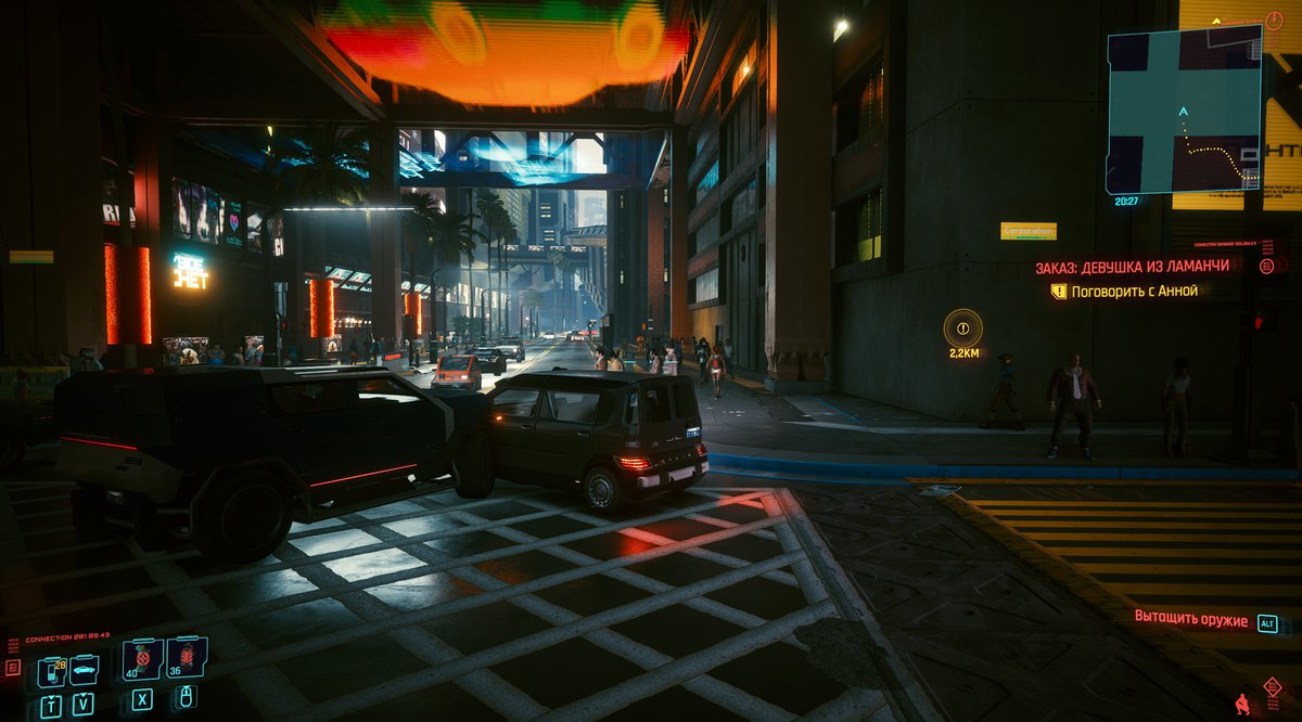 - Вся симуляция работает только на глазах игрока. За кадром игровой движок просто создает машины заново: это позволяет не беспокоиться о появлении в Найт-Сити бесконечных пробок или огромного количества аварий.