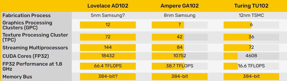 Вычислительную производительность топовой видеокарты нового поколения приблизительно оценивают в 66 терафлопс. Это в 1.7 раза больше, чем у топового устройства на основе архитектуры Ampere.