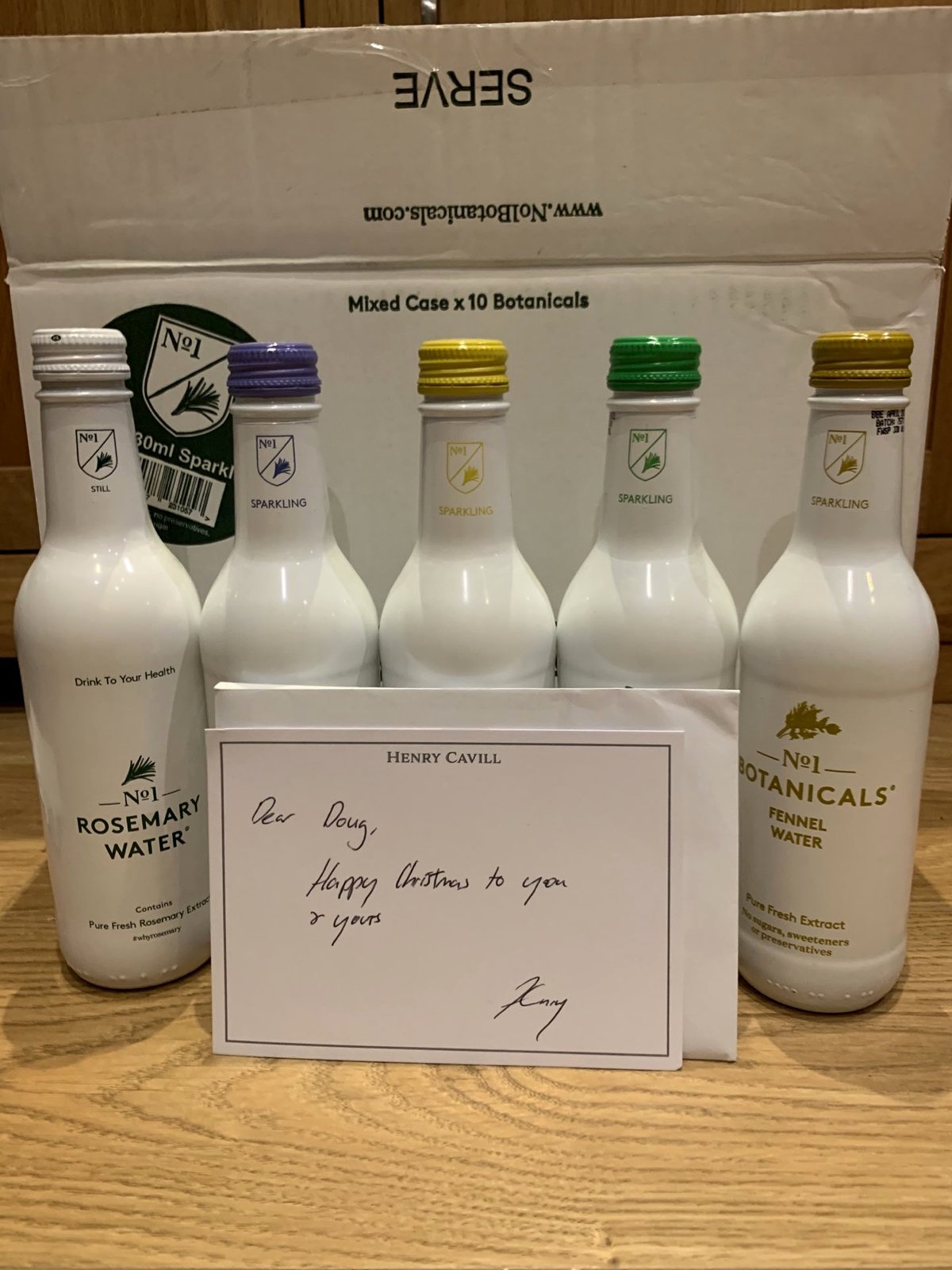 Генри Кавилл, играющий Геральта в «Ведьмаке», сериале Netflix, прислал Дагу набор ведьмачьих эликсиров. То есть, простите, газированных травяных настоек.