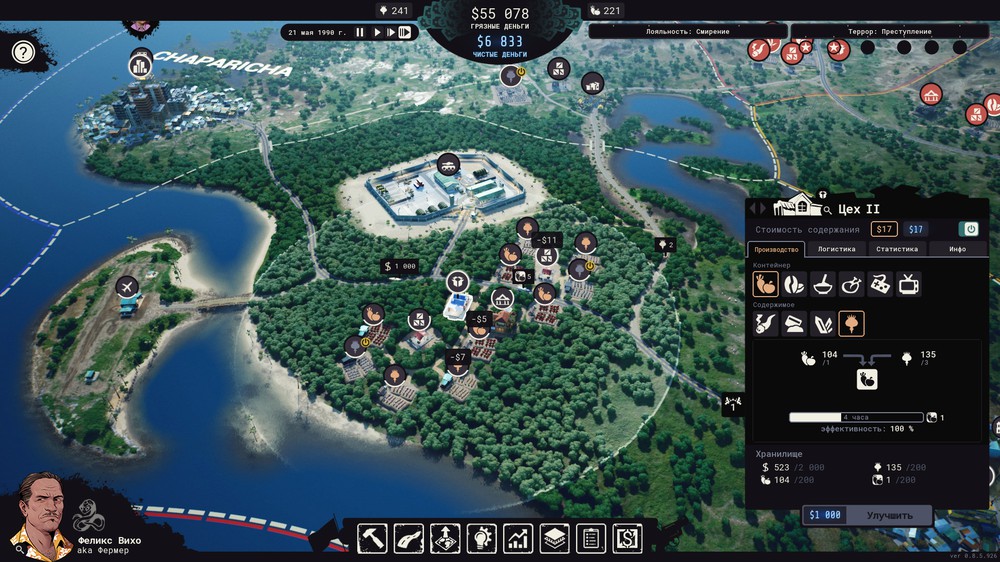 Несмотря на то, что и издатель имеется, и двигло продукта «Нереальная Машина 4», Cartel Tycoon скорее инди игра, где графон принесён в жертву функционалу. Потому сразу пускаемся во все тяжкие, т.е. разберём геймплей.