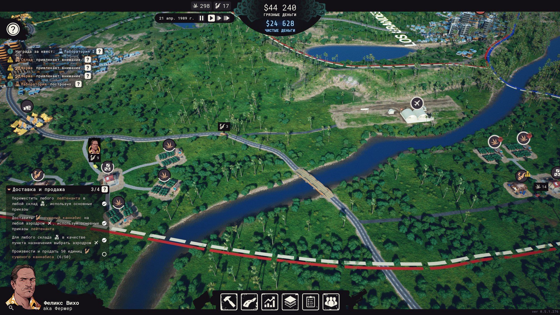 Теперь о том, как деньги зарабатывать. Хозяйство состоит из производственных цепочек, менеджмента ресурсов и нехитрой логистики. С первыми всё понятно: фермы для выращивания всяких опиумов, склады, лабы для сушения канабиса т.е. строения переработки. Когда this is my product готов, его надо срочно продавать. Переполнение хранилищ привлечёт полицию, которая оцепит заведение или целую область, хотя можно и успеть вывезти всё нелегальное, включая грязные деньги, едва заслышав сирены.