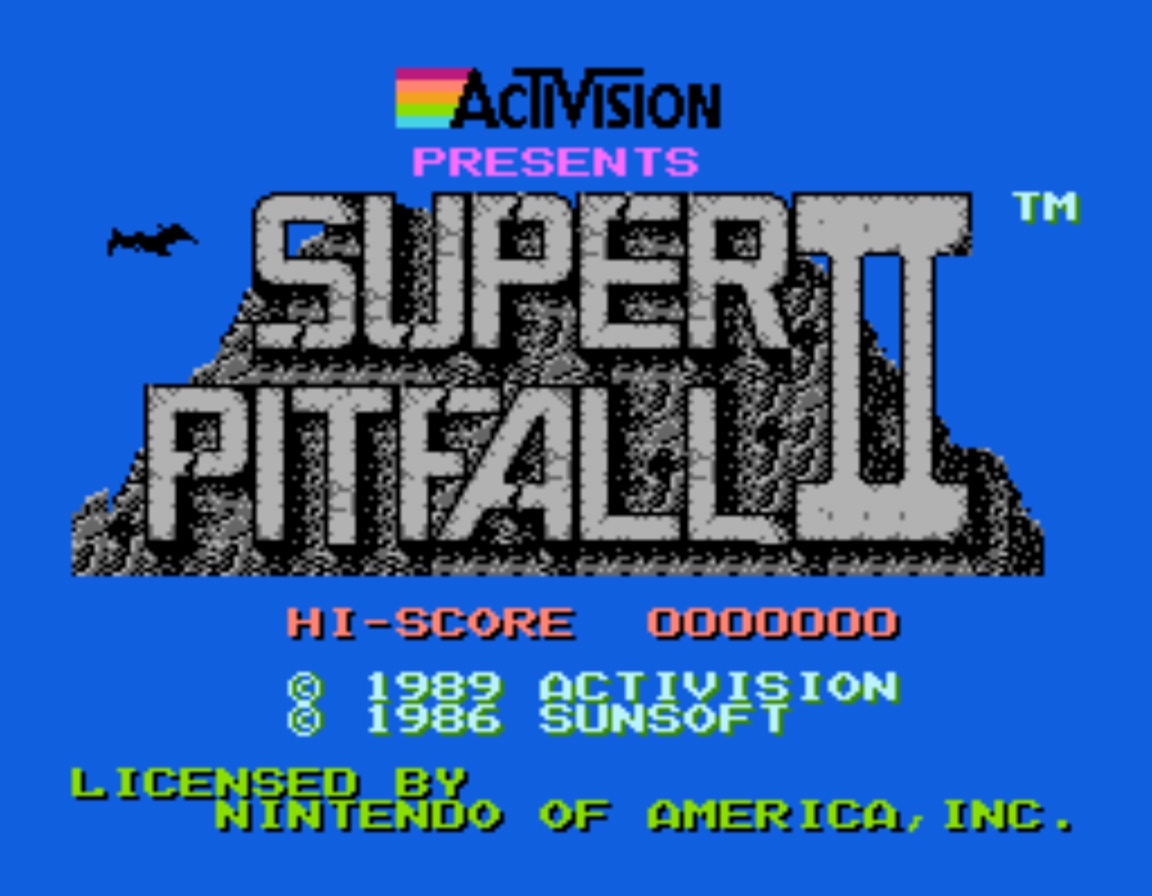Я не играл никогда в Pitfall. Игра, в целом, очень сложная, имеет ужасное управление и прыжок мало того, что не управляется в полёте, так ещё и регулировать дальность прыжка никак нельзя. Платформенная часть игры превращается в адскую пытку, а погибая, вы начинаете с титульного экрана.