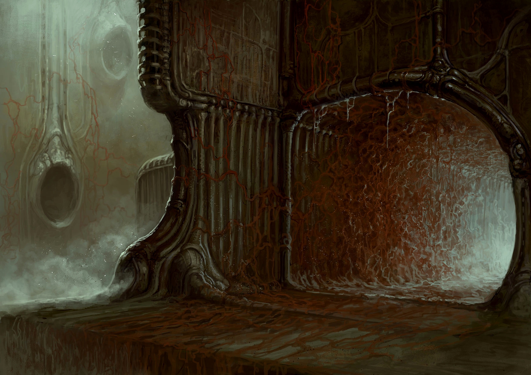 Как можно заметить по концепт-артам игры, и как говорит сам Пеклар, они хотели создать биомеханический мир, где механическое и архитектурное создают нечто мясное, живое и находящееся в постоянном движении.