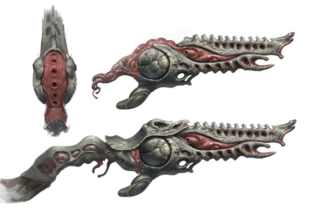 Как это показано в трейлере, главный герой передвигается по коридорам, похожим на пищевод, где двери - зубастое чрево, стены склизкие и гладкие словно внутренность какого-то органа, а колонны - кости. Даже оружие в этой игре не простое, а живое. Сменные стволы выглядят, как присасывающиеся с характерным звуком паразиты.