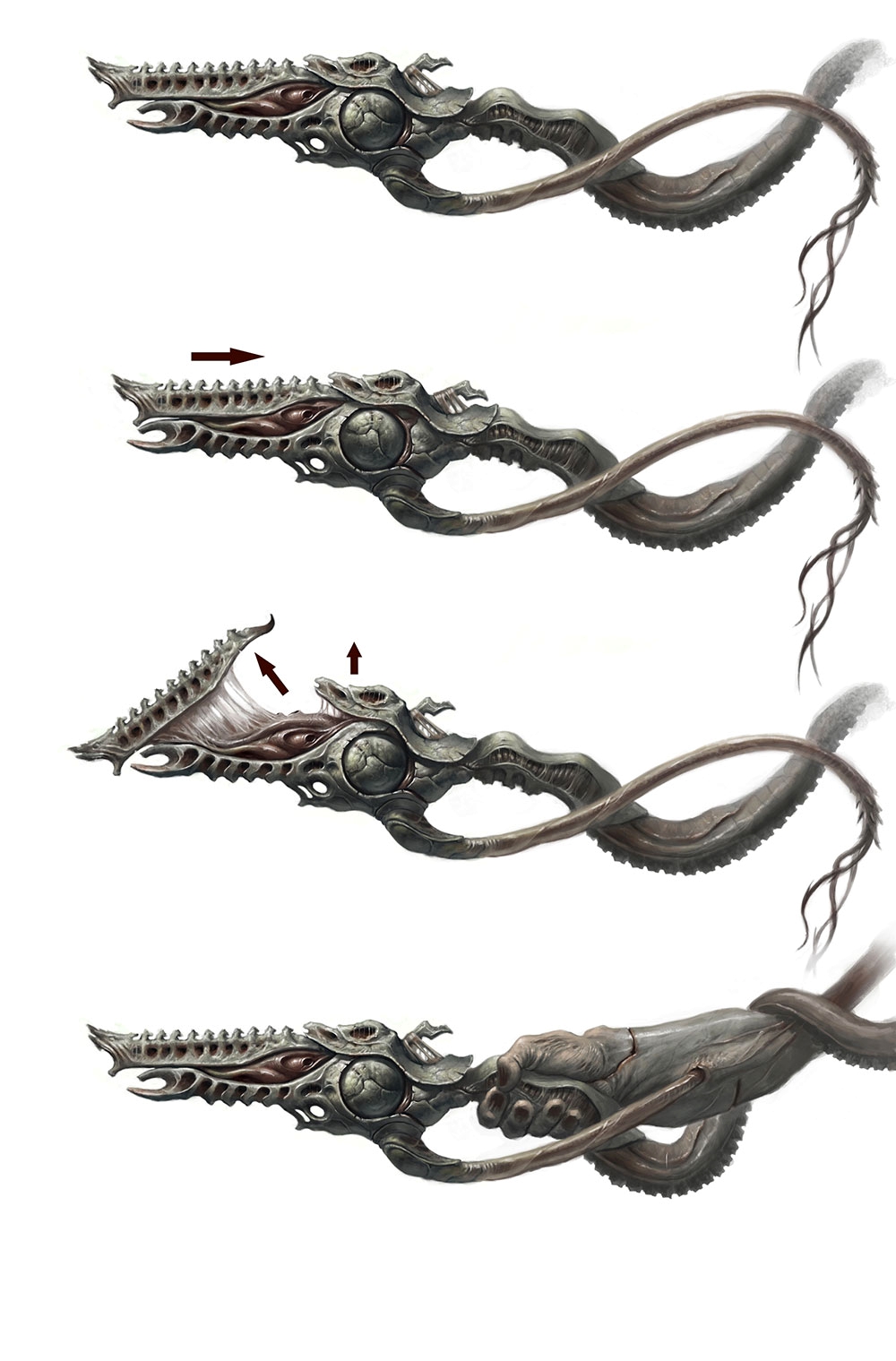 Это даже смешно, мы не могли найти ещё одного концепт-художника [помимо Филипа Аковича], потому что большинство людей не могли понять, чего я хочу и имели крайне ограниченное представление о том, как воплотить это в дизайне. Когда [у других художников] кончались идеи, они начинали рисовать гигантские зубы, большие глаза и всяких жуков. Тогда я и понимал, что мы зашли в тупик, а художник достиг дна своей креативности. Многие люди думают, что достаточно изобразить что-то странное.