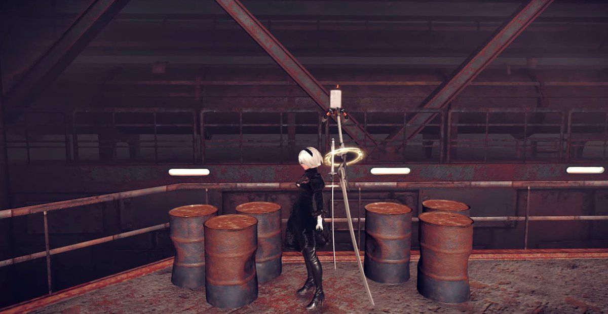В задней части арены, где появляется 2B, есть несколько бочек. Между ними небольшое пустое пространство — нам туда. Стоя между бочками, надо ввести следующий код на геймпаде: удерживая R2, жмите вверх, вниз, вверх, направо, налево, квадрат, круг, треугольник, крест.