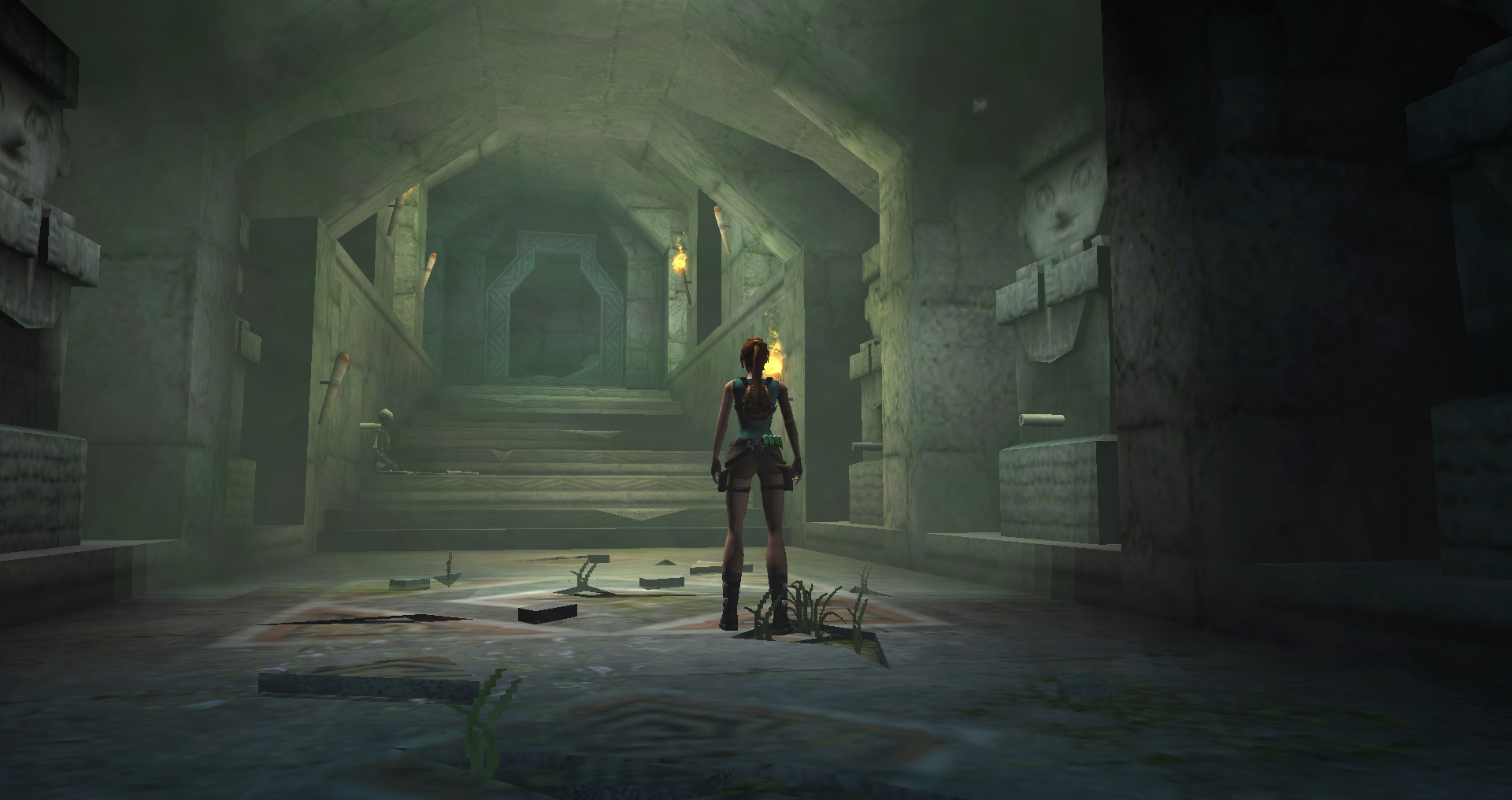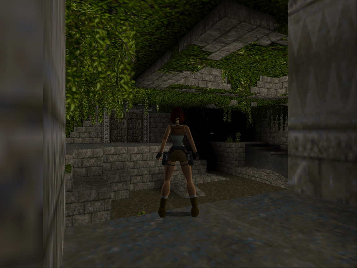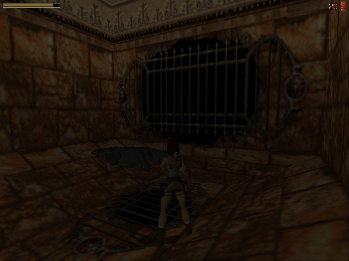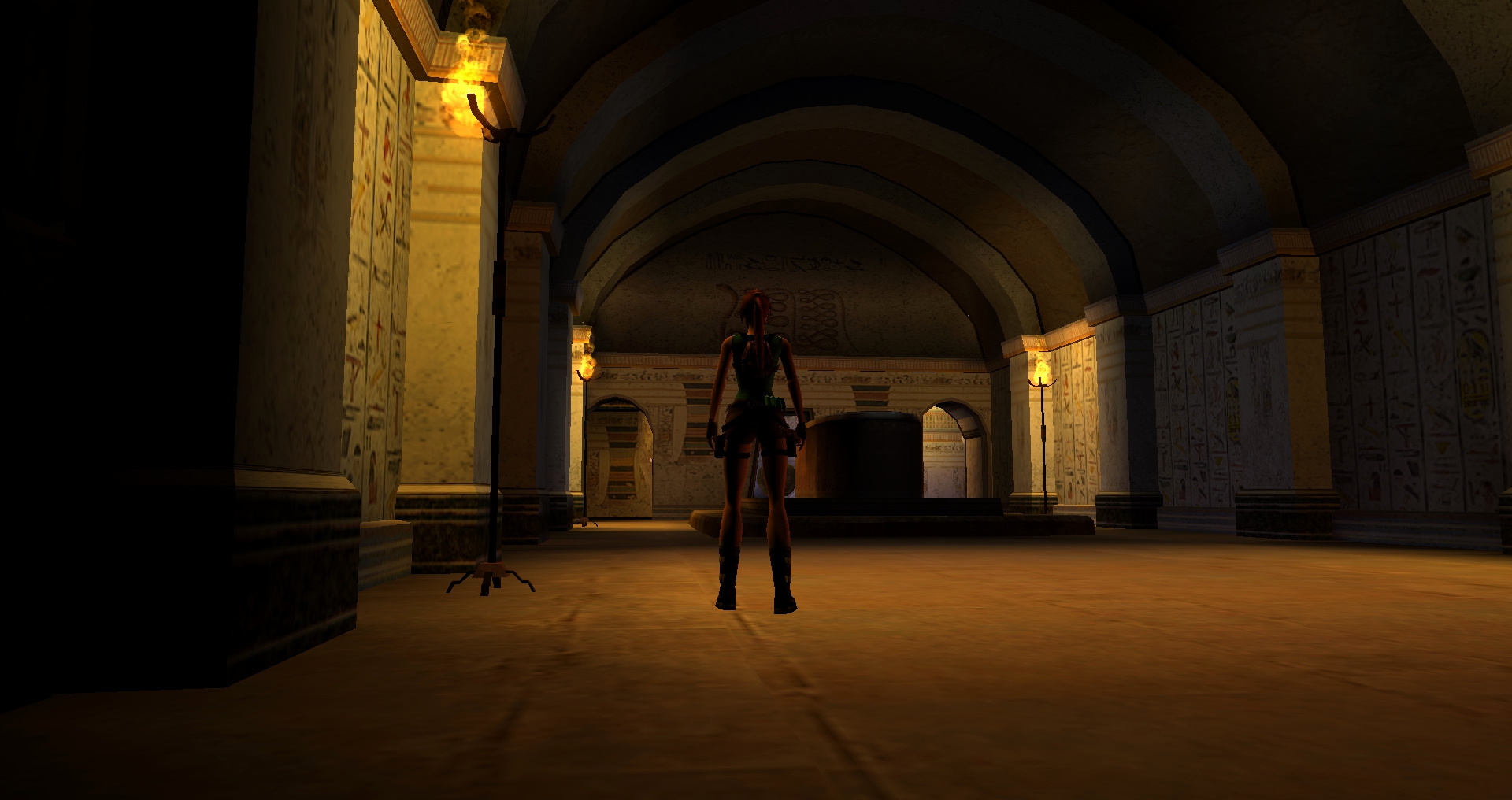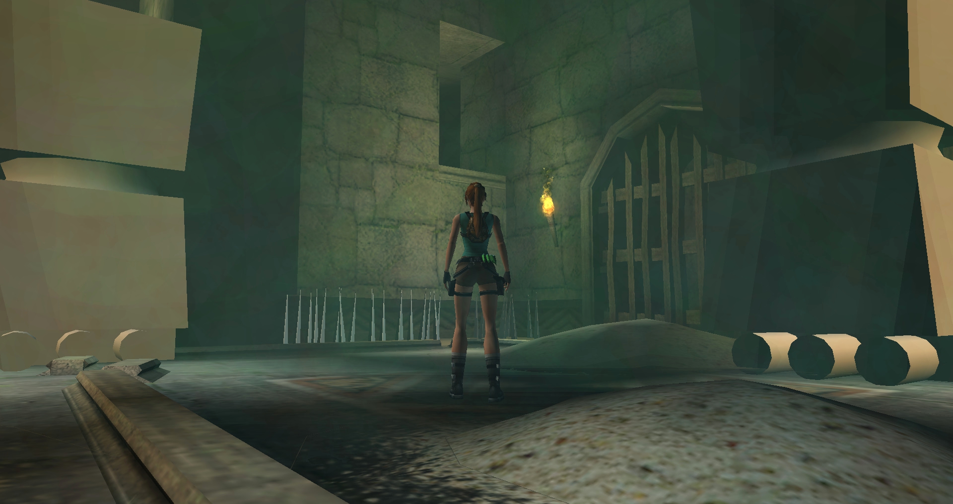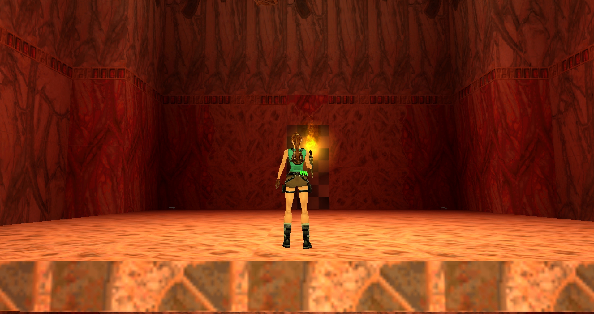 Вообще, уровень вобрал в себя две эпохи, отчего начинаешь игру с переделанной локации, а где-то к середине попадаешь в привычный 1996 год. Разумеется, до финала тут как до луны, враги стоят столбом, белые все, кроме крокодилов, которые, как оказалось, всё-таки могут плавать (хотя это может быть реставрацией фанатов, ибо уровень не запускался без вмешательства). Двери к испытаниям стоят без текстур, но коды к ним те же самые, что в оригинале, но зайдя к ним – ничего не работает. Колона не обрушает локацию, а огня и вовсе нет, тем не менее я не жалуюсь на такую недоработку, всё-таки огненное испытание поджигало не только Лару...
