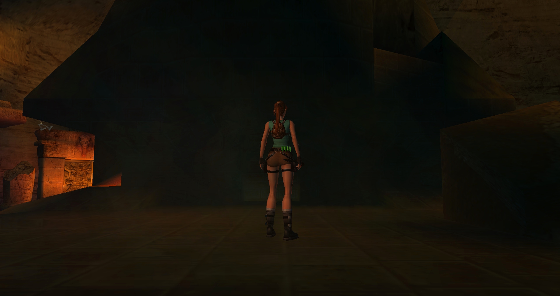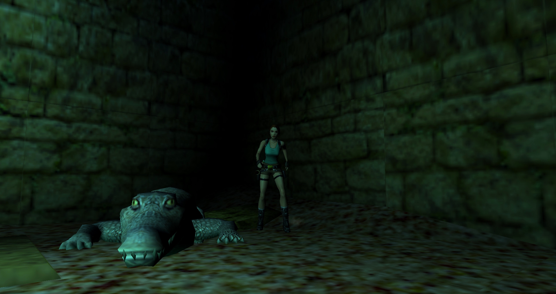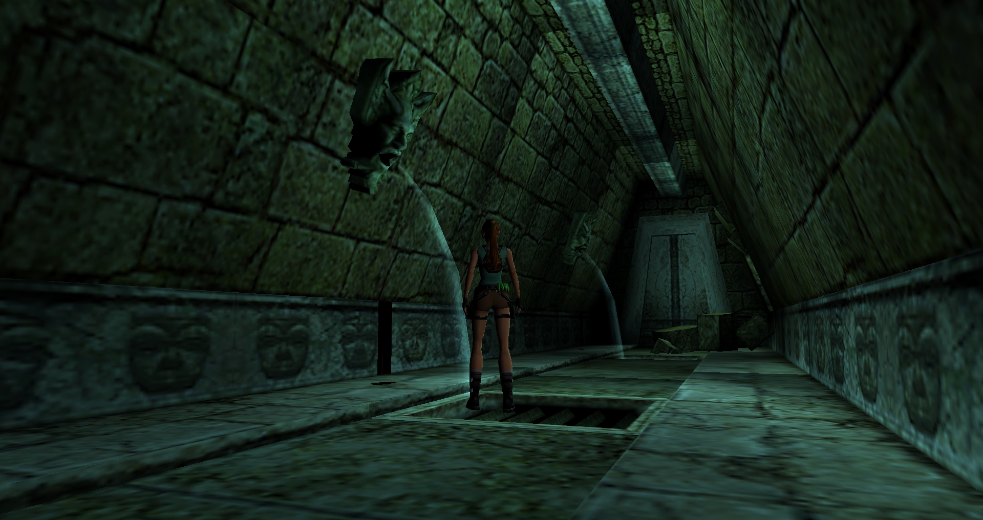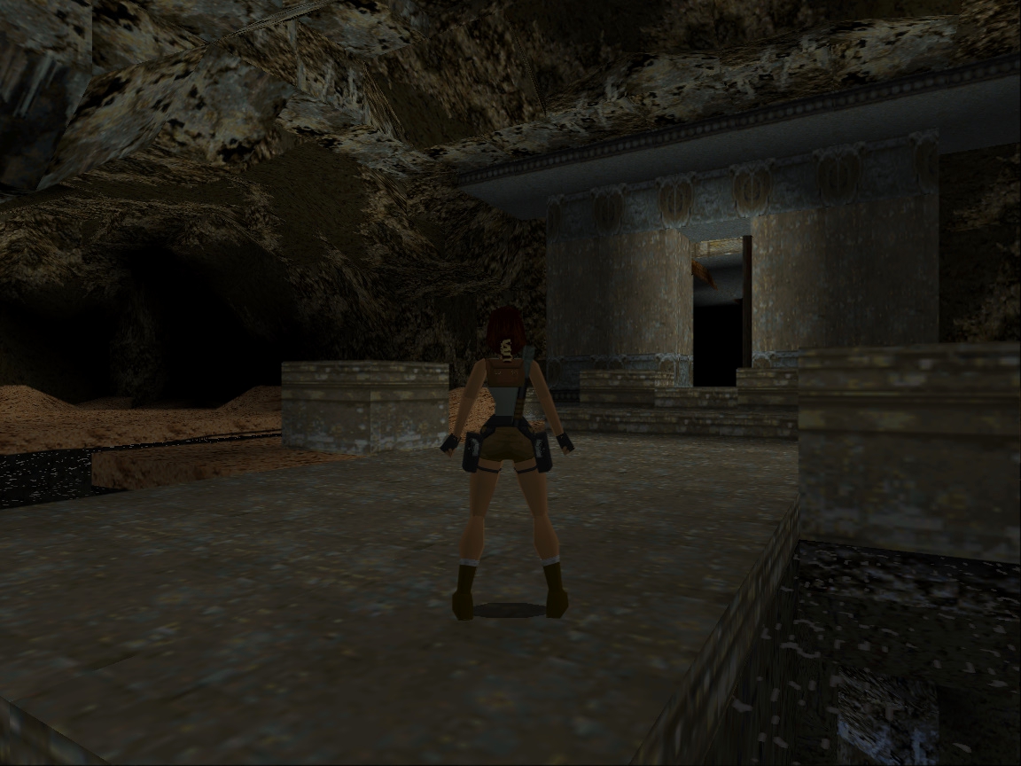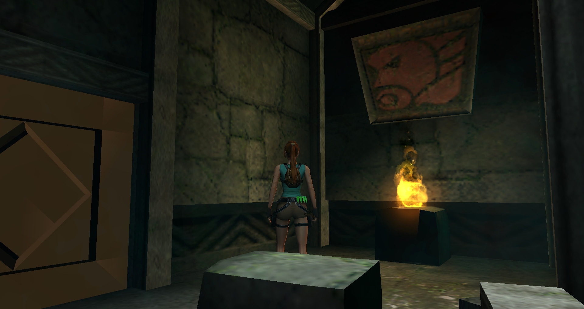 Вообще, уровень вобрал в себя две эпохи, отчего начинаешь игру с переделанной локации, а где-то к середине попадаешь в привычный 1996 год. Разумеется, до финала тут как до луны, враги стоят столбом, белые все, кроме крокодилов, которые, как оказалось, всё-таки могут плавать (хотя это может быть реставрацией фанатов, ибо уровень не запускался без вмешательства). Двери к испытаниям стоят без текстур, но коды к ним те же самые, что в оригинале, но зайдя к ним – ничего не работает. Колона не обрушает локацию, а огня и вовсе нет, тем не менее я не жалуюсь на такую недоработку, всё-таки огненное испытание поджигало не только Лару...