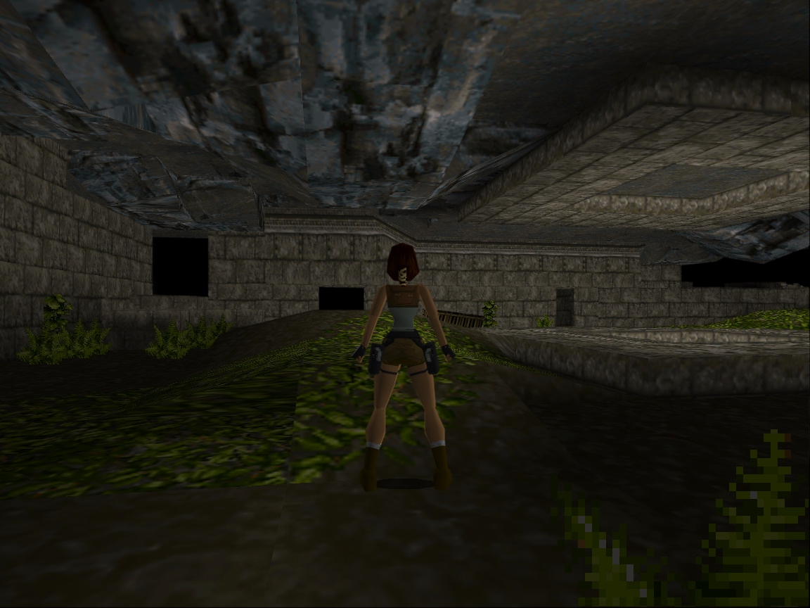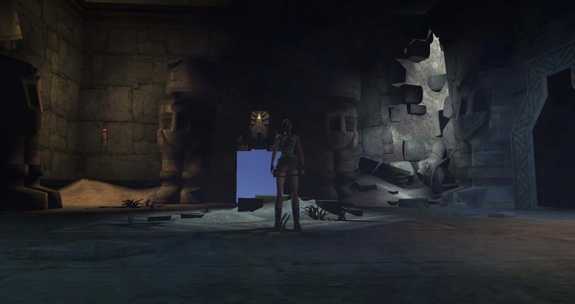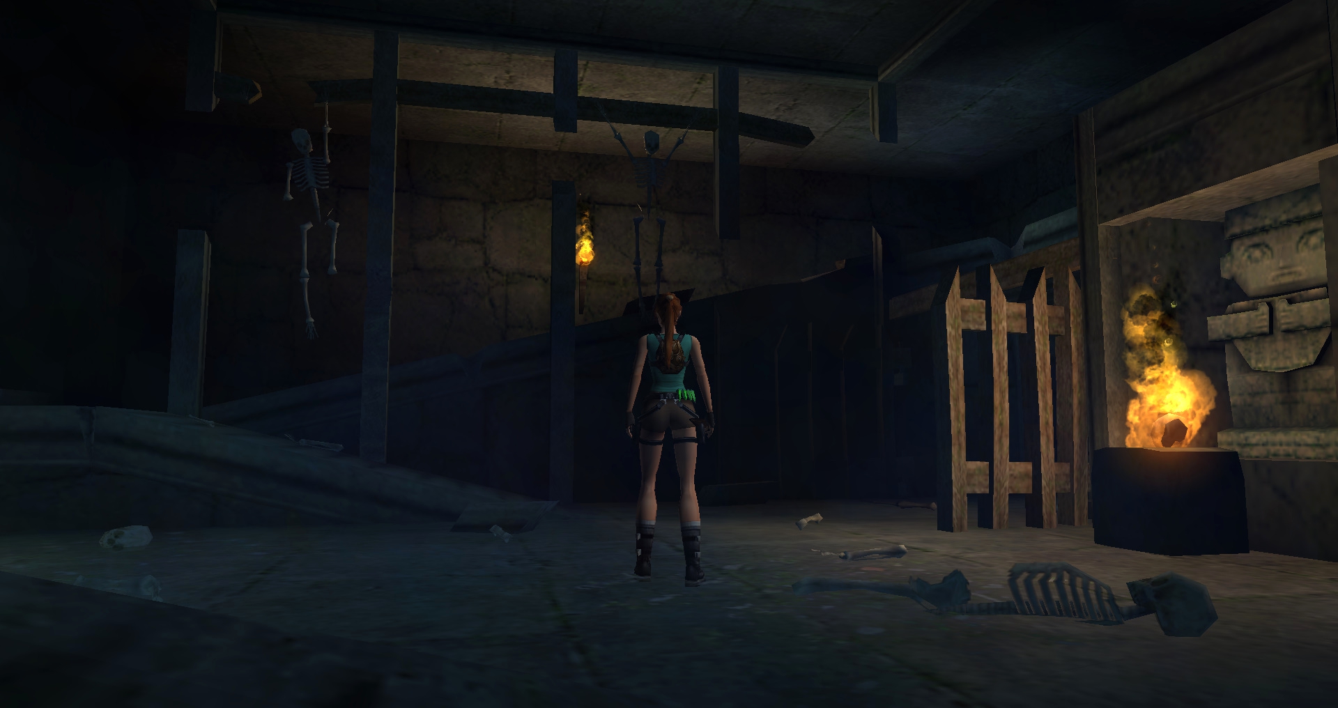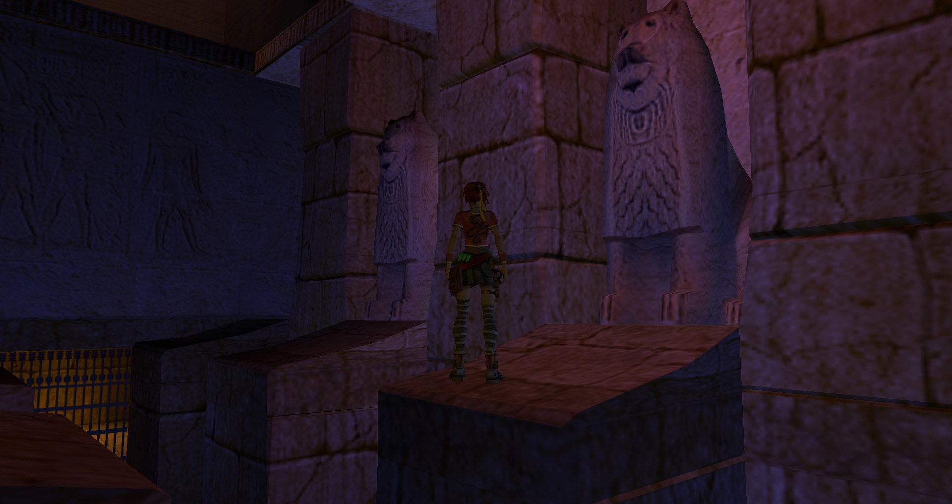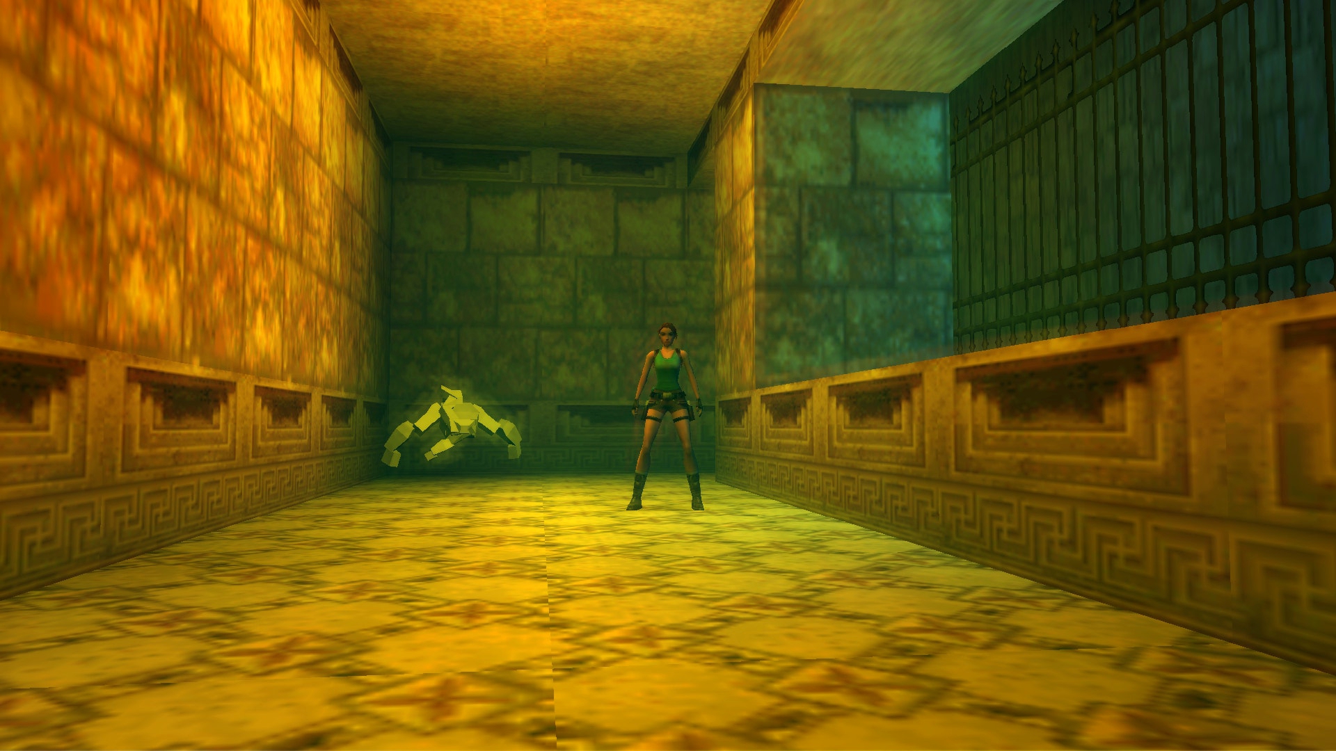 Вообще, уровень вобрал в себя две эпохи, отчего начинаешь игру с переделанной локации, а где-то к середине попадаешь в привычный 1996 год. Разумеется, до финала тут как до луны, враги стоят столбом, белые все, кроме крокодилов, которые, как оказалось, всё-таки могут плавать (хотя это может быть реставрацией фанатов, ибо уровень не запускался без вмешательства). Двери к испытаниям стоят без текстур, но коды к ним те же самые, что в оригинале, но зайдя к ним – ничего не работает. Колона не обрушает локацию, а огня и вовсе нет, тем не менее я не жалуюсь на такую недоработку, всё-таки огненное испытание поджигало не только Лару...