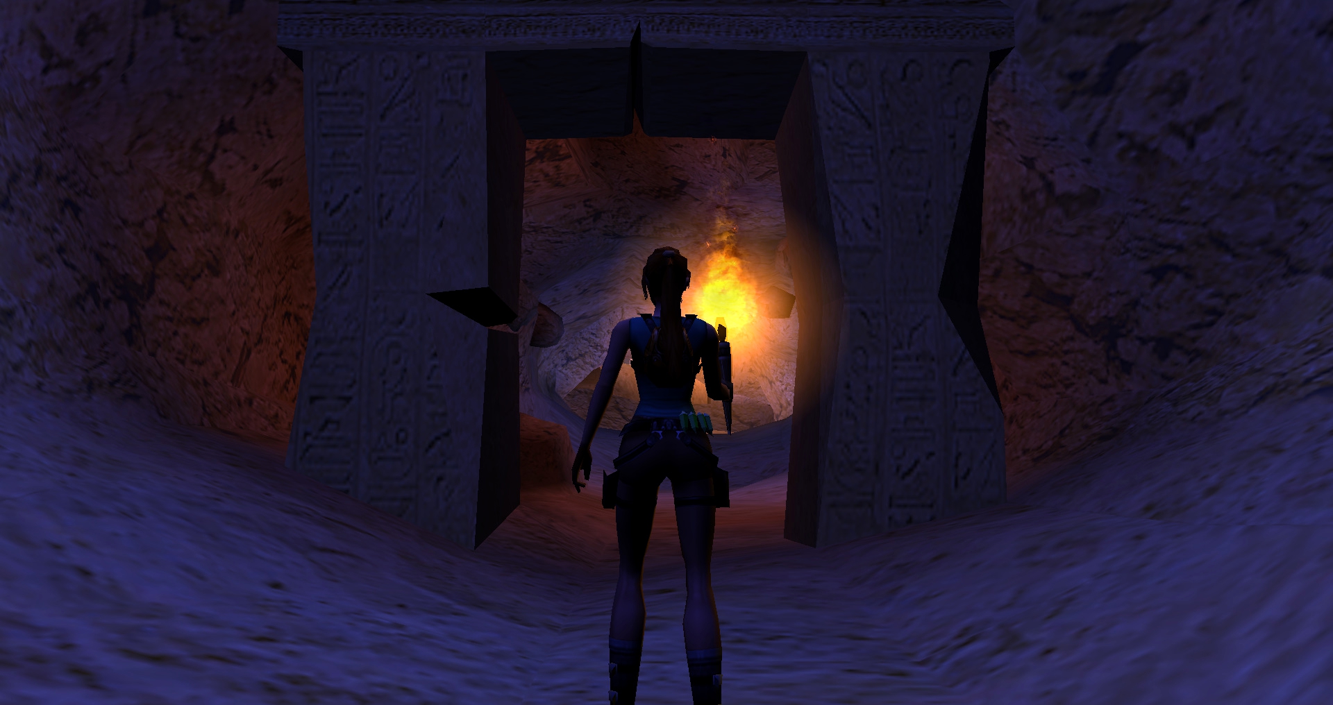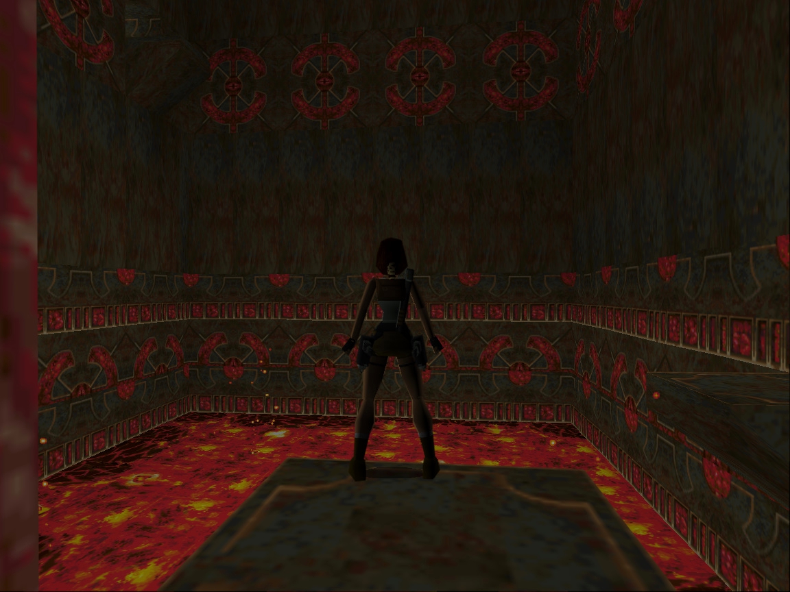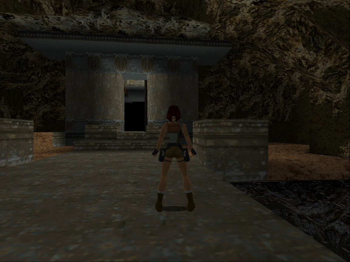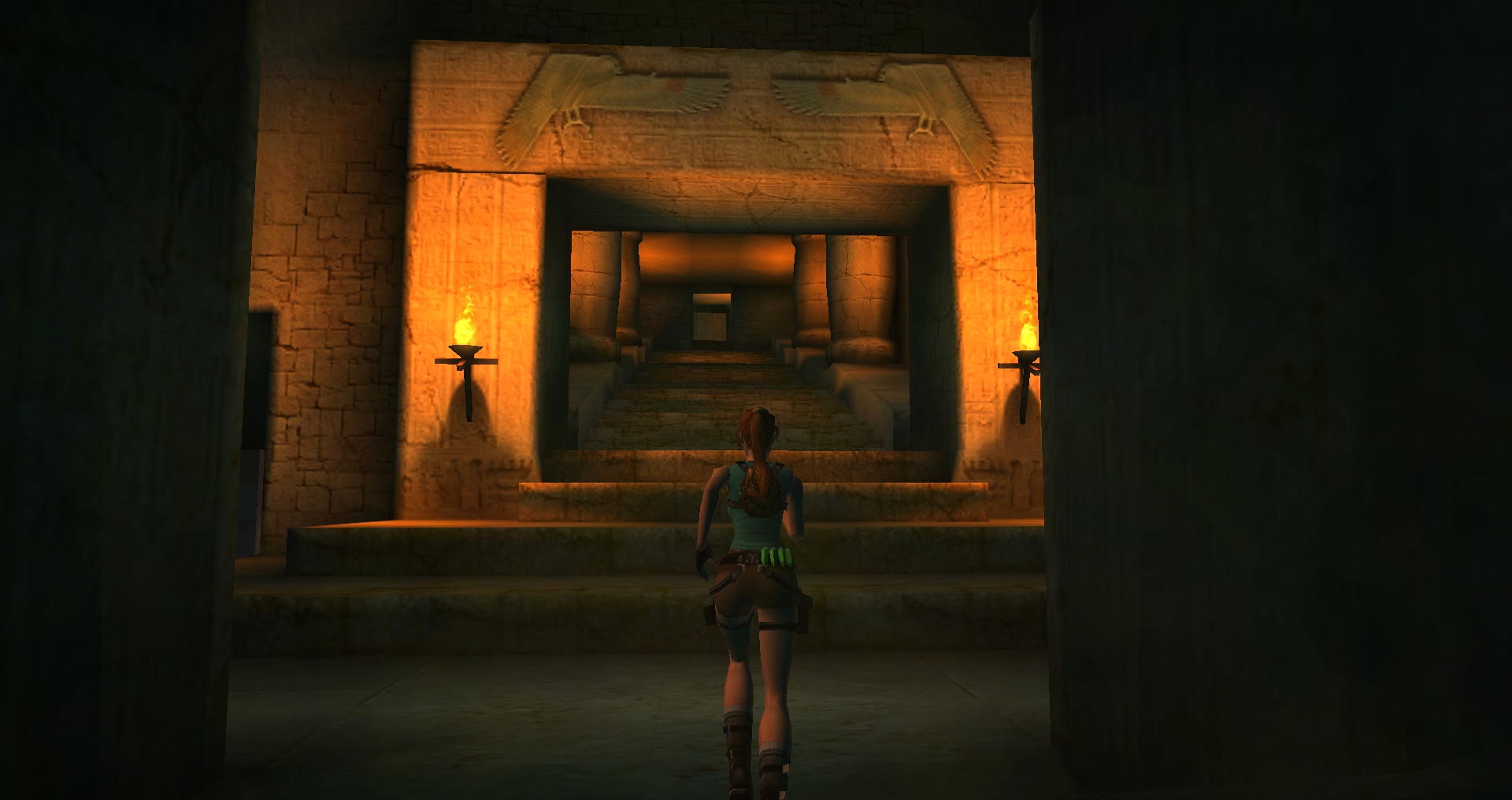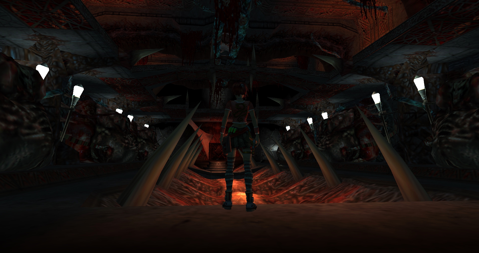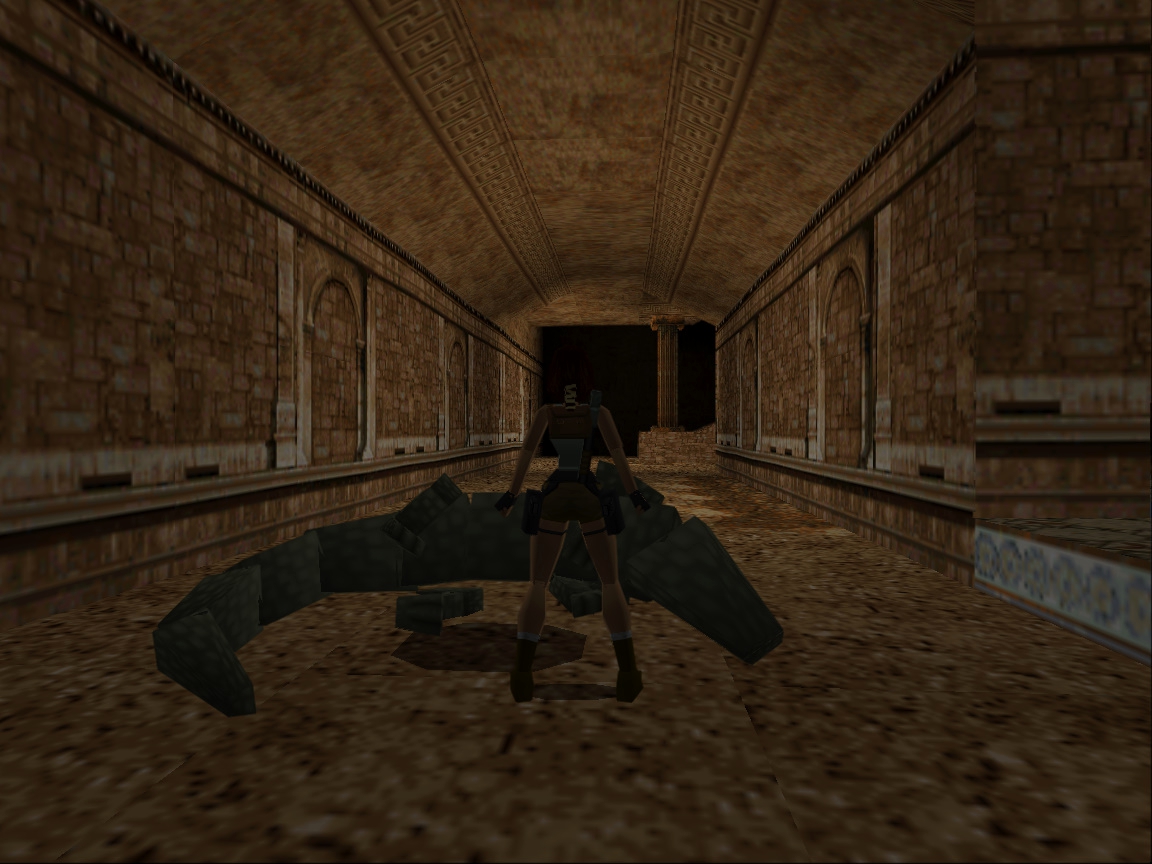 Вообще, уровень вобрал в себя две эпохи, отчего начинаешь игру с переделанной локации, а где-то к середине попадаешь в привычный 1996 год. Разумеется, до финала тут как до луны, враги стоят столбом, белые все, кроме крокодилов, которые, как оказалось, всё-таки могут плавать (хотя это может быть реставрацией фанатов, ибо уровень не запускался без вмешательства). Двери к испытаниям стоят без текстур, но коды к ним те же самые, что в оригинале, но зайдя к ним – ничего не работает. Колона не обрушает локацию, а огня и вовсе нет, тем не менее я не жалуюсь на такую недоработку, всё-таки огненное испытание поджигало не только Лару...