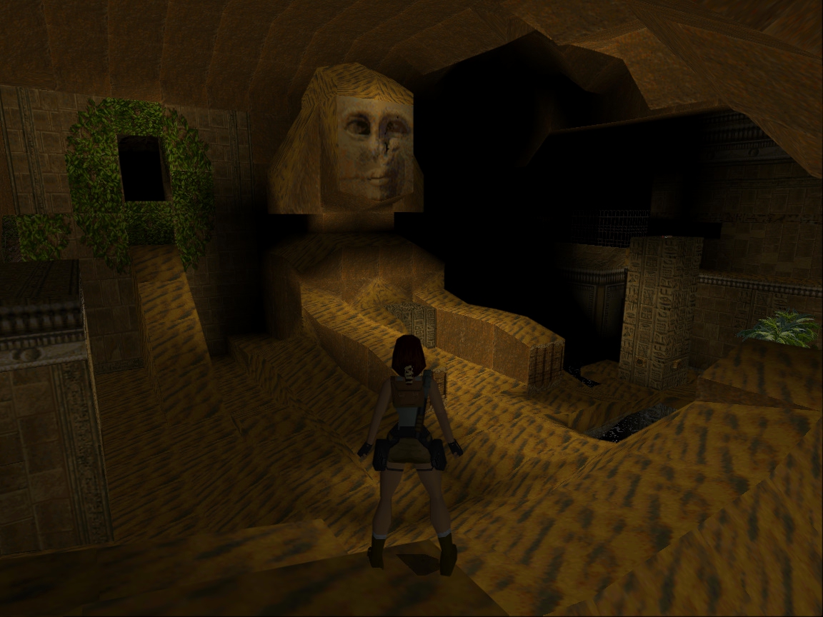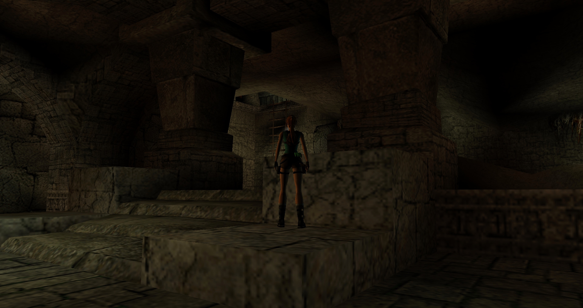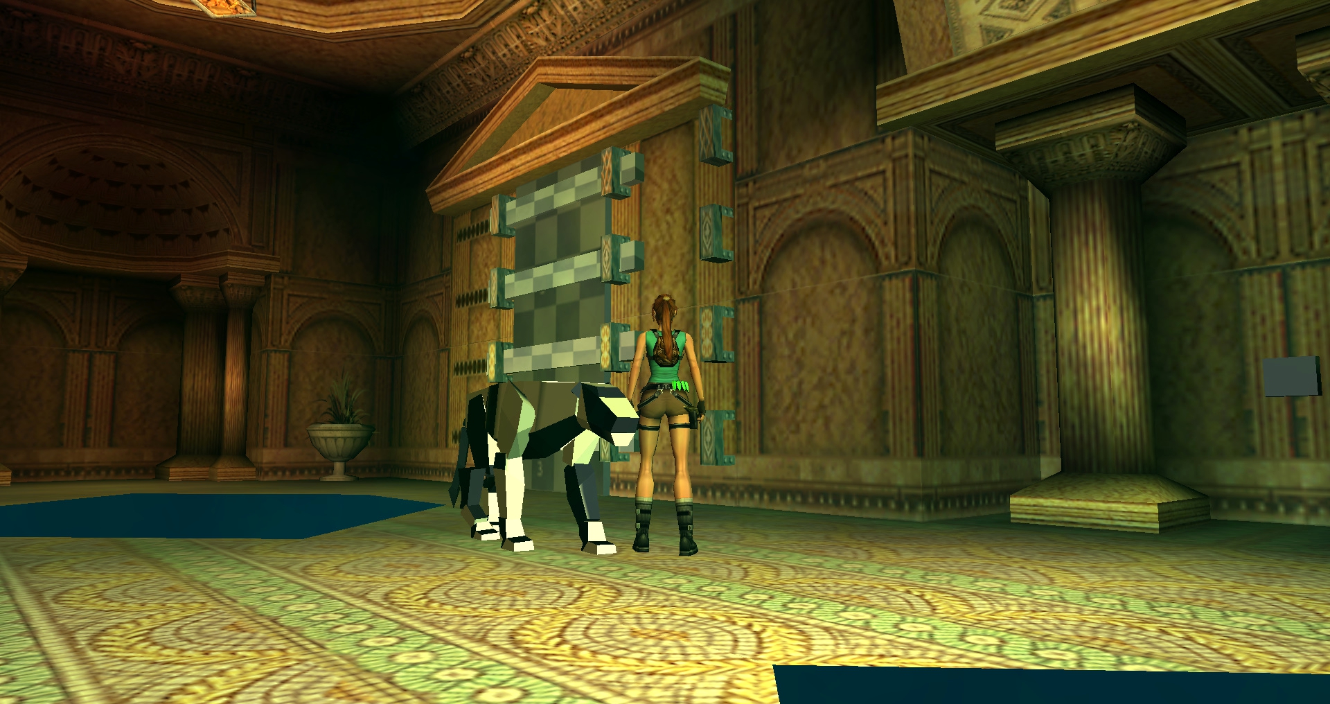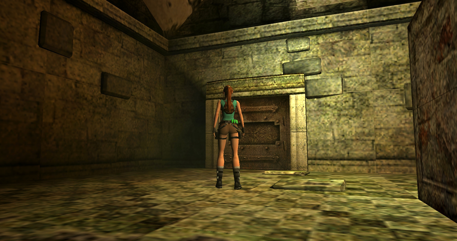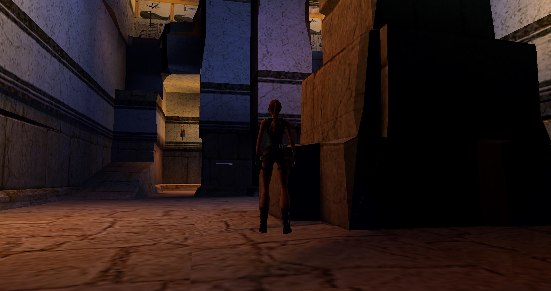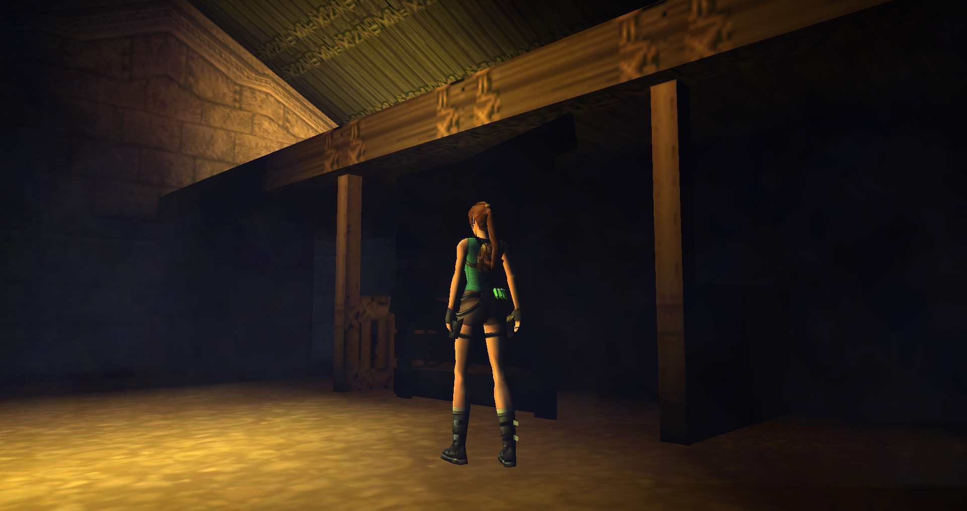 Вообще, уровень вобрал в себя две эпохи, отчего начинаешь игру с переделанной локации, а где-то к середине попадаешь в привычный 1996 год. Разумеется, до финала тут как до луны, враги стоят столбом, белые все, кроме крокодилов, которые, как оказалось, всё-таки могут плавать (хотя это может быть реставрацией фанатов, ибо уровень не запускался без вмешательства). Двери к испытаниям стоят без текстур, но коды к ним те же самые, что в оригинале, но зайдя к ним – ничего не работает. Колона не обрушает локацию, а огня и вовсе нет, тем не менее я не жалуюсь на такую недоработку, всё-таки огненное испытание поджигало не только Лару...