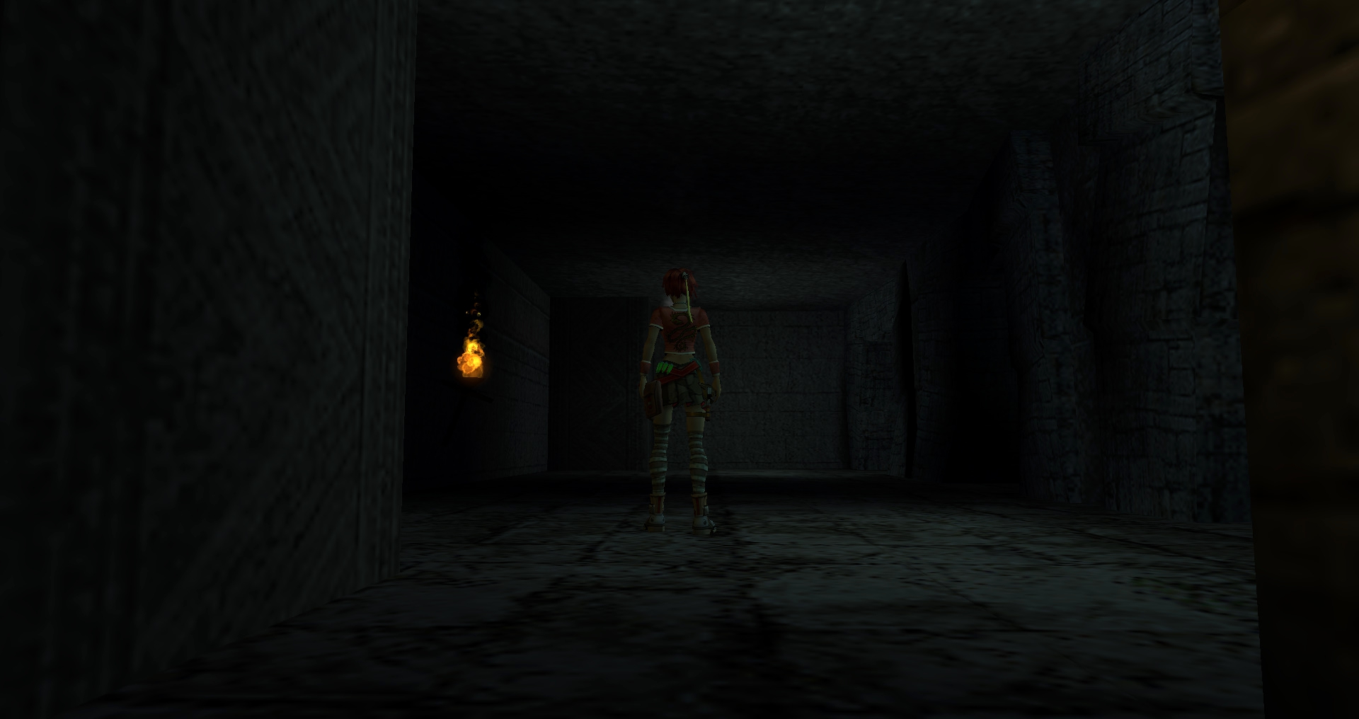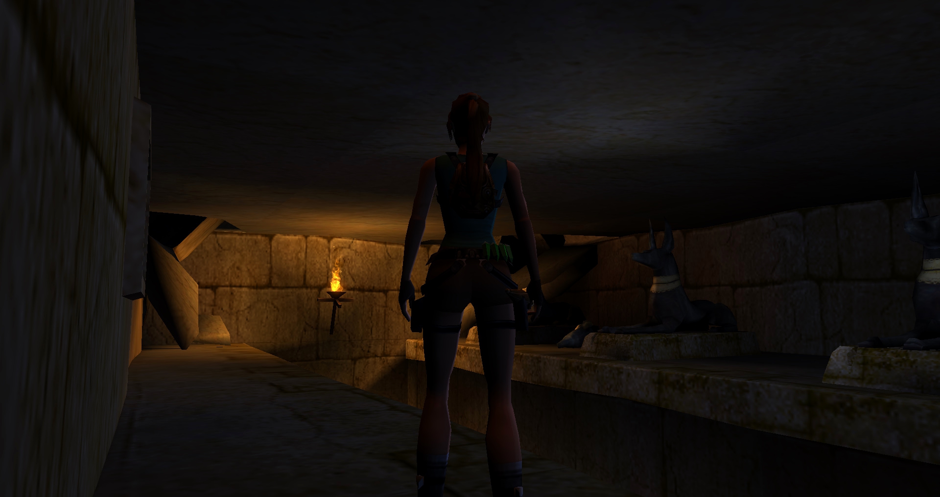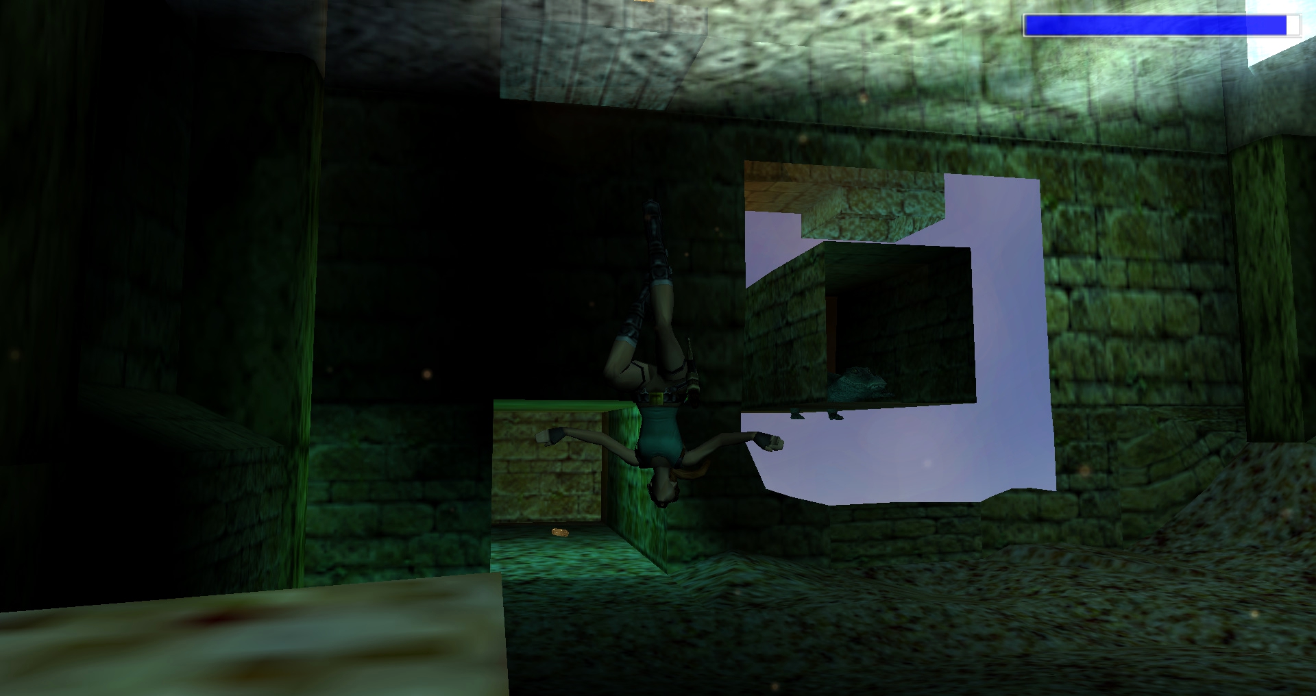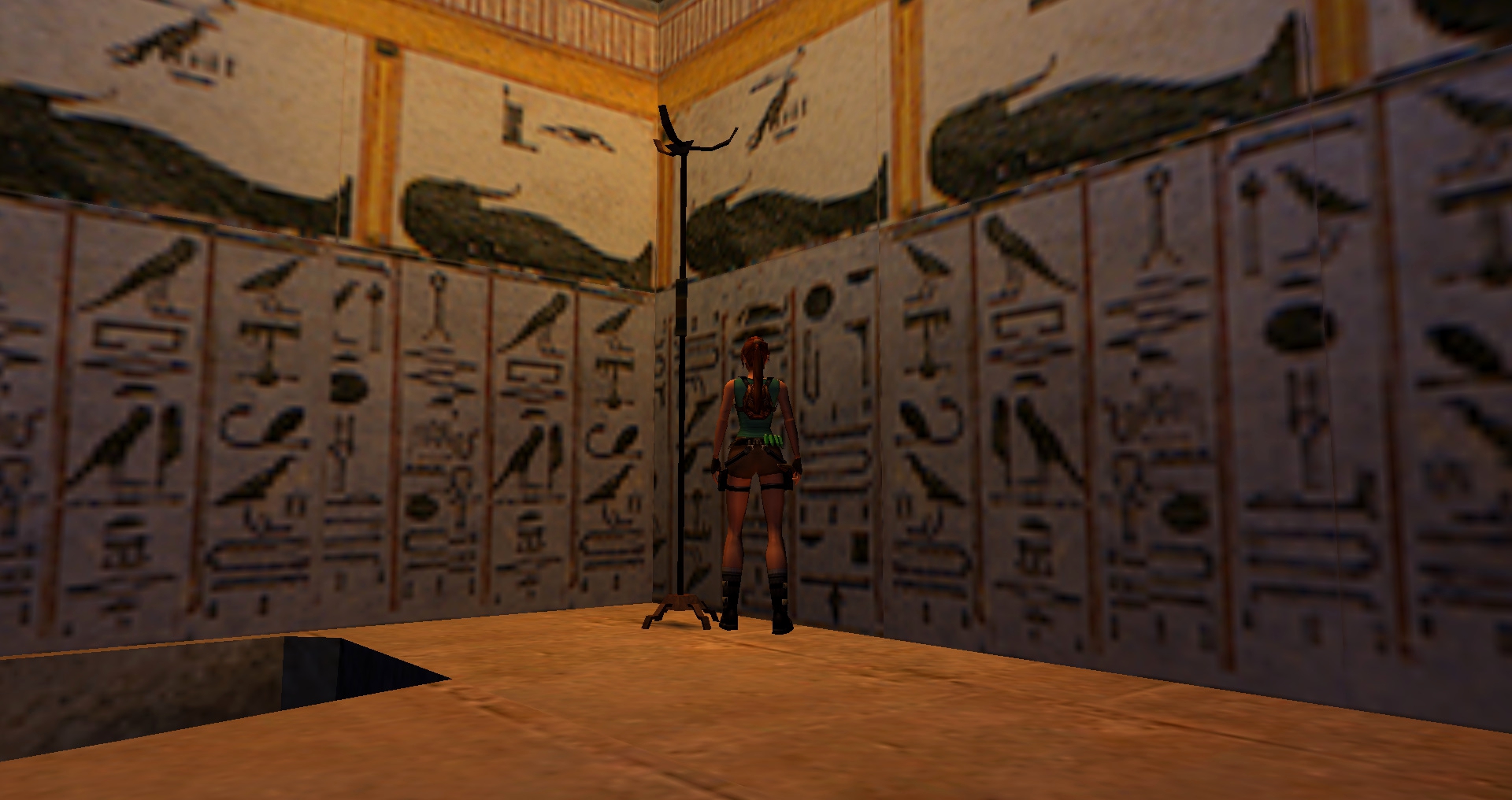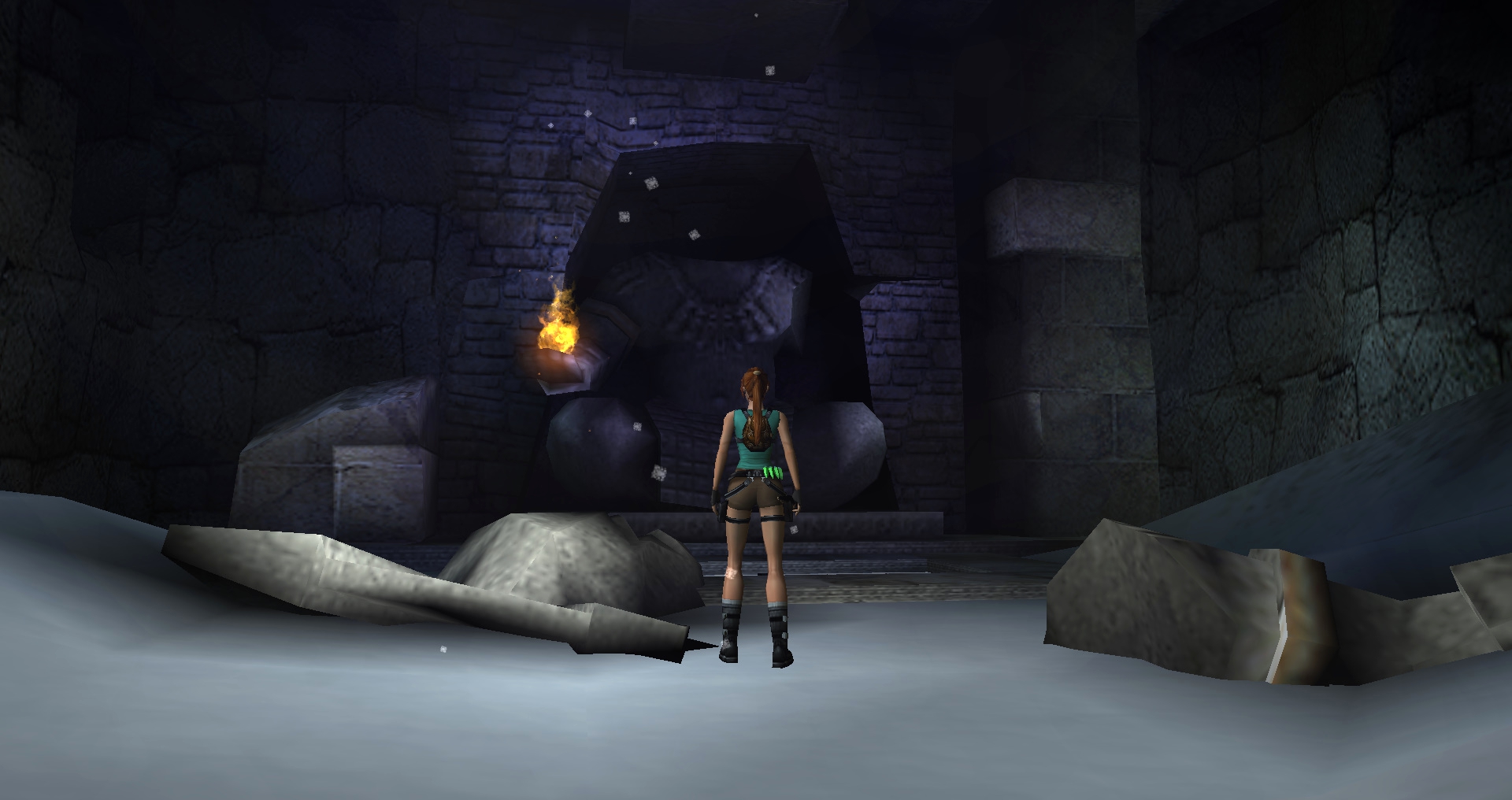 Вообще, уровень вобрал в себя две эпохи, отчего начинаешь игру с переделанной локации, а где-то к середине попадаешь в привычный 1996 год. Разумеется, до финала тут как до луны, враги стоят столбом, белые все, кроме крокодилов, которые, как оказалось, всё-таки могут плавать (хотя это может быть реставрацией фанатов, ибо уровень не запускался без вмешательства). Двери к испытаниям стоят без текстур, но коды к ним те же самые, что в оригинале, но зайдя к ним – ничего не работает. Колона не обрушает локацию, а огня и вовсе нет, тем не менее я не жалуюсь на такую недоработку, всё-таки огненное испытание поджигало не только Лару...