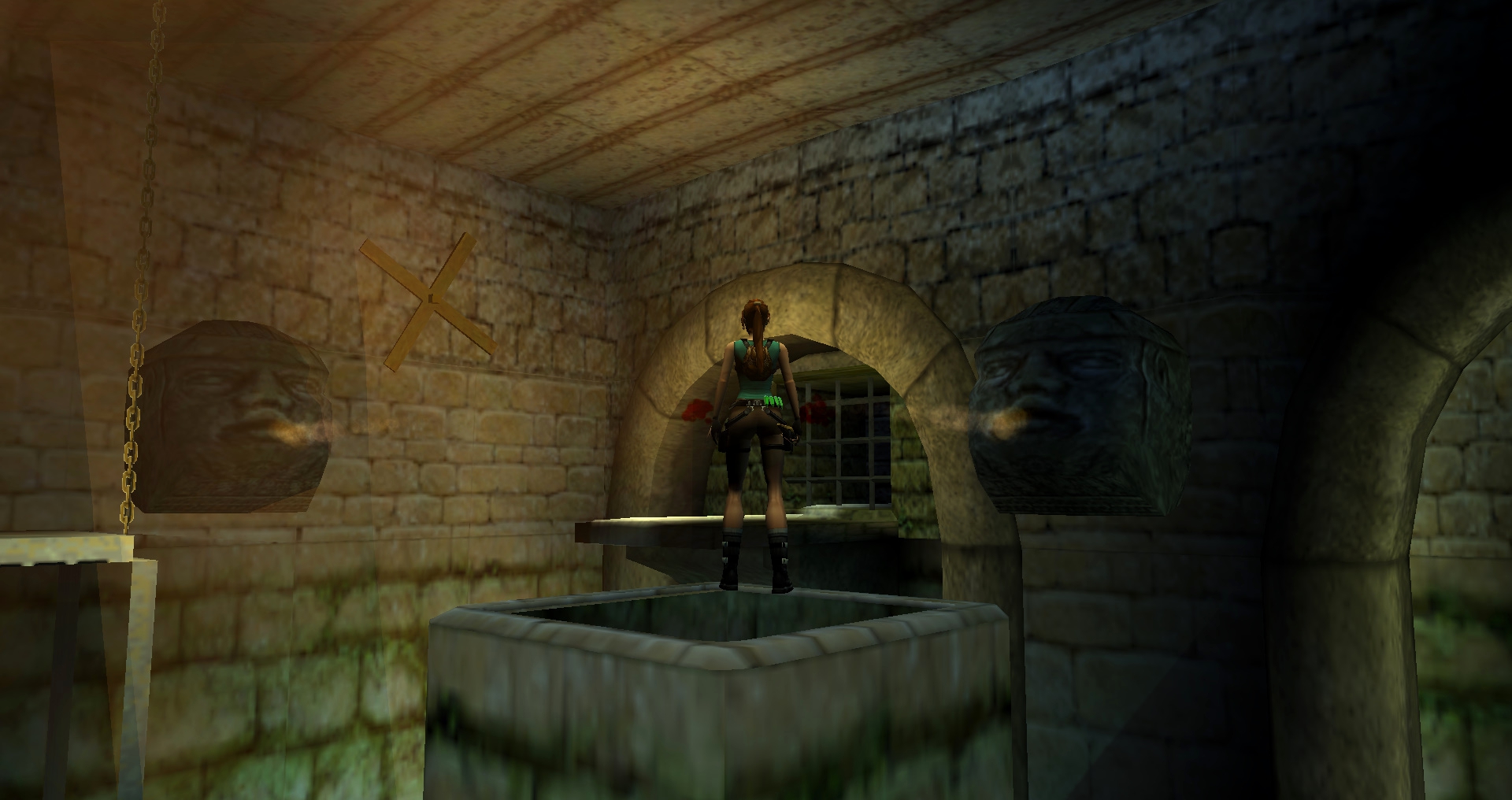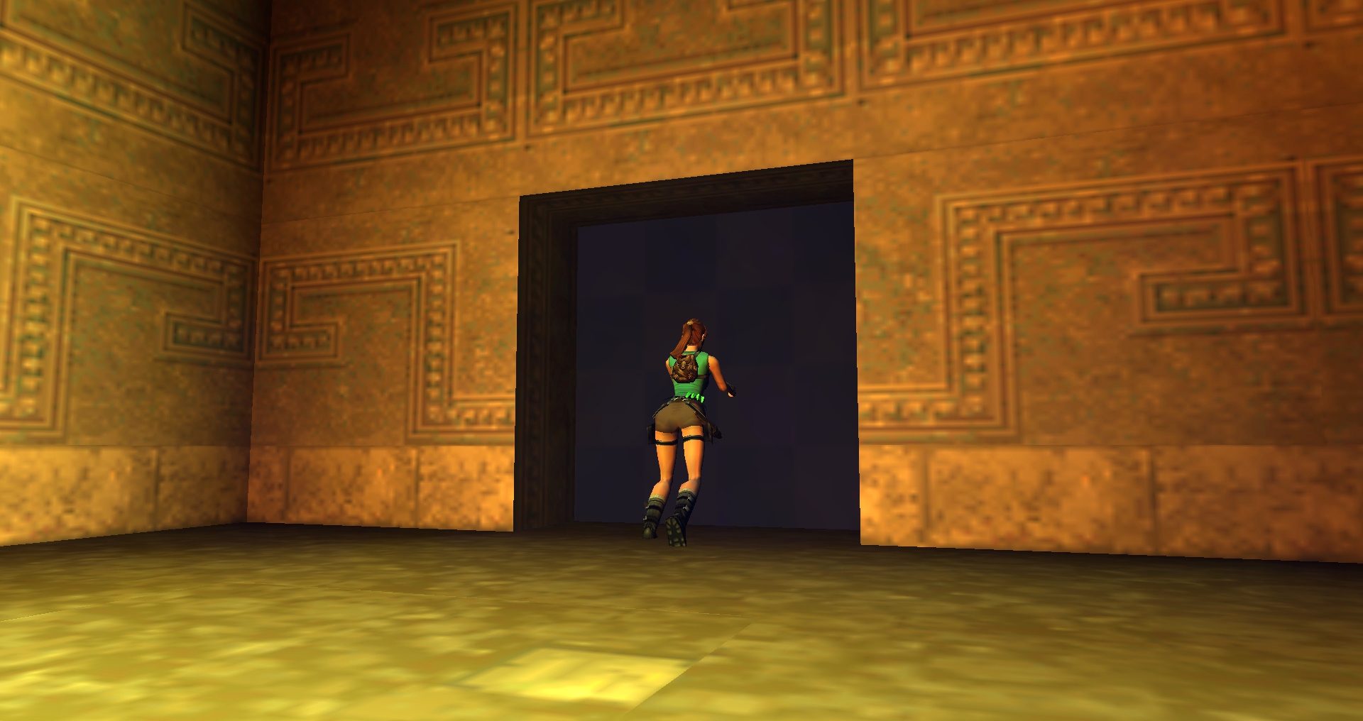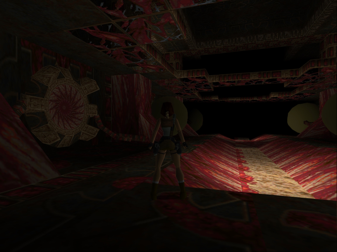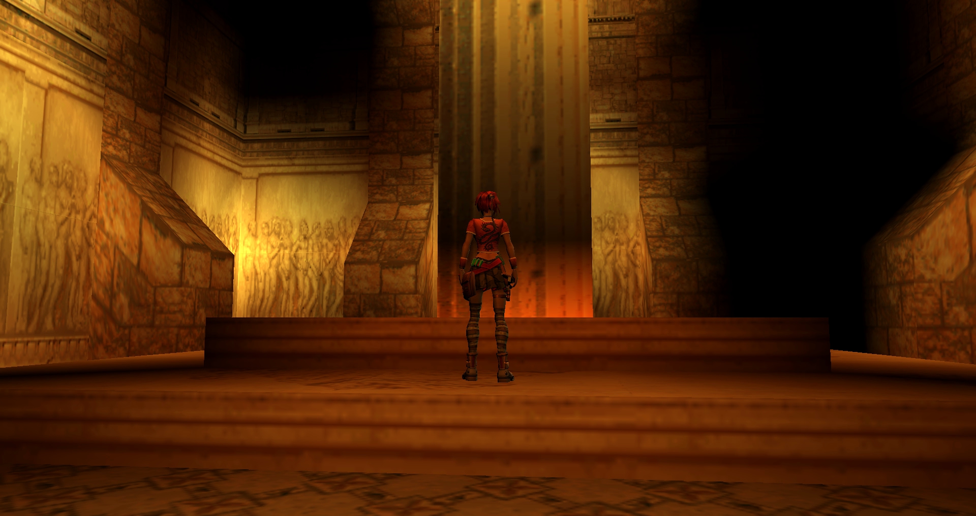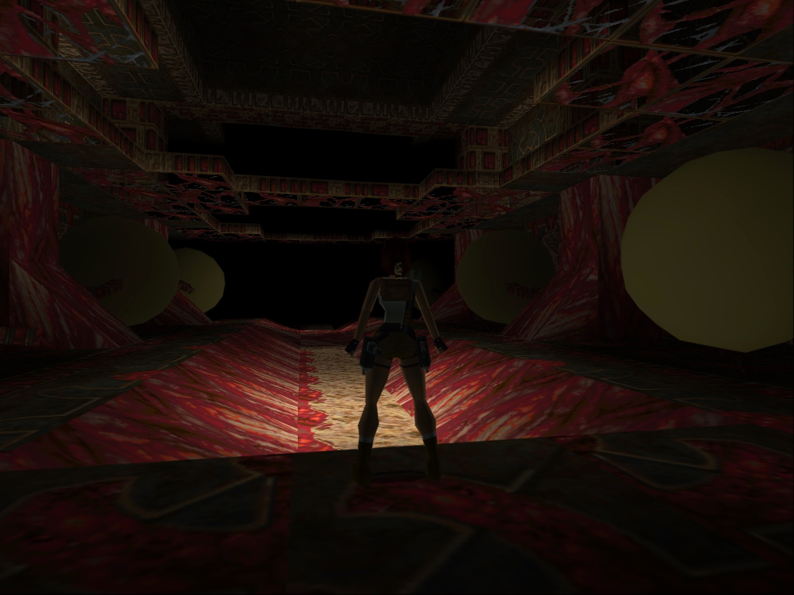 Вообще, уровень вобрал в себя две эпохи, отчего начинаешь игру с переделанной локации, а где-то к середине попадаешь в привычный 1996 год. Разумеется, до финала тут как до луны, враги стоят столбом, белые все, кроме крокодилов, которые, как оказалось, всё-таки могут плавать (хотя это может быть реставрацией фанатов, ибо уровень не запускался без вмешательства). Двери к испытаниям стоят без текстур, но коды к ним те же самые, что в оригинале, но зайдя к ним – ничего не работает. Колона не обрушает локацию, а огня и вовсе нет, тем не менее я не жалуюсь на такую недоработку, всё-таки огненное испытание поджигало не только Лару...