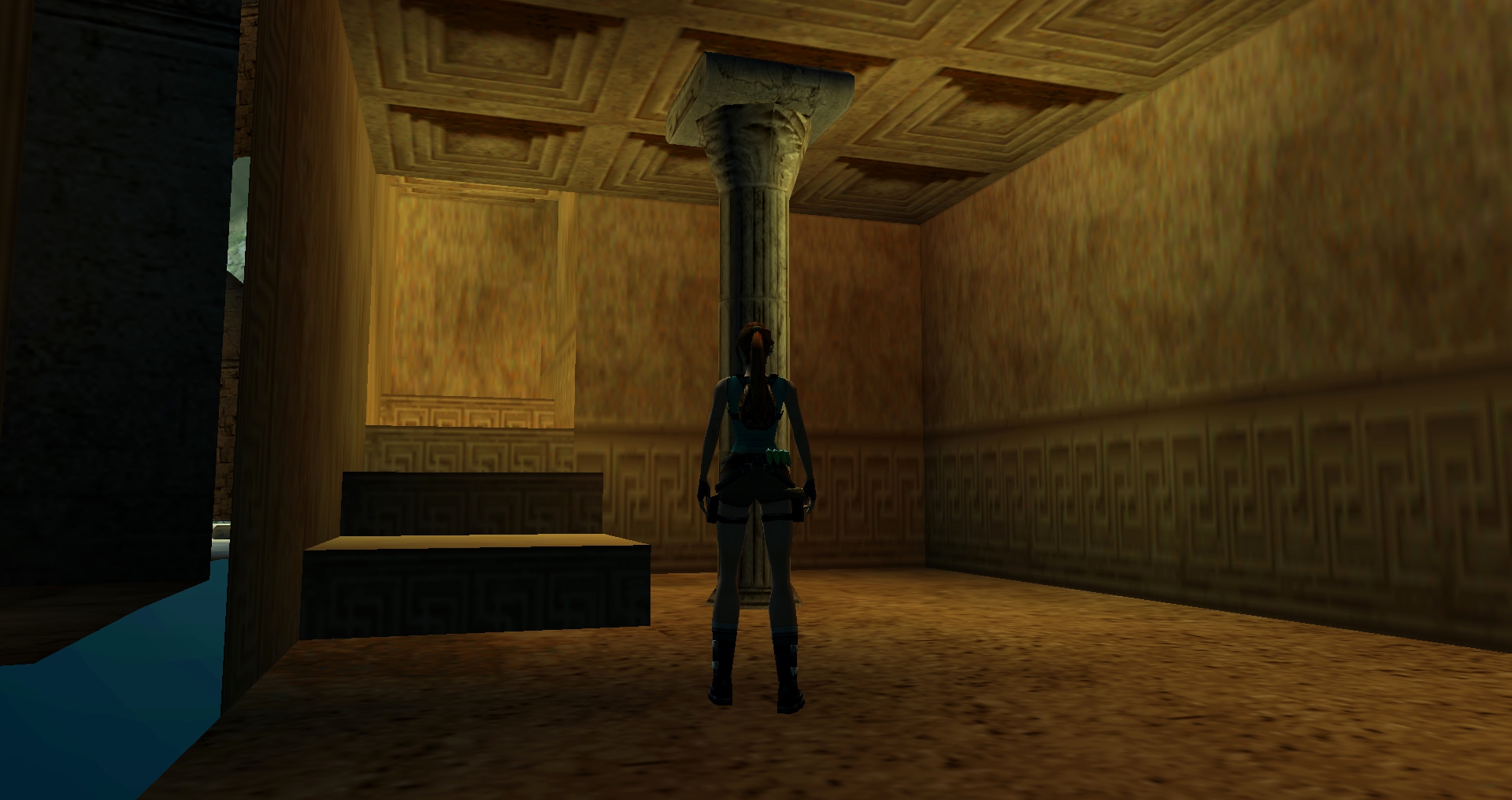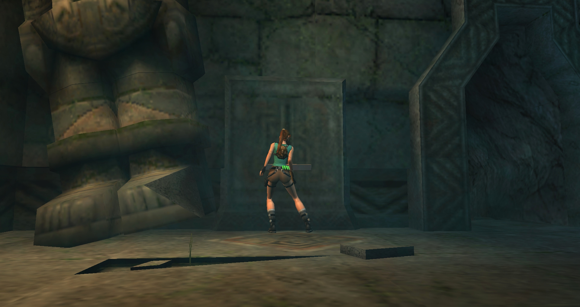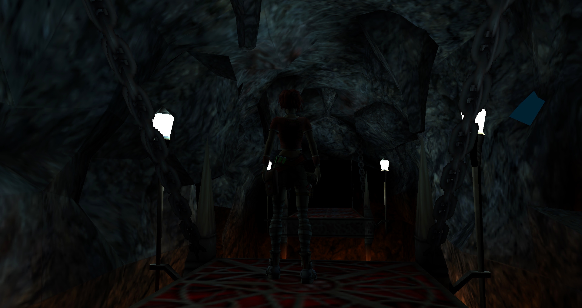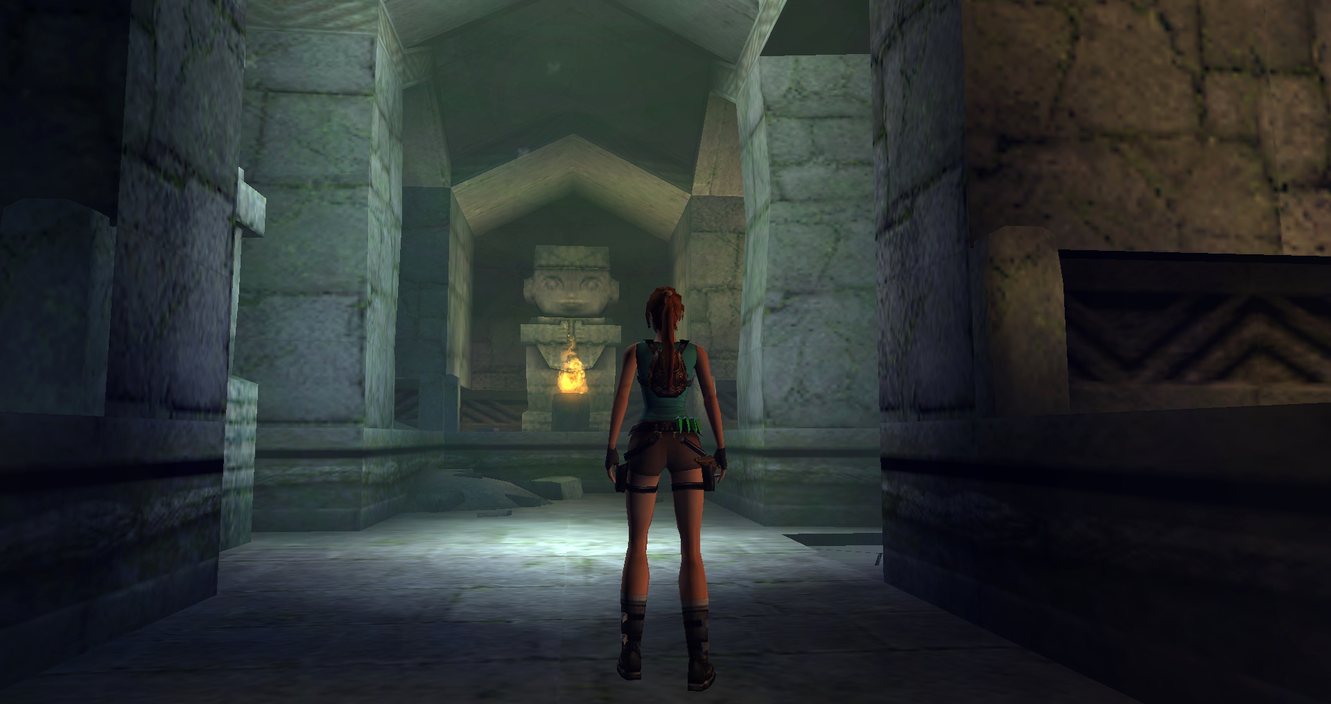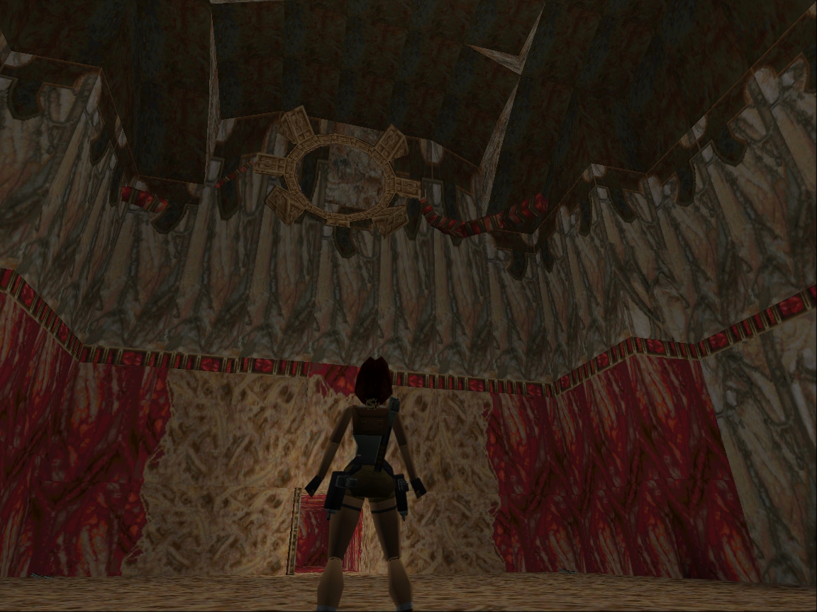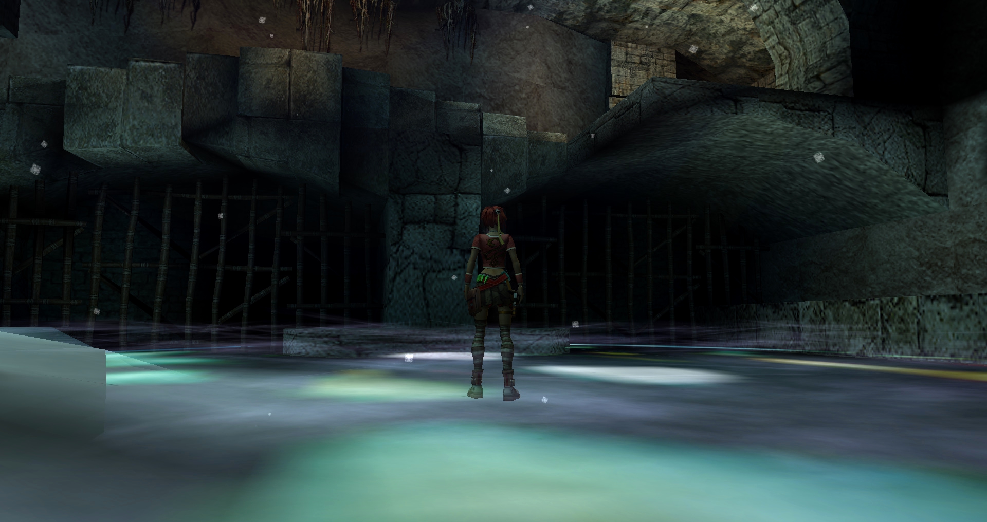 Вообще, уровень вобрал в себя две эпохи, отчего начинаешь игру с переделанной локации, а где-то к середине попадаешь в привычный 1996 год. Разумеется, до финала тут как до луны, враги стоят столбом, белые все, кроме крокодилов, которые, как оказалось, всё-таки могут плавать (хотя это может быть реставрацией фанатов, ибо уровень не запускался без вмешательства). Двери к испытаниям стоят без текстур, но коды к ним те же самые, что в оригинале, но зайдя к ним – ничего не работает. Колона не обрушает локацию, а огня и вовсе нет, тем не менее я не жалуюсь на такую недоработку, всё-таки огненное испытание поджигало не только Лару...