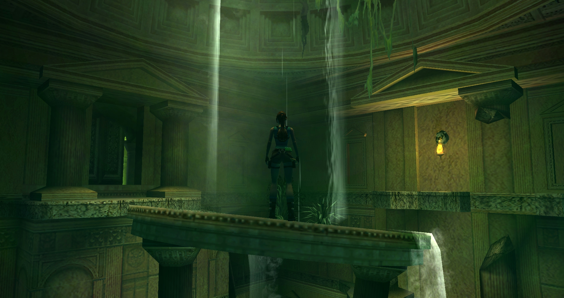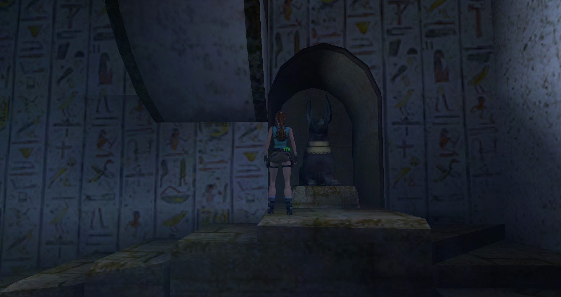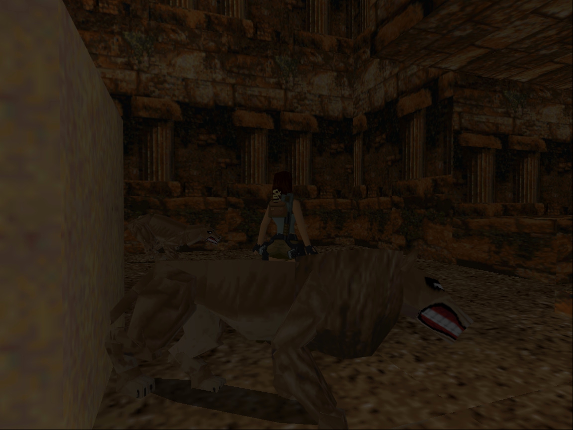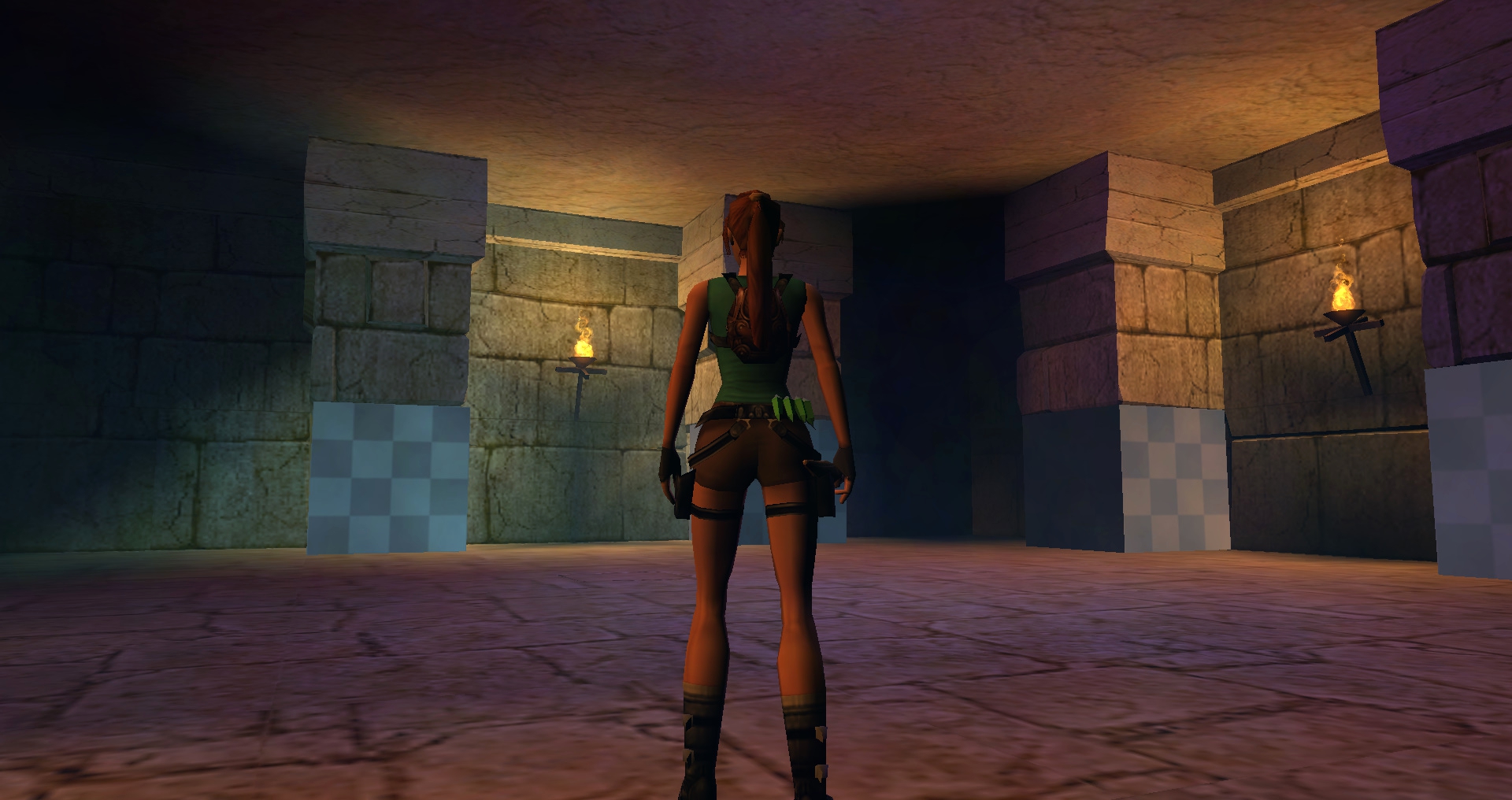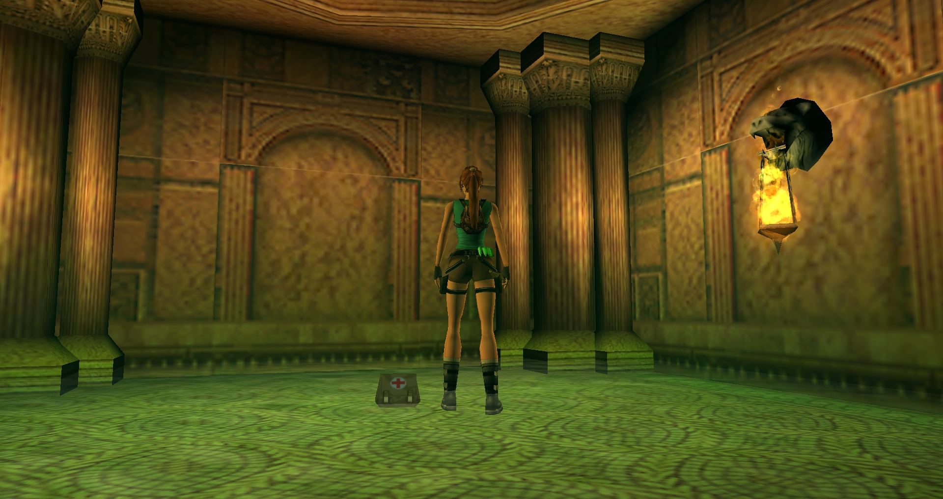 Вообще, уровень вобрал в себя две эпохи, отчего начинаешь игру с переделанной локации, а где-то к середине попадаешь в привычный 1996 год. Разумеется, до финала тут как до луны, враги стоят столбом, белые все, кроме крокодилов, которые, как оказалось, всё-таки могут плавать (хотя это может быть реставрацией фанатов, ибо уровень не запускался без вмешательства). Двери к испытаниям стоят без текстур, но коды к ним те же самые, что в оригинале, но зайдя к ним – ничего не работает. Колона не обрушает локацию, а огня и вовсе нет, тем не менее я не жалуюсь на такую недоработку, всё-таки огненное испытание поджигало не только Лару...