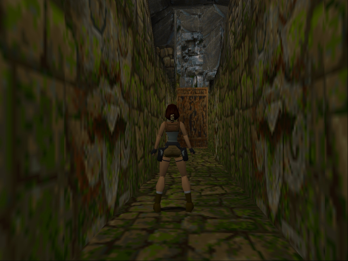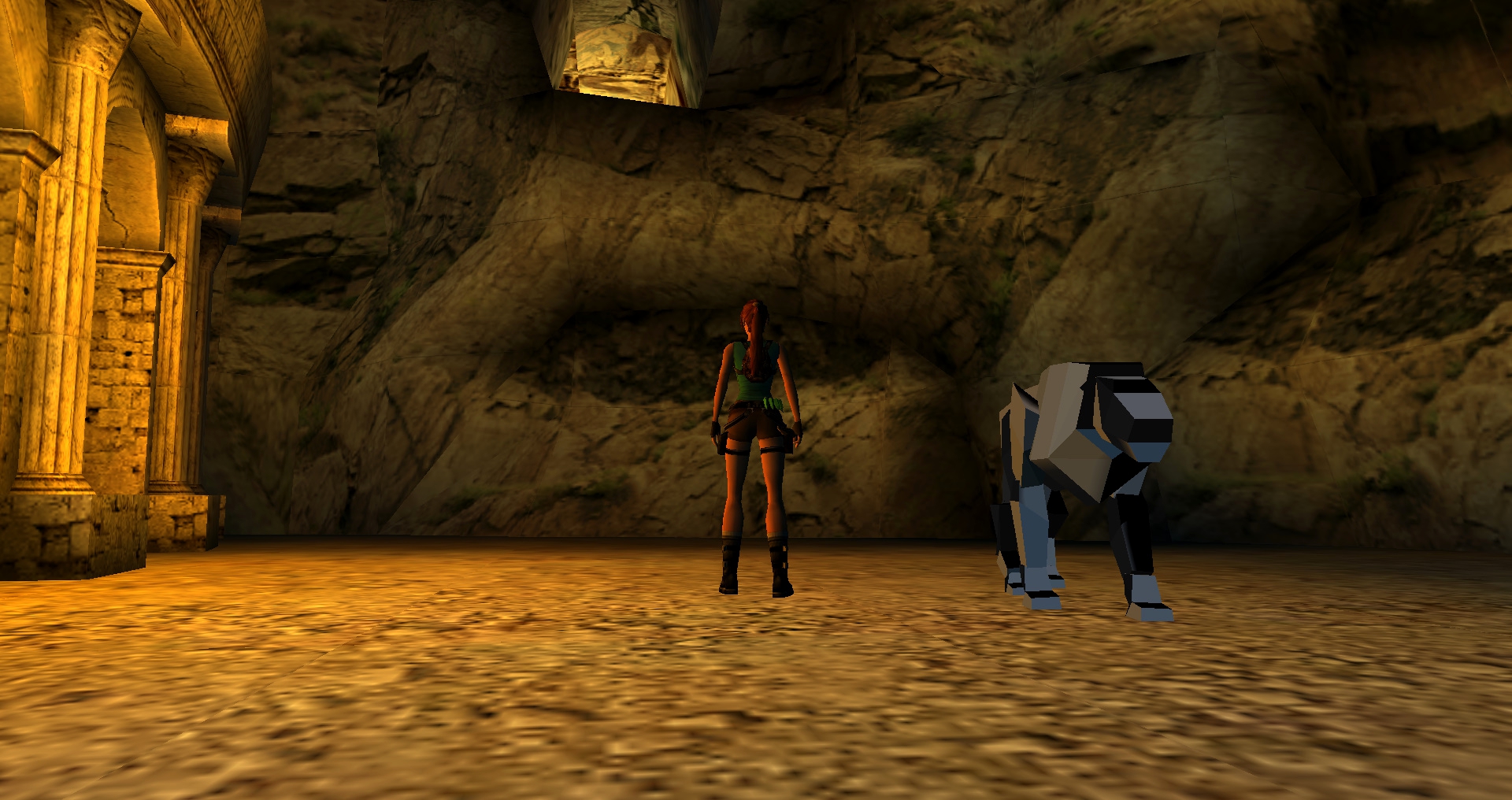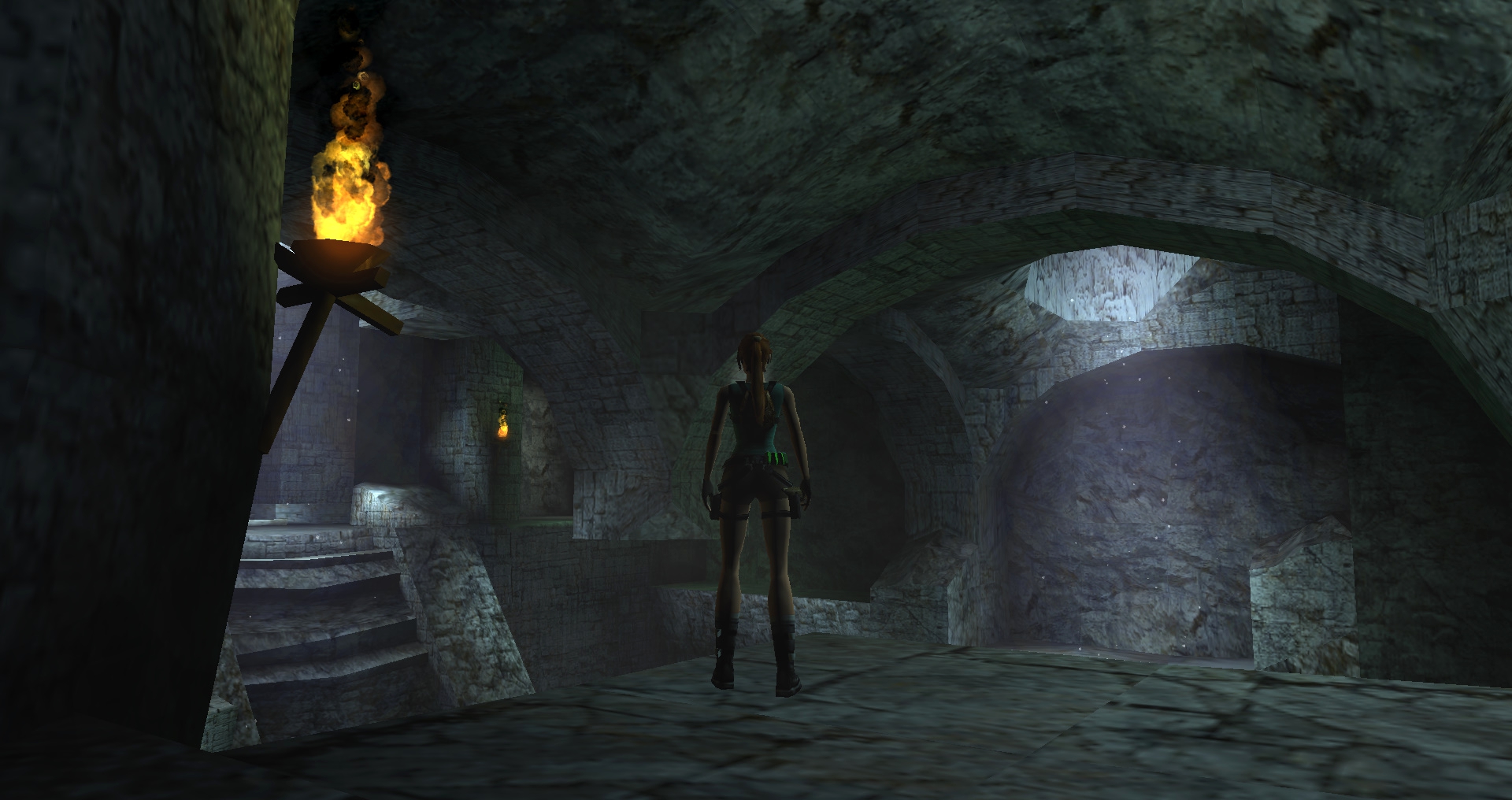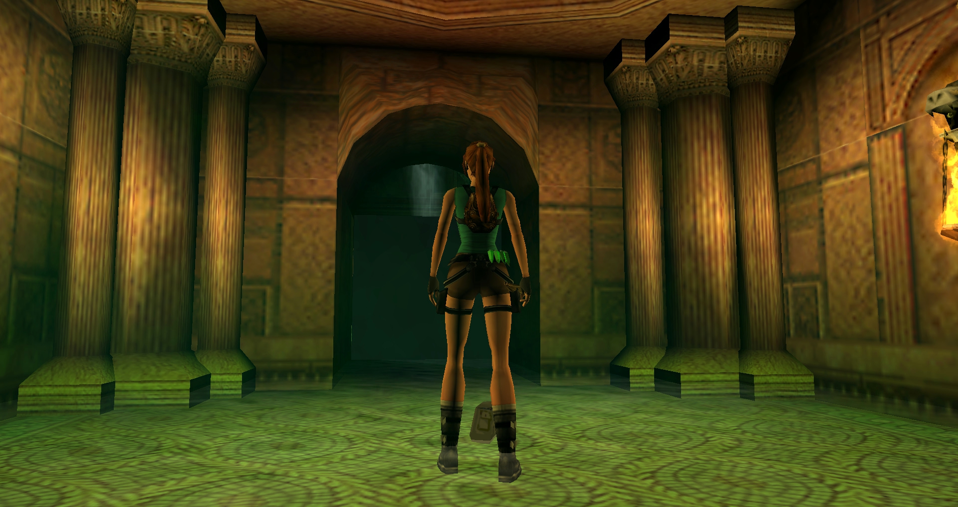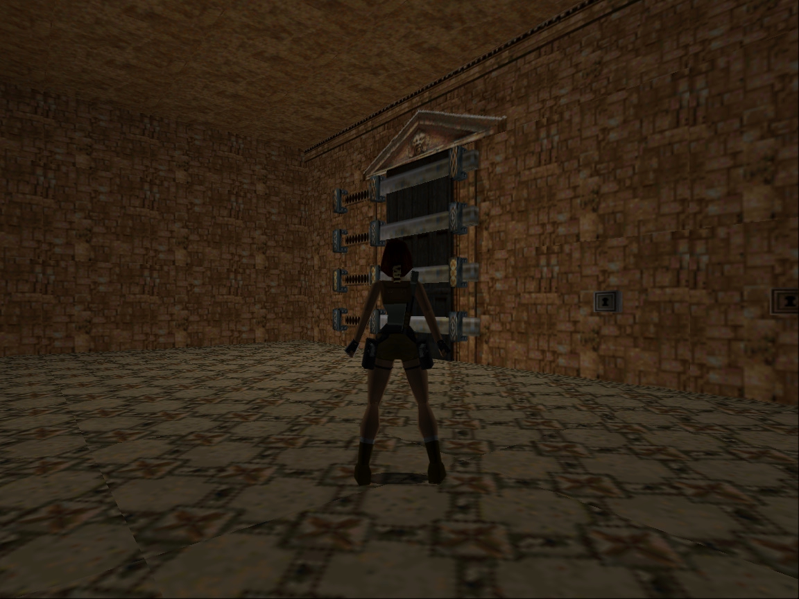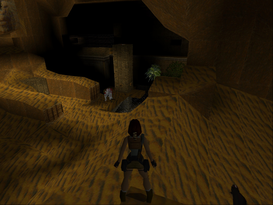 Вообще, уровень вобрал в себя две эпохи, отчего начинаешь игру с переделанной локации, а где-то к середине попадаешь в привычный 1996 год. Разумеется, до финала тут как до луны, враги стоят столбом, белые все, кроме крокодилов, которые, как оказалось, всё-таки могут плавать (хотя это может быть реставрацией фанатов, ибо уровень не запускался без вмешательства). Двери к испытаниям стоят без текстур, но коды к ним те же самые, что в оригинале, но зайдя к ним – ничего не работает. Колона не обрушает локацию, а огня и вовсе нет, тем не менее я не жалуюсь на такую недоработку, всё-таки огненное испытание поджигало не только Лару...