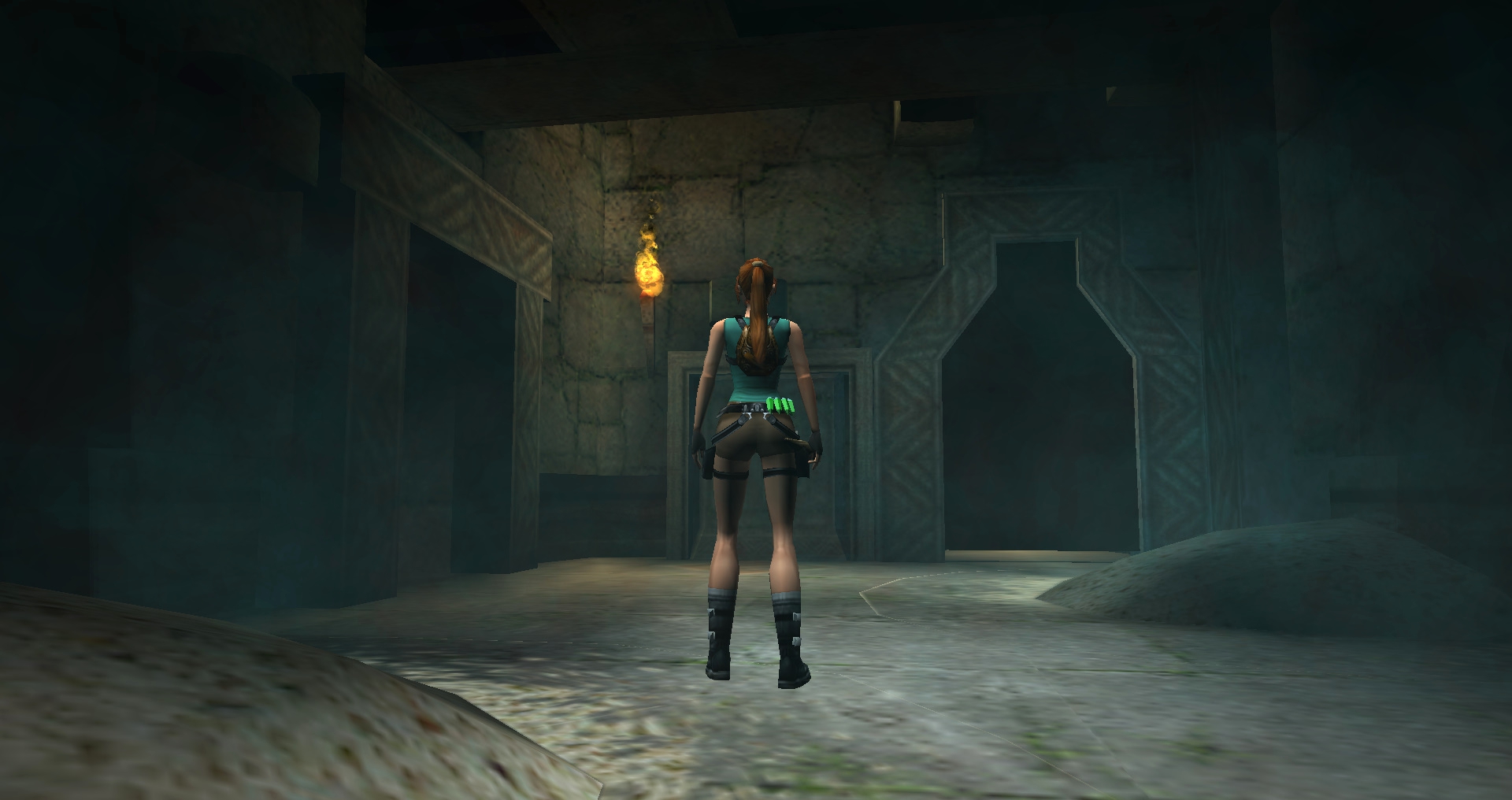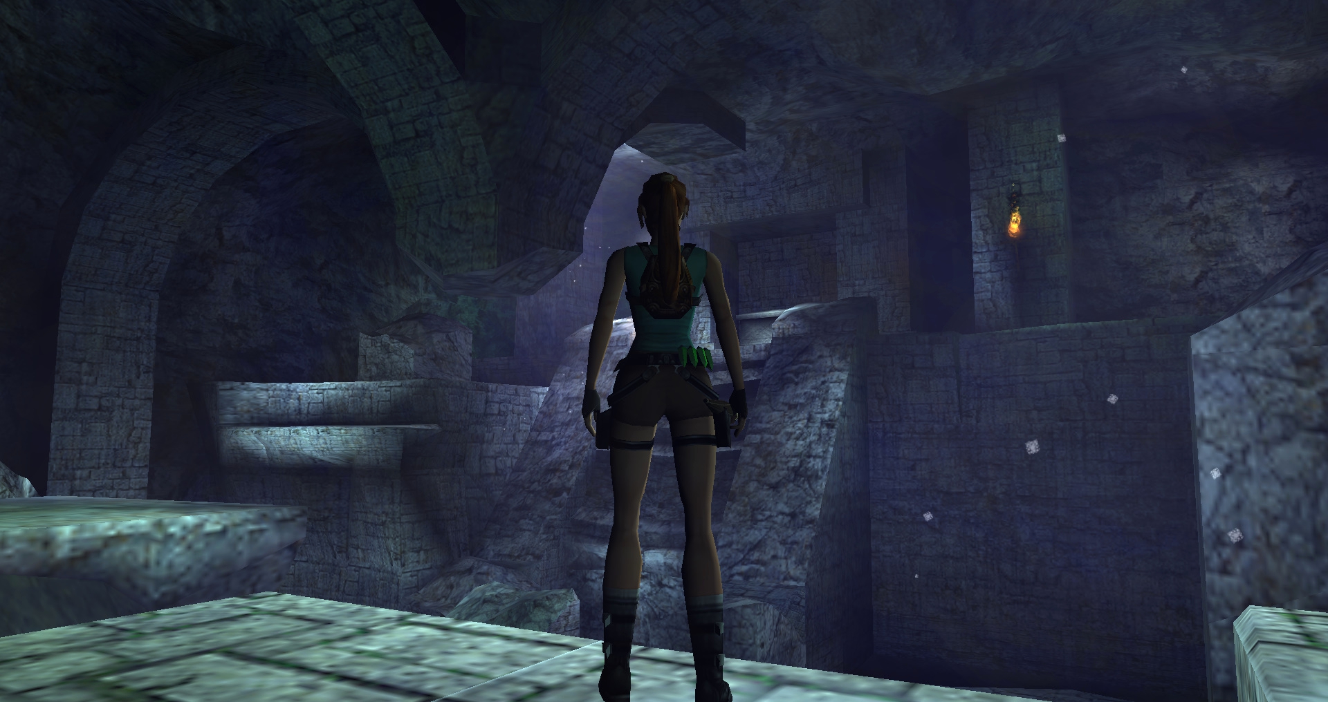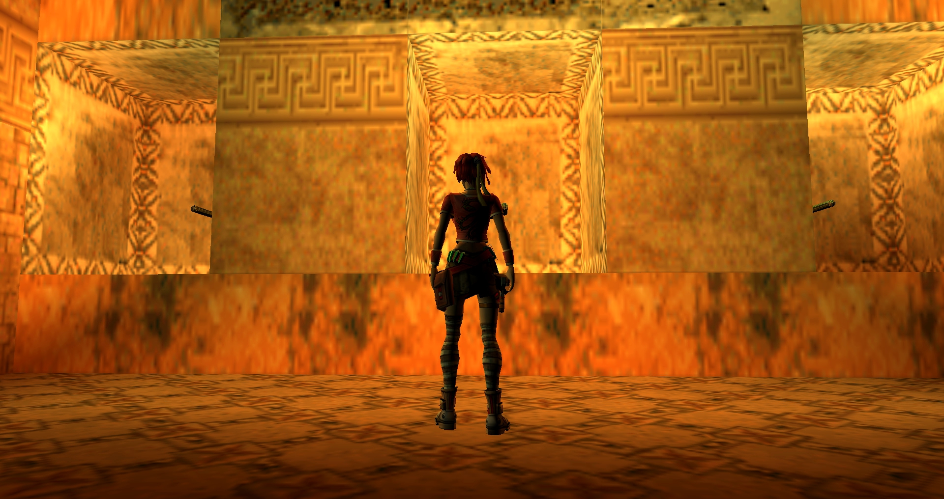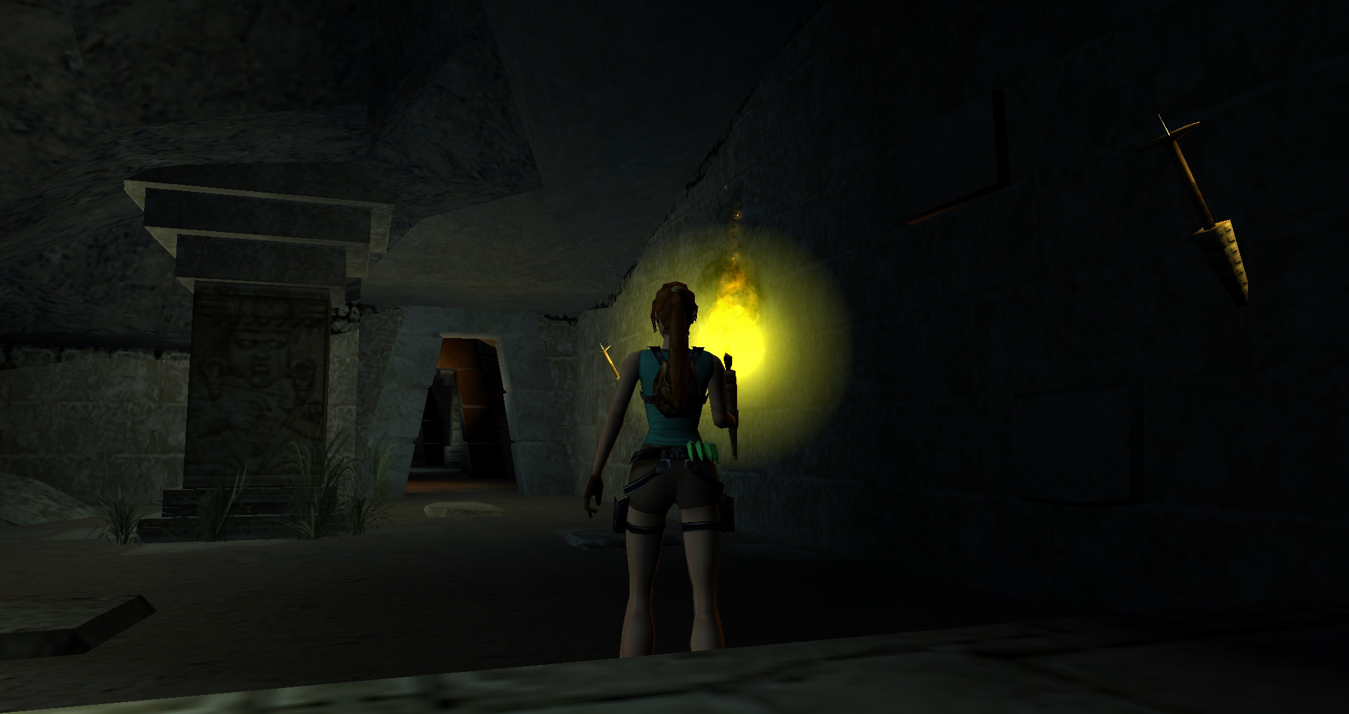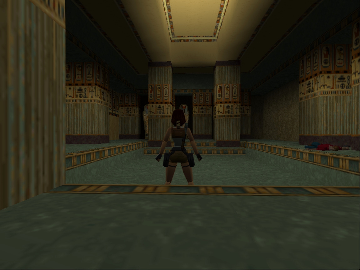 Вообще, уровень вобрал в себя две эпохи, отчего начинаешь игру с переделанной локации, а где-то к середине попадаешь в привычный 1996 год. Разумеется, до финала тут как до луны, враги стоят столбом, белые все, кроме крокодилов, которые, как оказалось, всё-таки могут плавать (хотя это может быть реставрацией фанатов, ибо уровень не запускался без вмешательства). Двери к испытаниям стоят без текстур, но коды к ним те же самые, что в оригинале, но зайдя к ним – ничего не работает. Колона не обрушает локацию, а огня и вовсе нет, тем не менее я не жалуюсь на такую недоработку, всё-таки огненное испытание поджигало не только Лару...