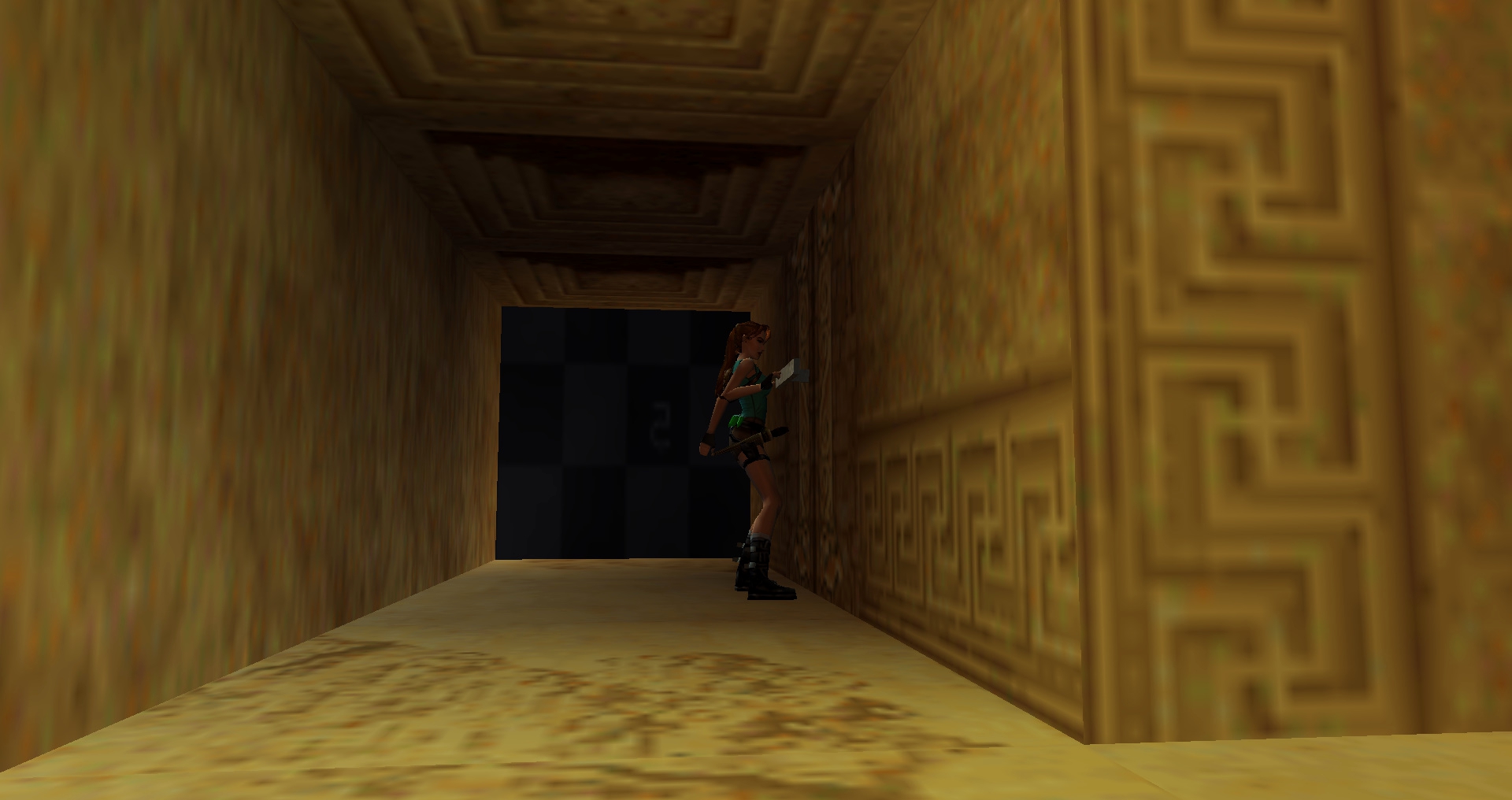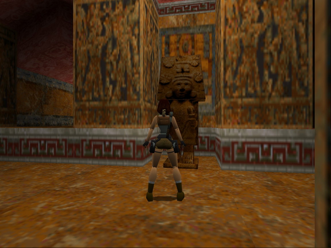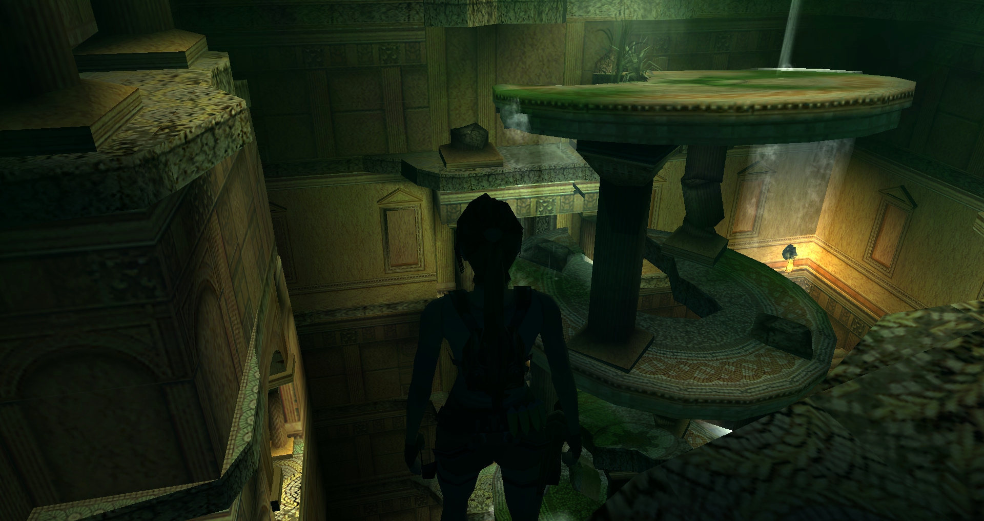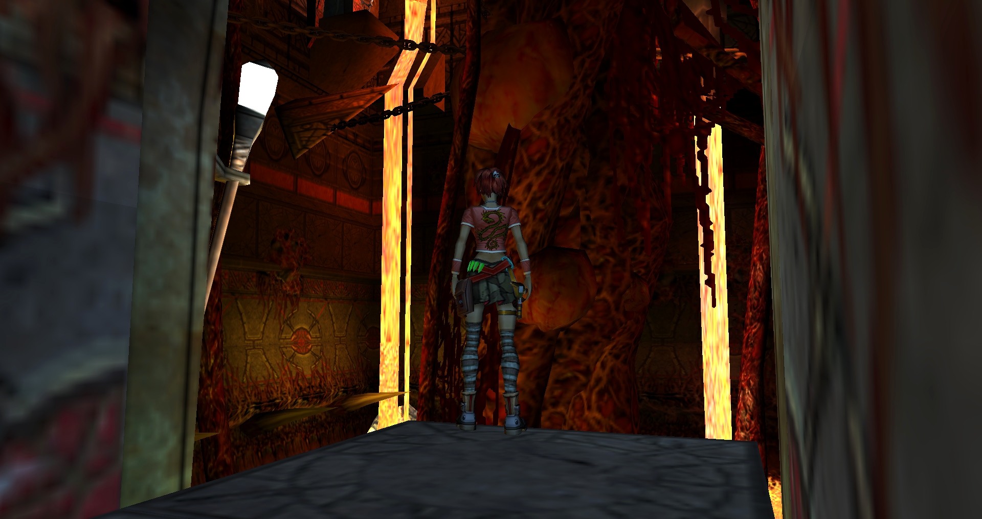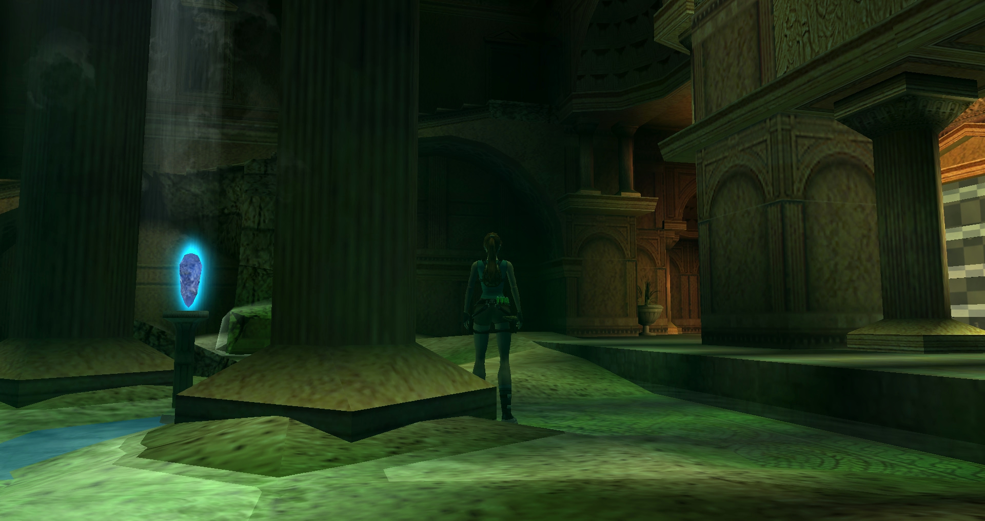 Вообще, уровень вобрал в себя две эпохи, отчего начинаешь игру с переделанной локации, а где-то к середине попадаешь в привычный 1996 год. Разумеется, до финала тут как до луны, враги стоят столбом, белые все, кроме крокодилов, которые, как оказалось, всё-таки могут плавать (хотя это может быть реставрацией фанатов, ибо уровень не запускался без вмешательства). Двери к испытаниям стоят без текстур, но коды к ним те же самые, что в оригинале, но зайдя к ним – ничего не работает. Колона не обрушает локацию, а огня и вовсе нет, тем не менее я не жалуюсь на такую недоработку, всё-таки огненное испытание поджигало не только Лару...