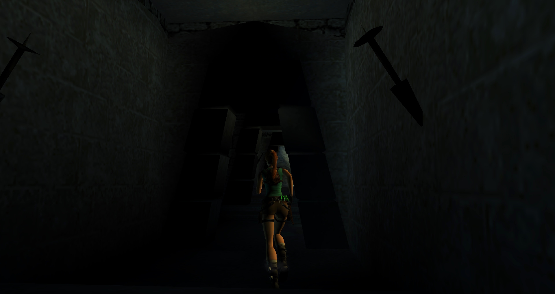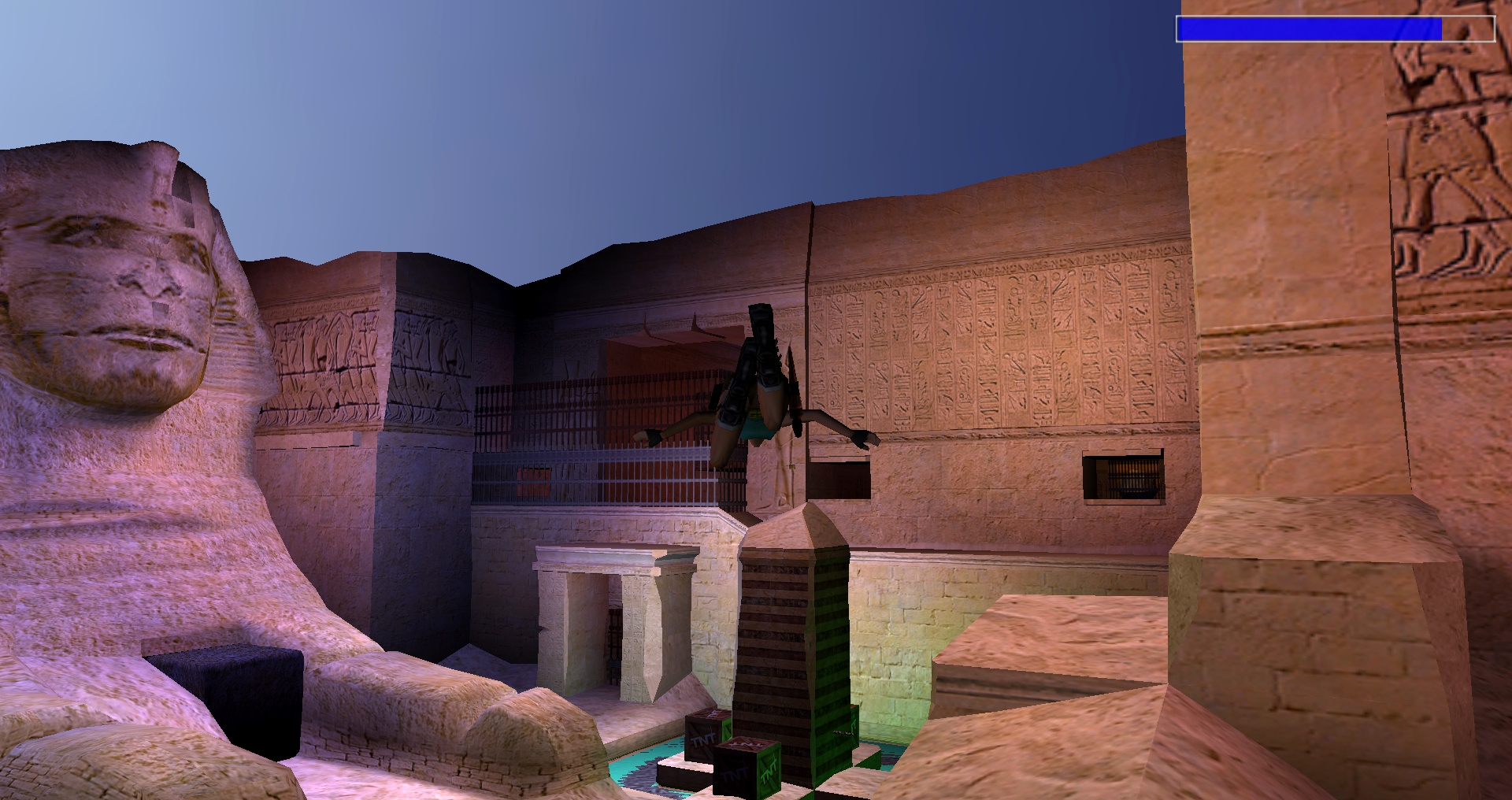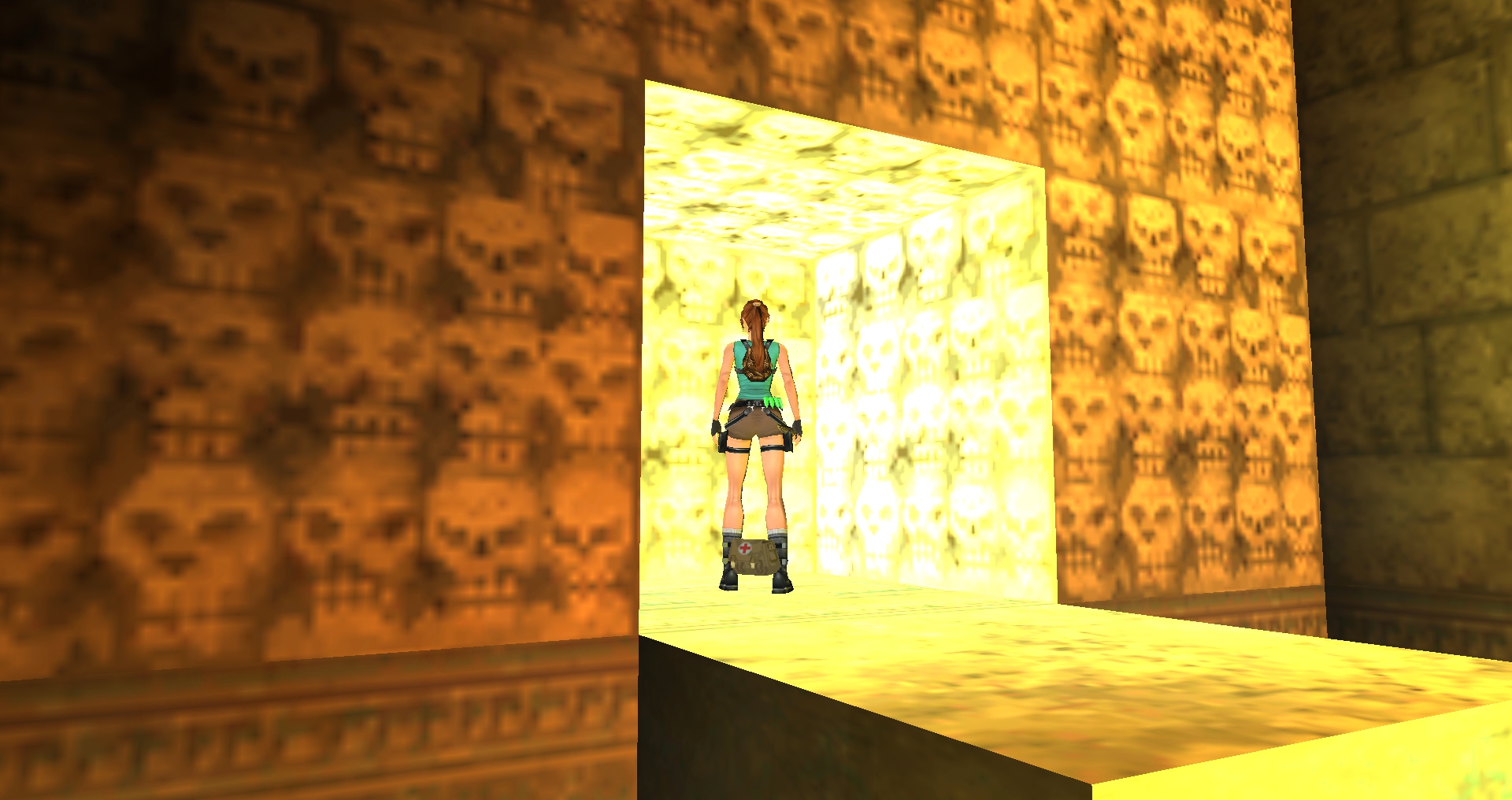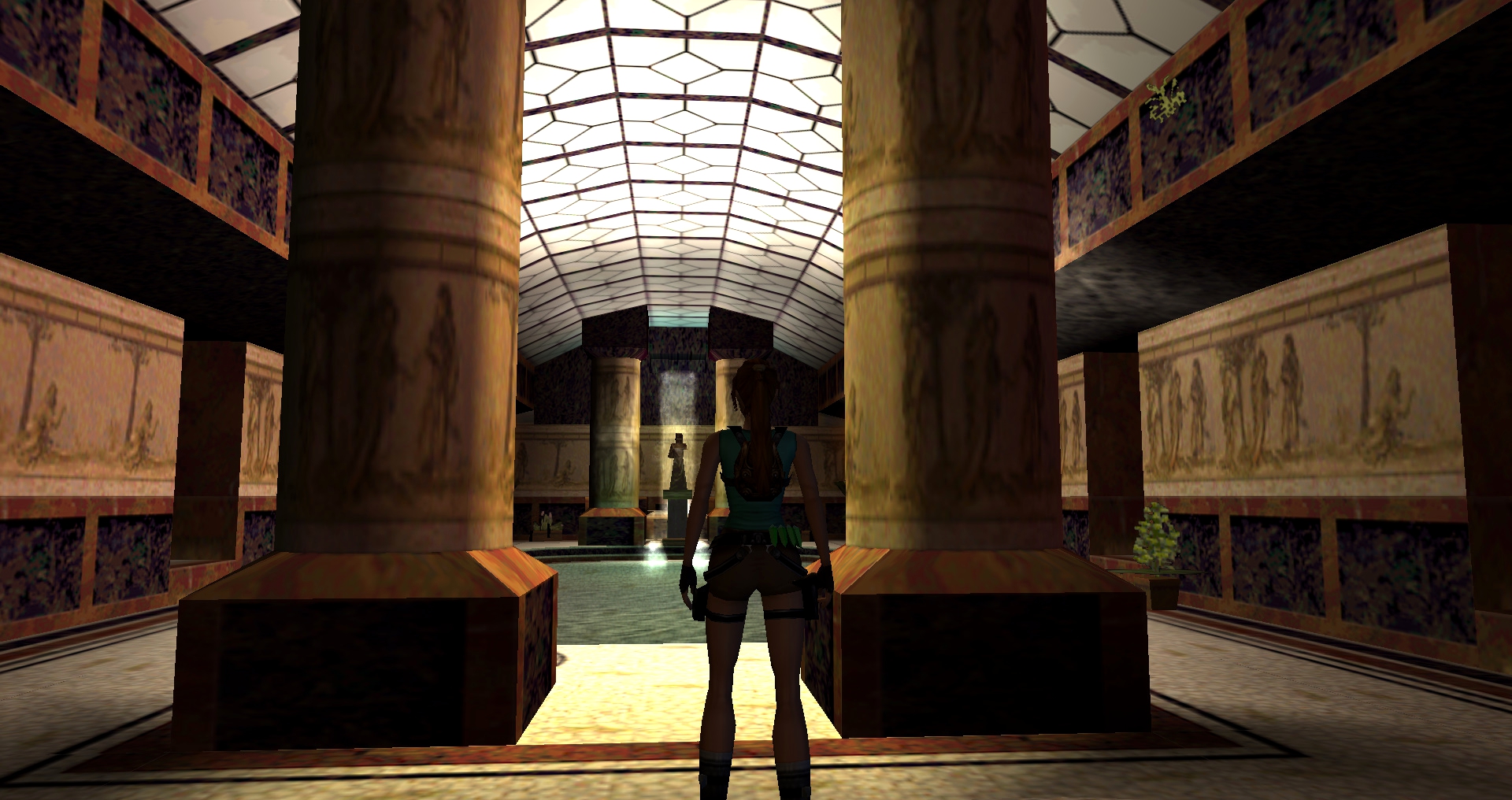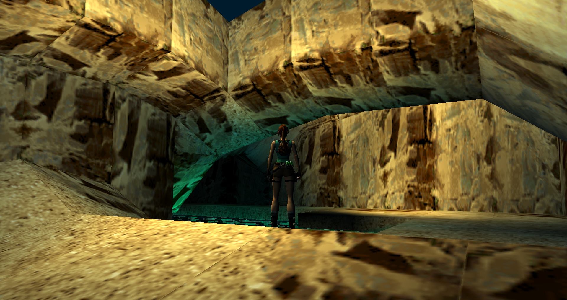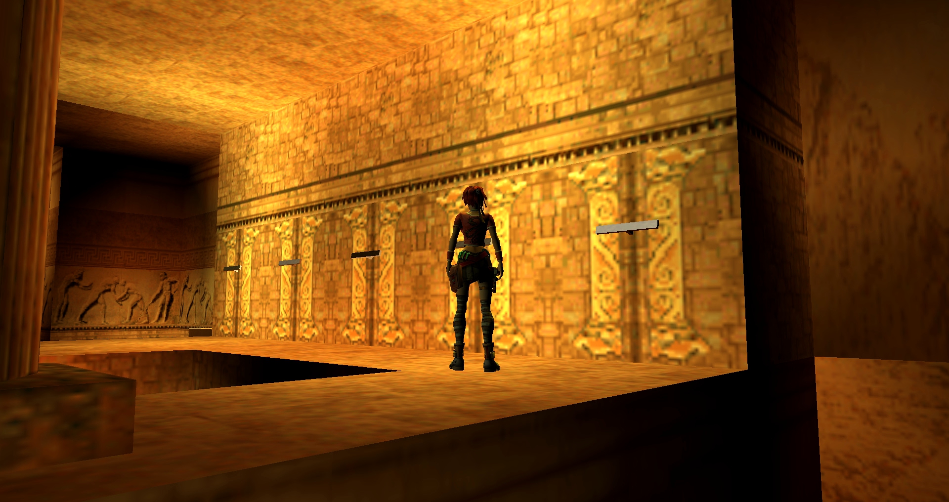 Вообще, уровень вобрал в себя две эпохи, отчего начинаешь игру с переделанной локации, а где-то к середине попадаешь в привычный 1996 год. Разумеется, до финала тут как до луны, враги стоят столбом, белые все, кроме крокодилов, которые, как оказалось, всё-таки могут плавать (хотя это может быть реставрацией фанатов, ибо уровень не запускался без вмешательства). Двери к испытаниям стоят без текстур, но коды к ним те же самые, что в оригинале, но зайдя к ним – ничего не работает. Колона не обрушает локацию, а огня и вовсе нет, тем не менее я не жалуюсь на такую недоработку, всё-таки огненное испытание поджигало не только Лару...