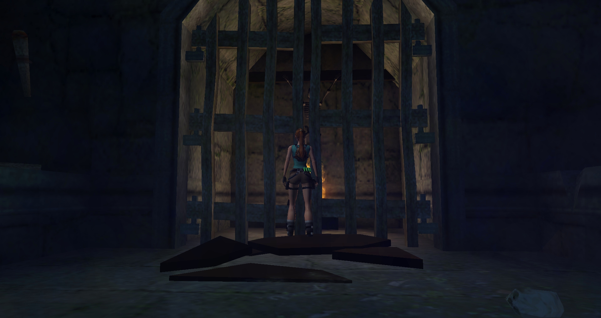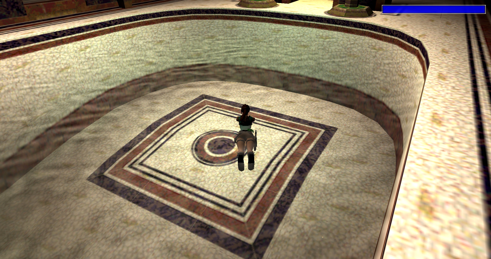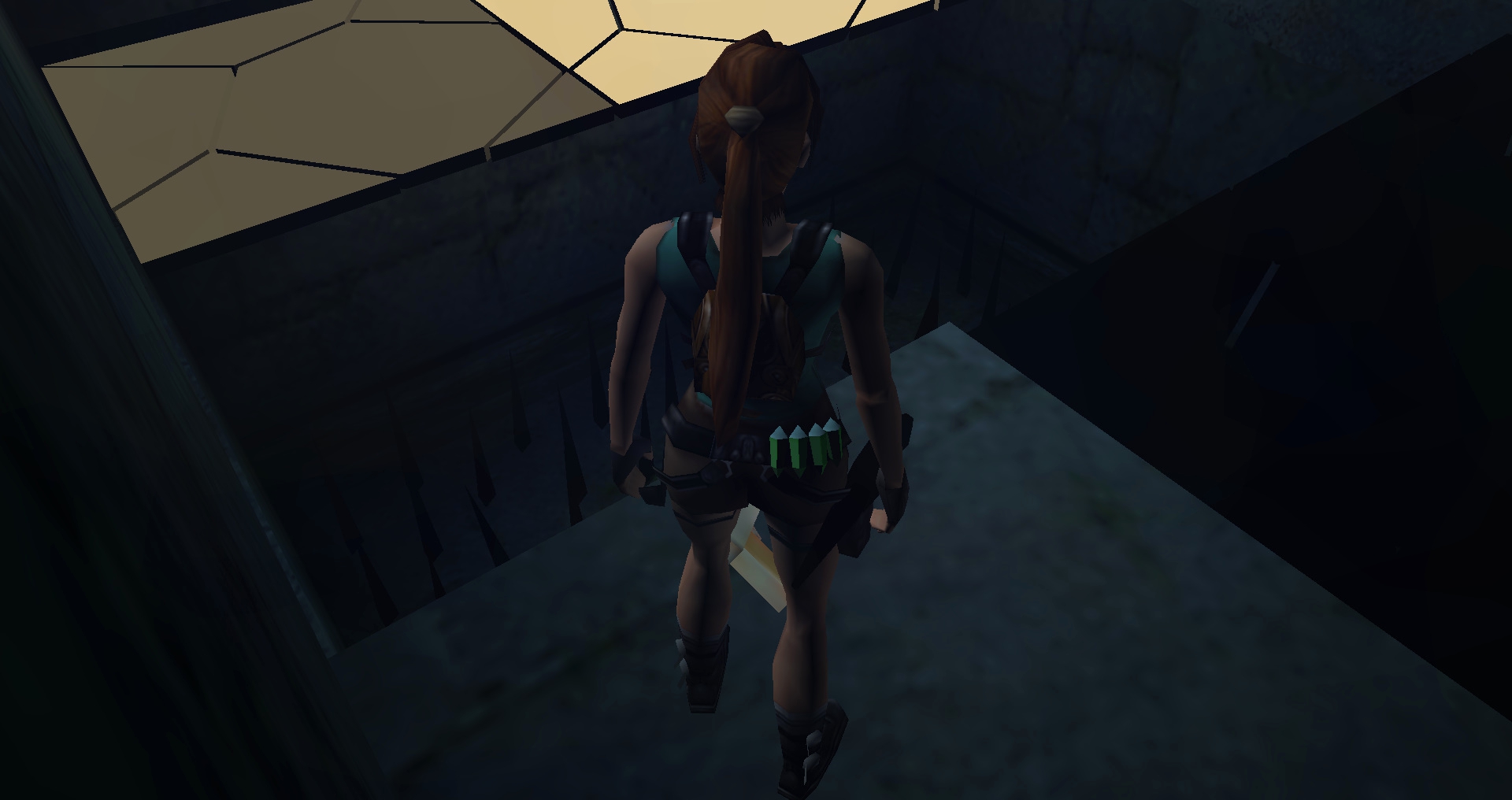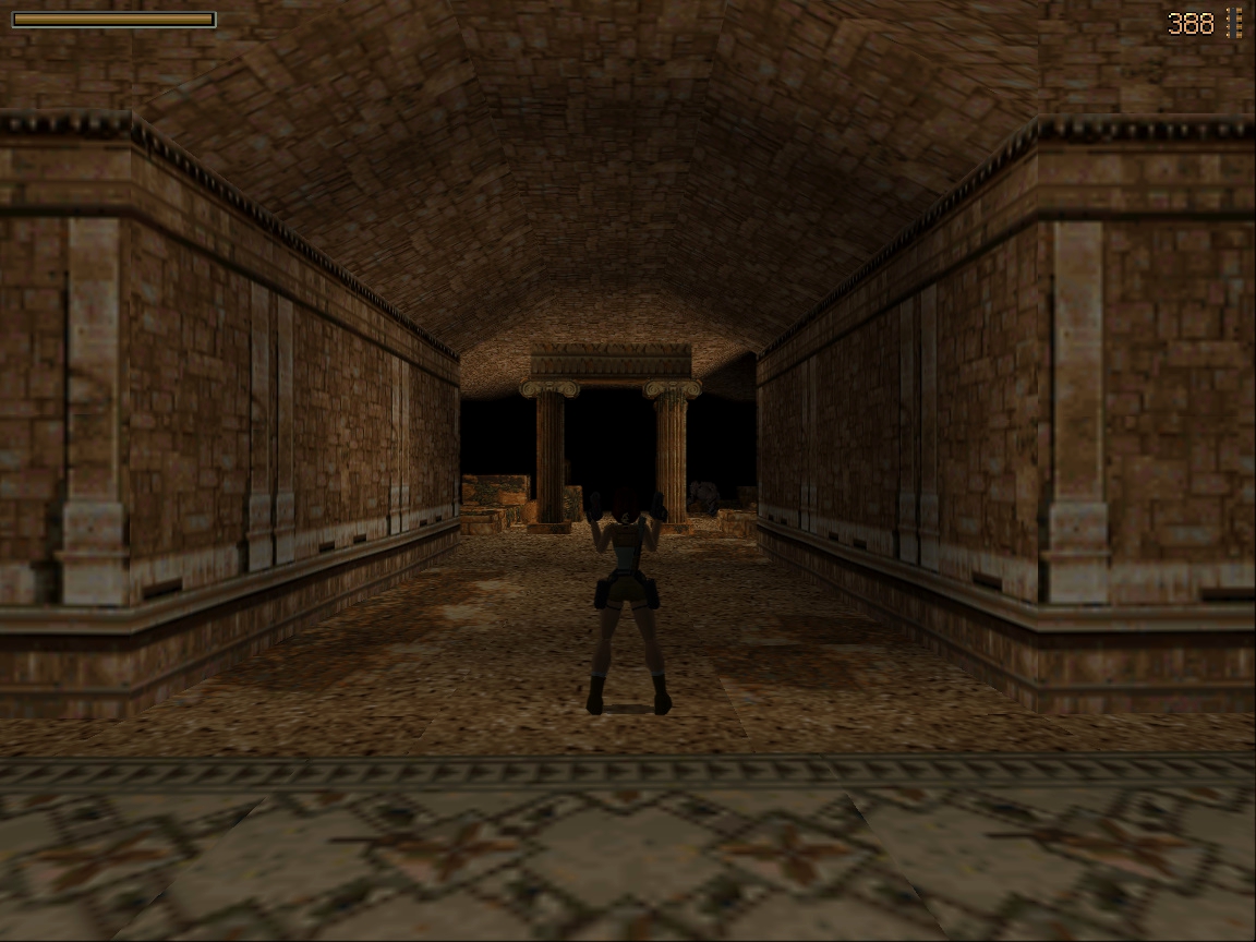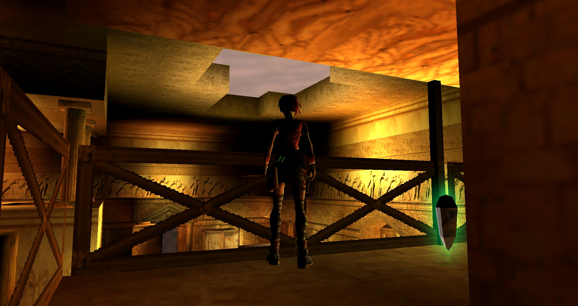 Вообще, уровень вобрал в себя две эпохи, отчего начинаешь игру с переделанной локации, а где-то к середине попадаешь в привычный 1996 год. Разумеется, до финала тут как до луны, враги стоят столбом, белые все, кроме крокодилов, которые, как оказалось, всё-таки могут плавать (хотя это может быть реставрацией фанатов, ибо уровень не запускался без вмешательства). Двери к испытаниям стоят без текстур, но коды к ним те же самые, что в оригинале, но зайдя к ним – ничего не работает. Колона не обрушает локацию, а огня и вовсе нет, тем не менее я не жалуюсь на такую недоработку, всё-таки огненное испытание поджигало не только Лару...