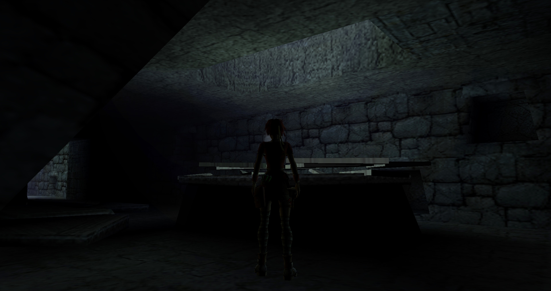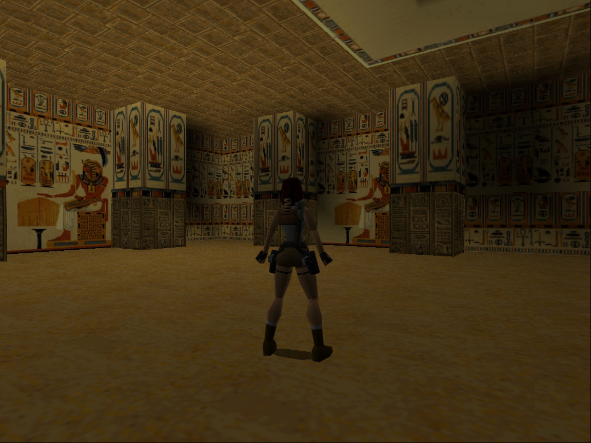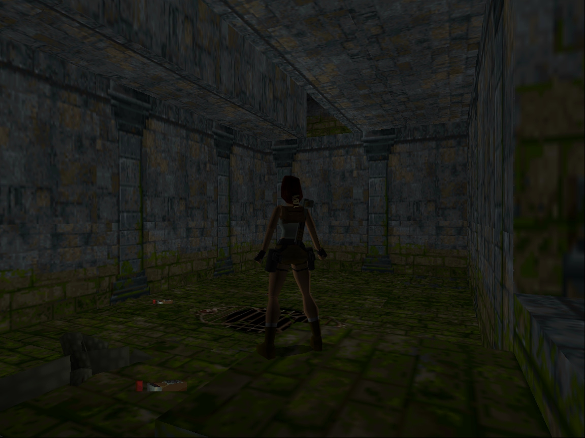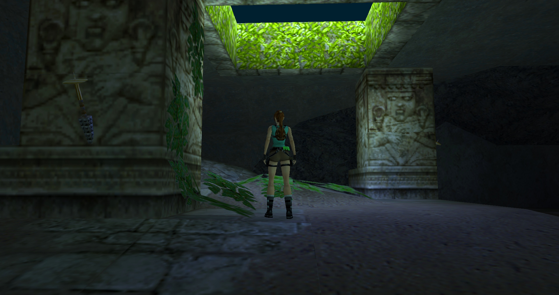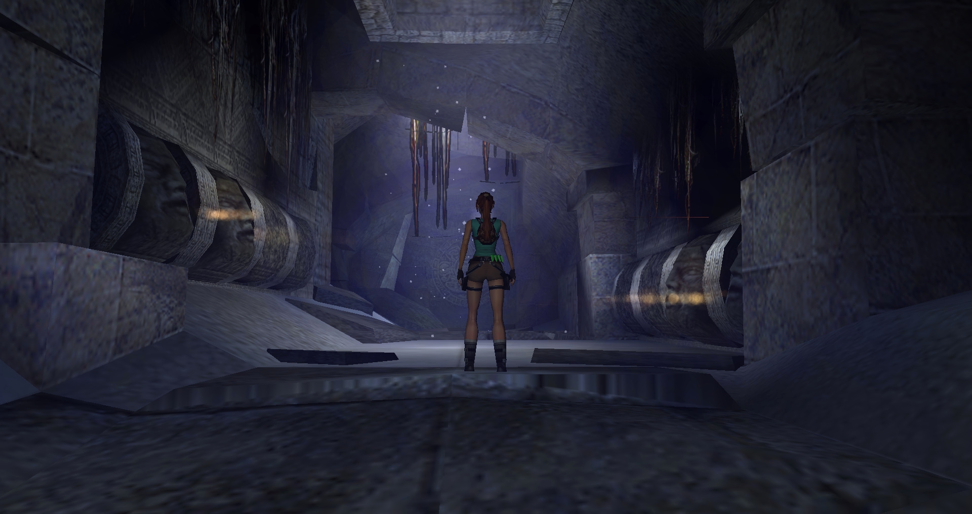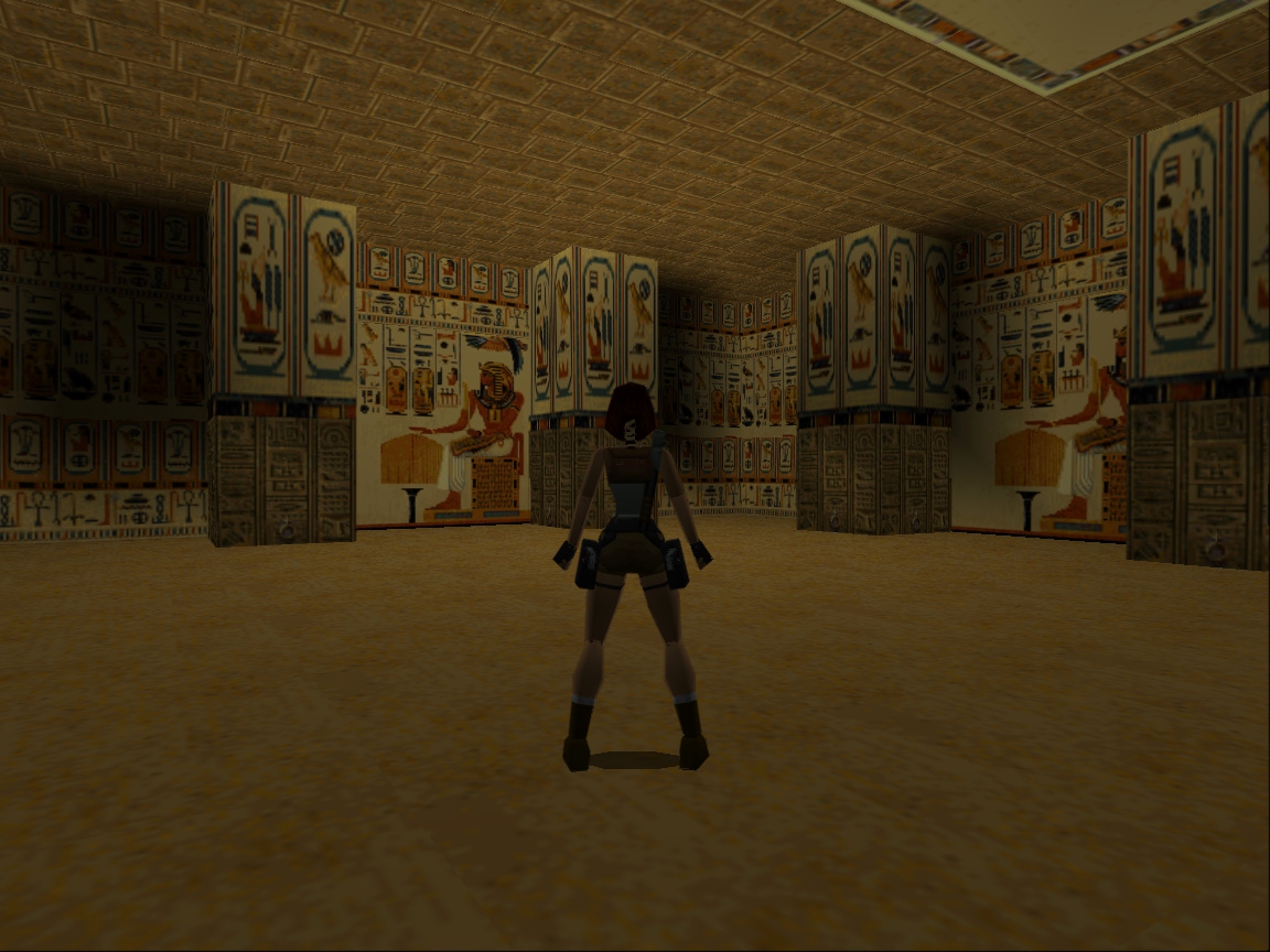 Вообще, уровень вобрал в себя две эпохи, отчего начинаешь игру с переделанной локации, а где-то к середине попадаешь в привычный 1996 год. Разумеется, до финала тут как до луны, враги стоят столбом, белые все, кроме крокодилов, которые, как оказалось, всё-таки могут плавать (хотя это может быть реставрацией фанатов, ибо уровень не запускался без вмешательства). Двери к испытаниям стоят без текстур, но коды к ним те же самые, что в оригинале, но зайдя к ним – ничего не работает. Колона не обрушает локацию, а огня и вовсе нет, тем не менее я не жалуюсь на такую недоработку, всё-таки огненное испытание поджигало не только Лару...