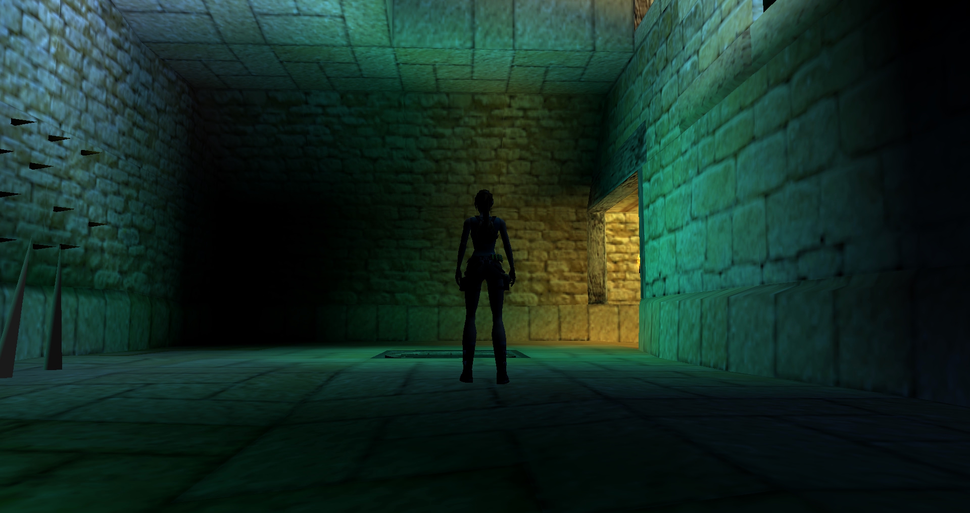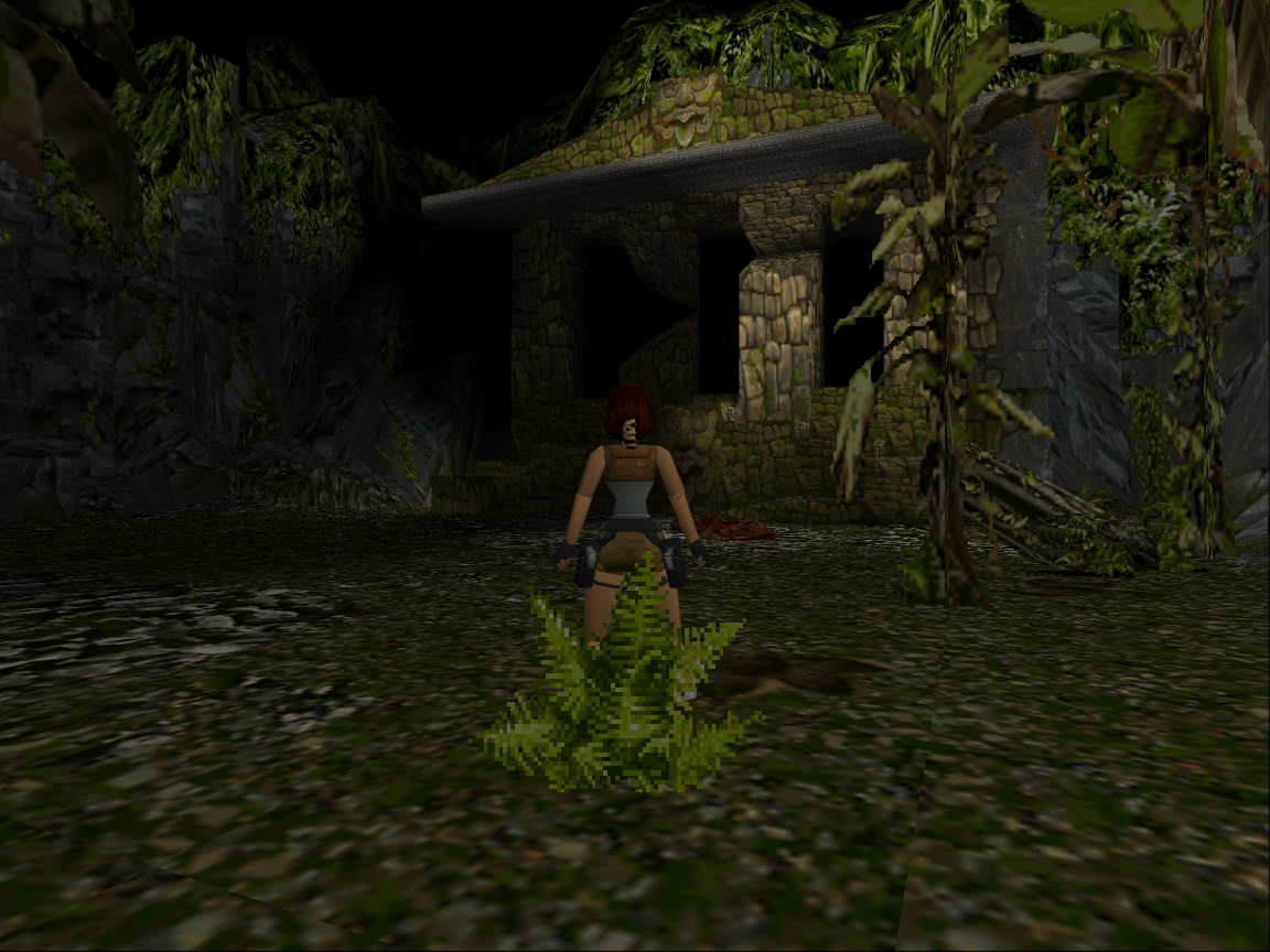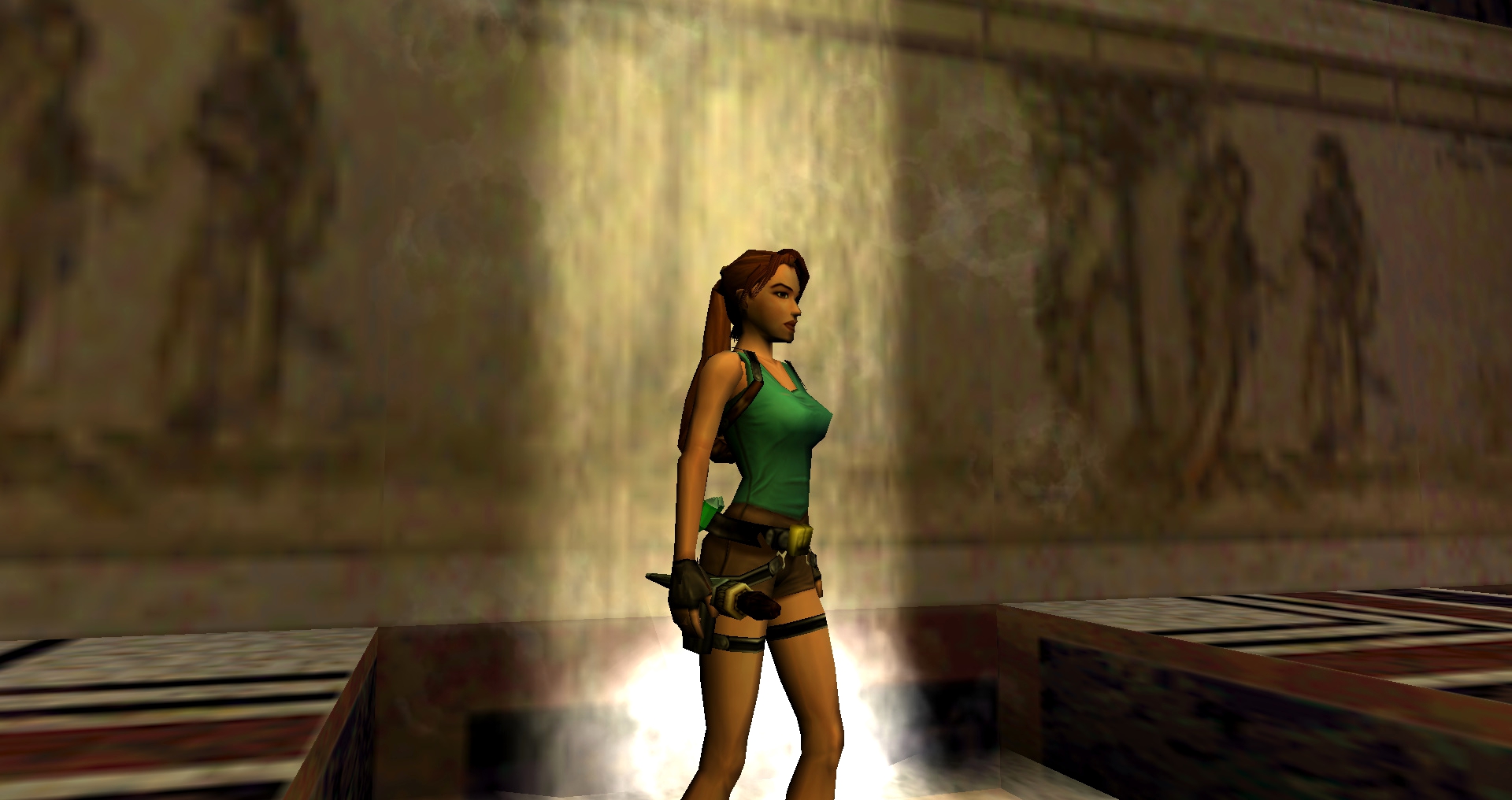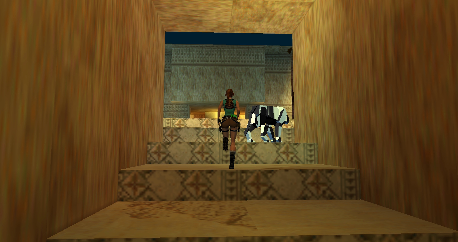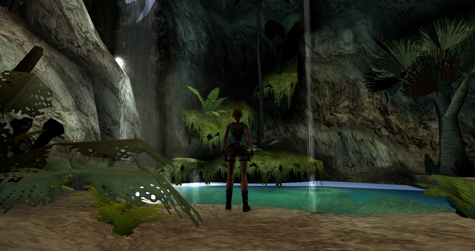 Вообще, уровень вобрал в себя две эпохи, отчего начинаешь игру с переделанной локации, а где-то к середине попадаешь в привычный 1996 год. Разумеется, до финала тут как до луны, враги стоят столбом, белые все, кроме крокодилов, которые, как оказалось, всё-таки могут плавать (хотя это может быть реставрацией фанатов, ибо уровень не запускался без вмешательства). Двери к испытаниям стоят без текстур, но коды к ним те же самые, что в оригинале, но зайдя к ним – ничего не работает. Колона не обрушает локацию, а огня и вовсе нет, тем не менее я не жалуюсь на такую недоработку, всё-таки огненное испытание поджигало не только Лару...