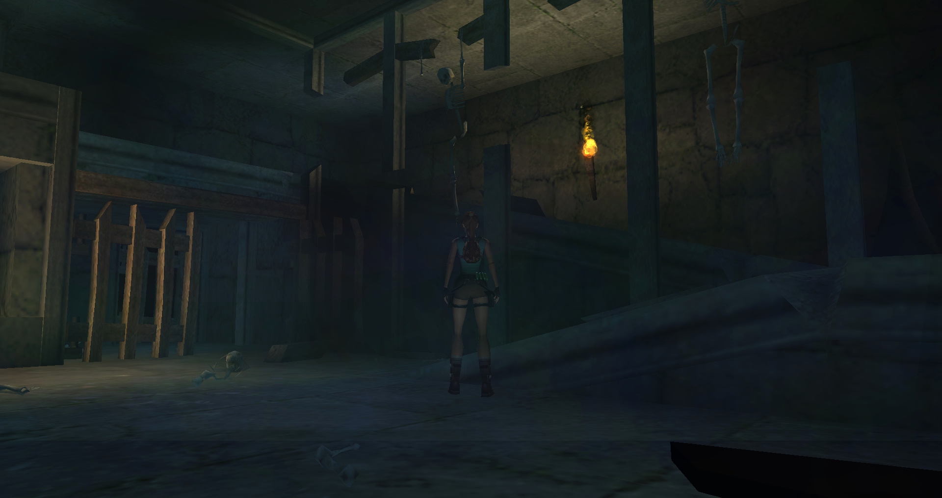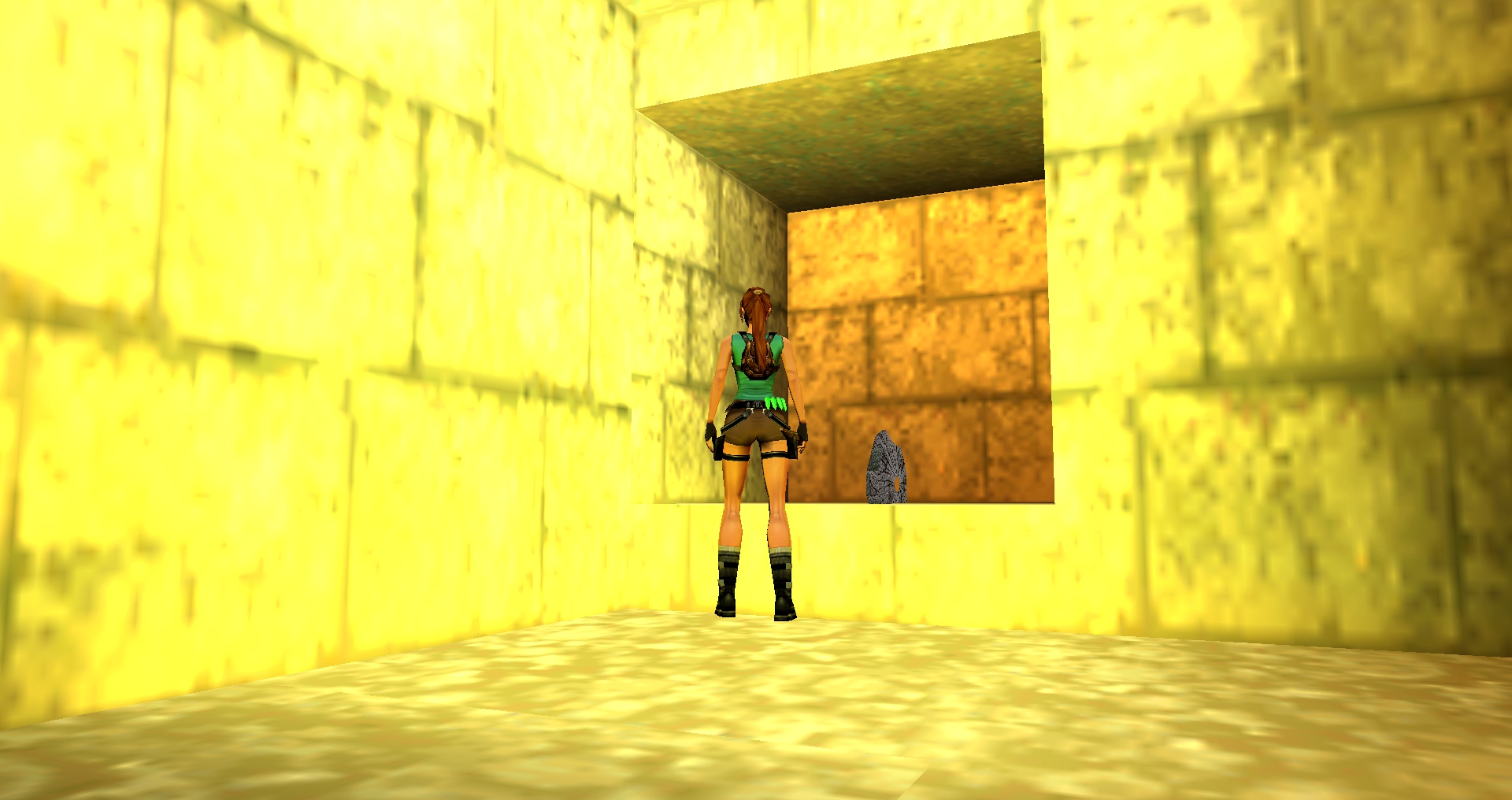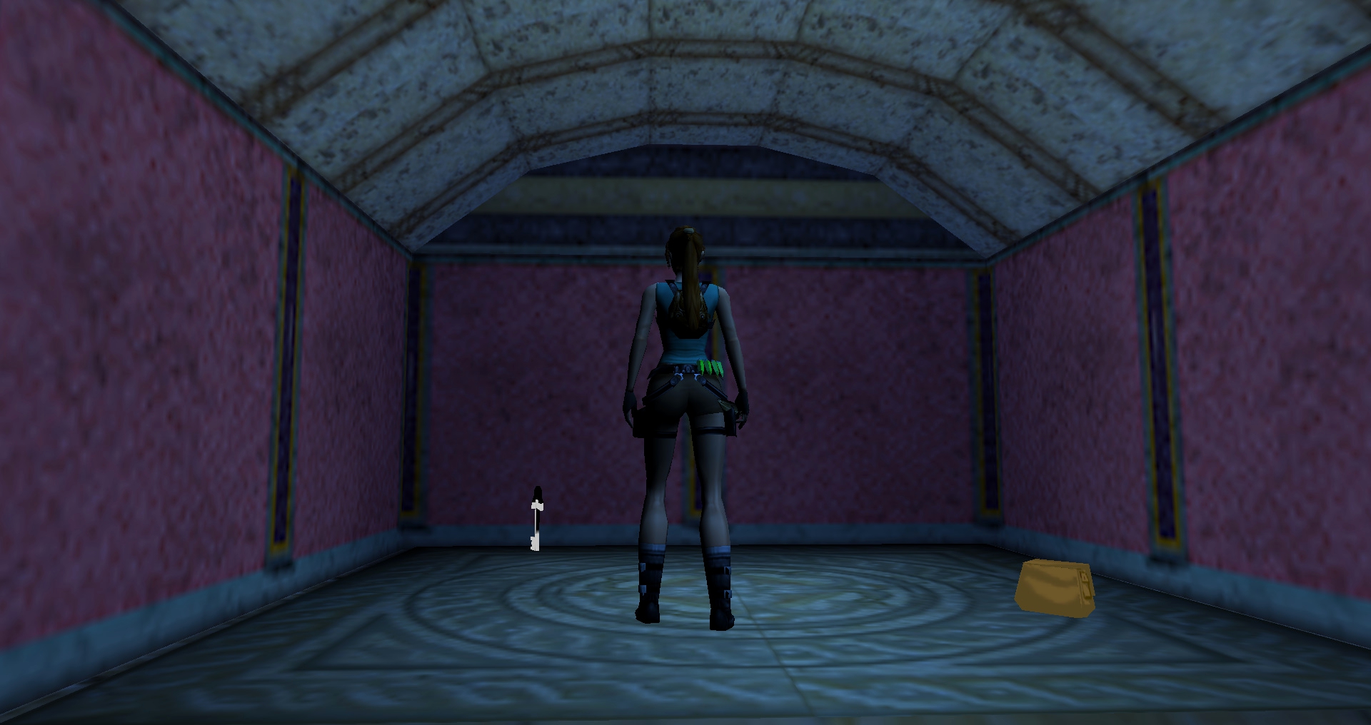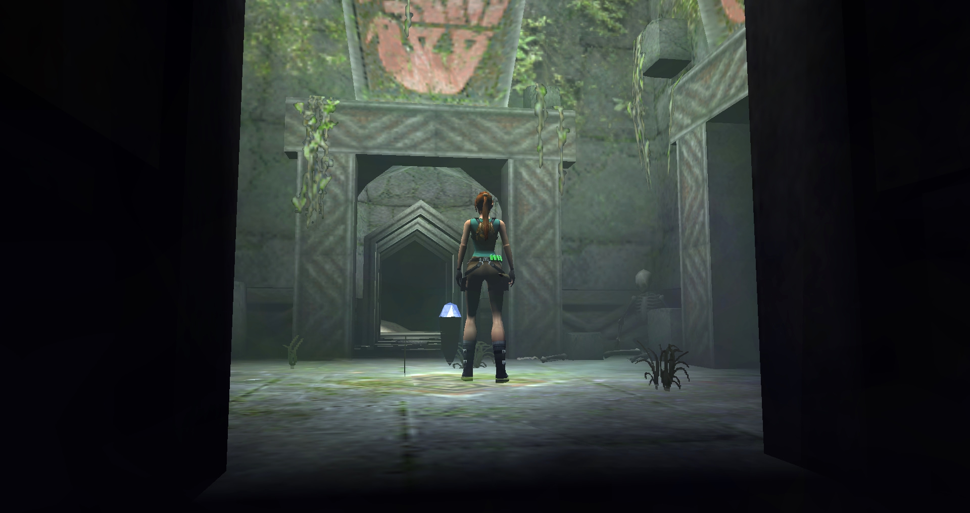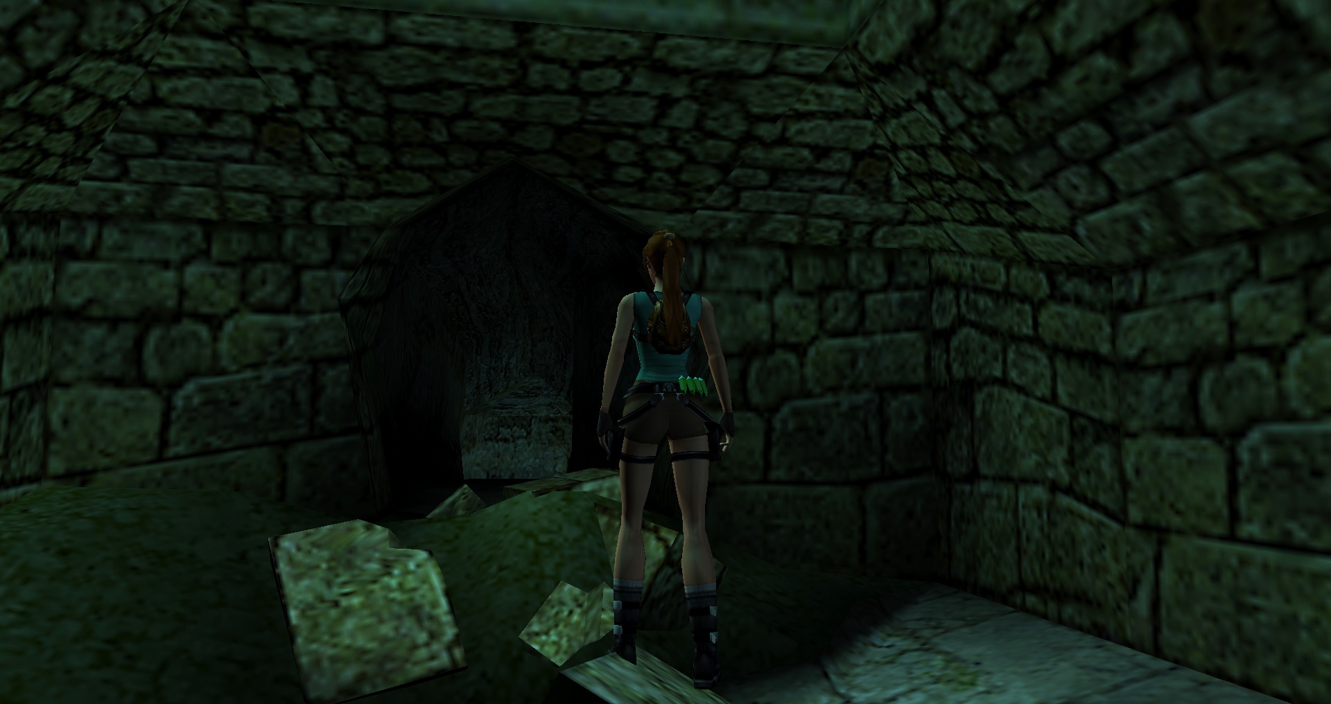 Вообще, уровень вобрал в себя две эпохи, отчего начинаешь игру с переделанной локации, а где-то к середине попадаешь в привычный 1996 год. Разумеется, до финала тут как до луны, враги стоят столбом, белые все, кроме крокодилов, которые, как оказалось, всё-таки могут плавать (хотя это может быть реставрацией фанатов, ибо уровень не запускался без вмешательства). Двери к испытаниям стоят без текстур, но коды к ним те же самые, что в оригинале, но зайдя к ним – ничего не работает. Колона не обрушает локацию, а огня и вовсе нет, тем не менее я не жалуюсь на такую недоработку, всё-таки огненное испытание поджигало не только Лару...
