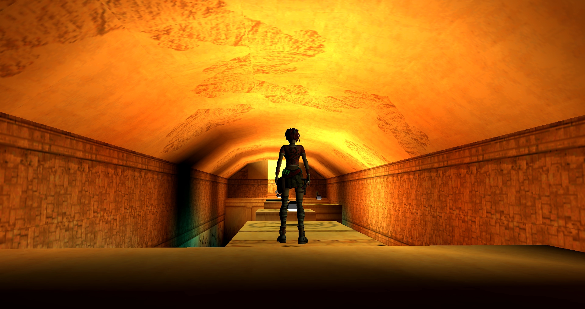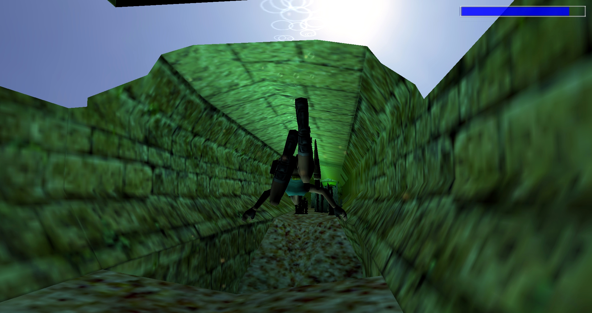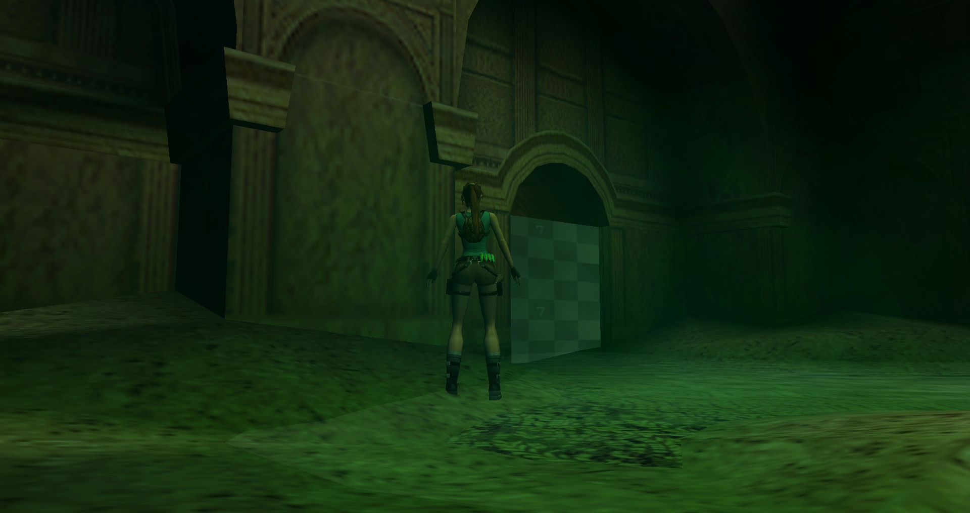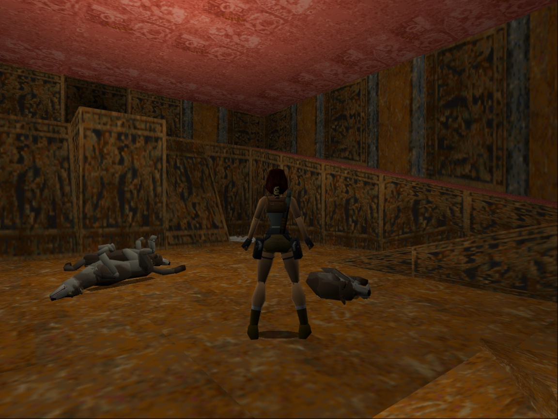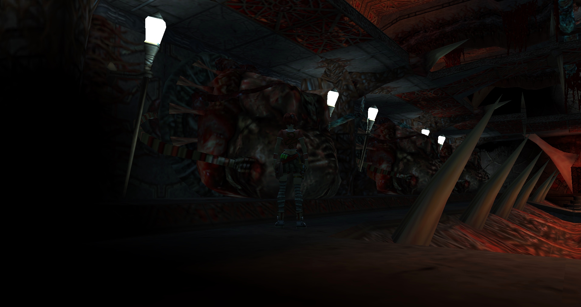 Вообще, уровень вобрал в себя две эпохи, отчего начинаешь игру с переделанной локации, а где-то к середине попадаешь в привычный 1996 год. Разумеется, до финала тут как до луны, враги стоят столбом, белые все, кроме крокодилов, которые, как оказалось, всё-таки могут плавать (хотя это может быть реставрацией фанатов, ибо уровень не запускался без вмешательства). Двери к испытаниям стоят без текстур, но коды к ним те же самые, что в оригинале, но зайдя к ним – ничего не работает. Колона не обрушает локацию, а огня и вовсе нет, тем не менее я не жалуюсь на такую недоработку, всё-таки огненное испытание поджигало не только Лару...