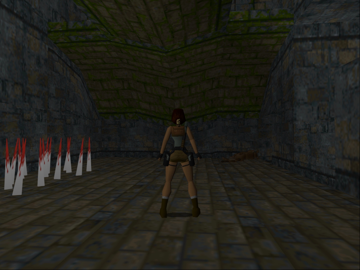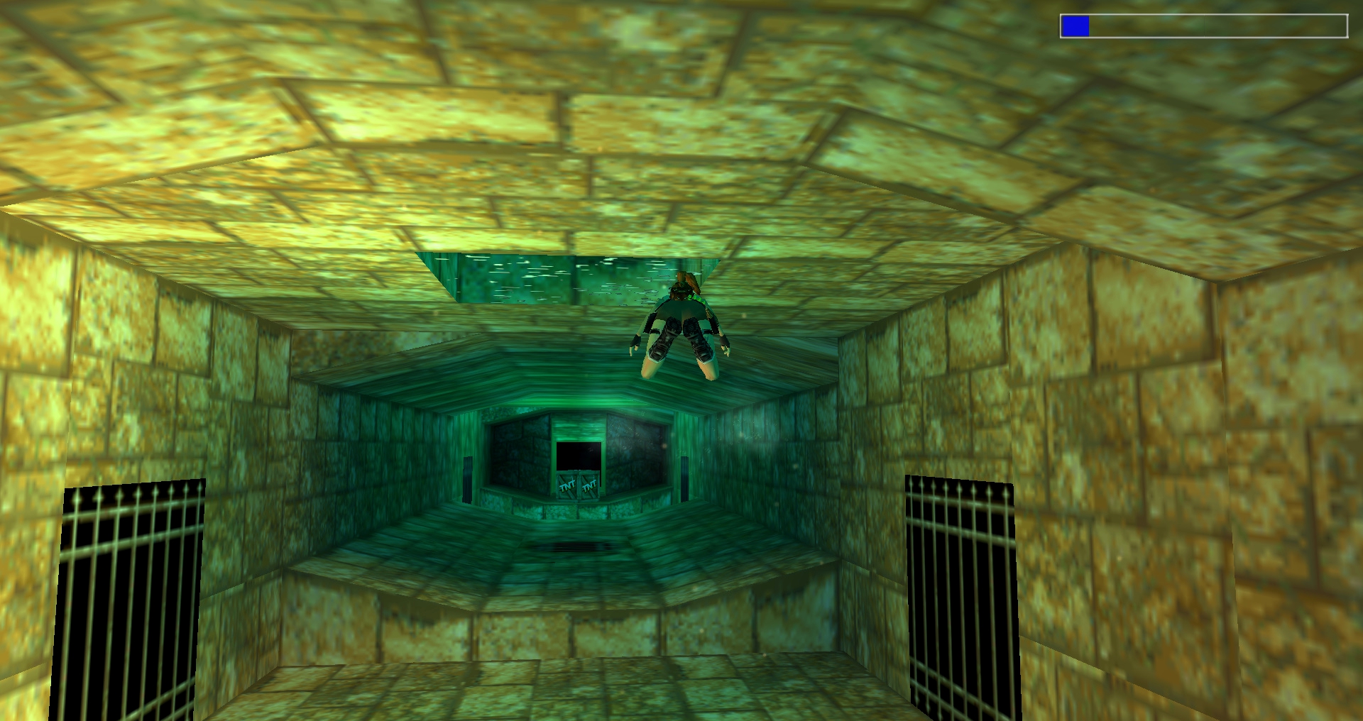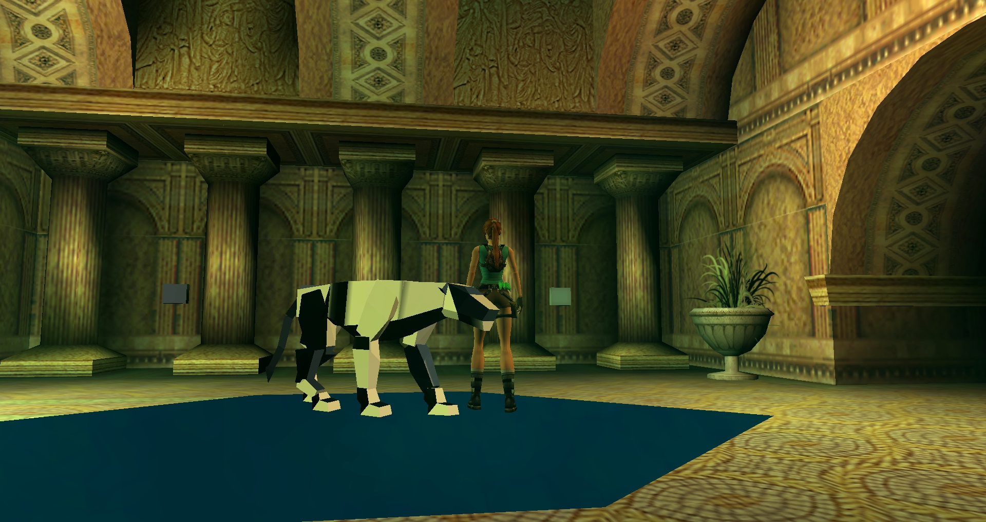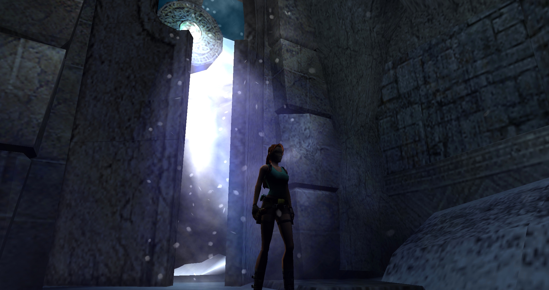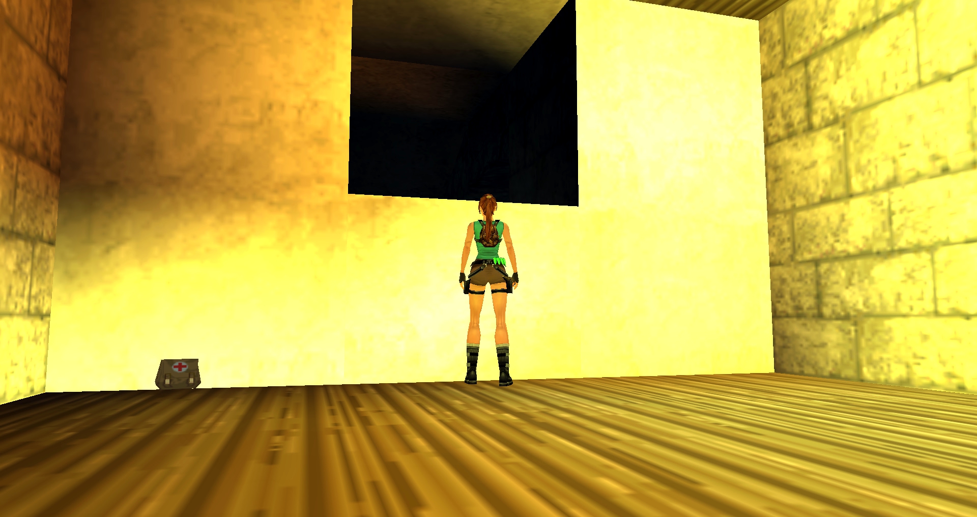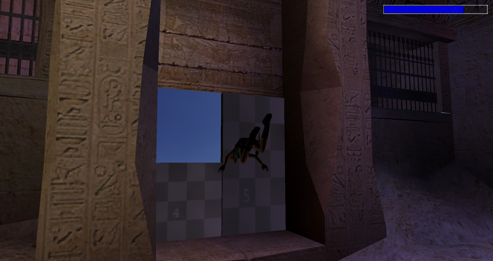 Вообще, уровень вобрал в себя две эпохи, отчего начинаешь игру с переделанной локации, а где-то к середине попадаешь в привычный 1996 год. Разумеется, до финала тут как до луны, враги стоят столбом, белые все, кроме крокодилов, которые, как оказалось, всё-таки могут плавать (хотя это может быть реставрацией фанатов, ибо уровень не запускался без вмешательства). Двери к испытаниям стоят без текстур, но коды к ним те же самые, что в оригинале, но зайдя к ним – ничего не работает. Колона не обрушает локацию, а огня и вовсе нет, тем не менее я не жалуюсь на такую недоработку, всё-таки огненное испытание поджигало не только Лару...