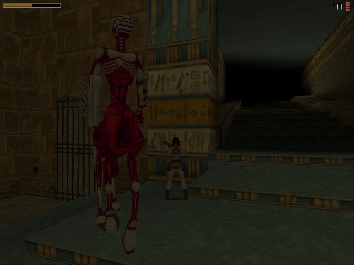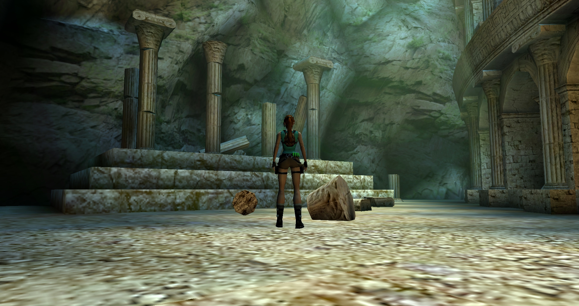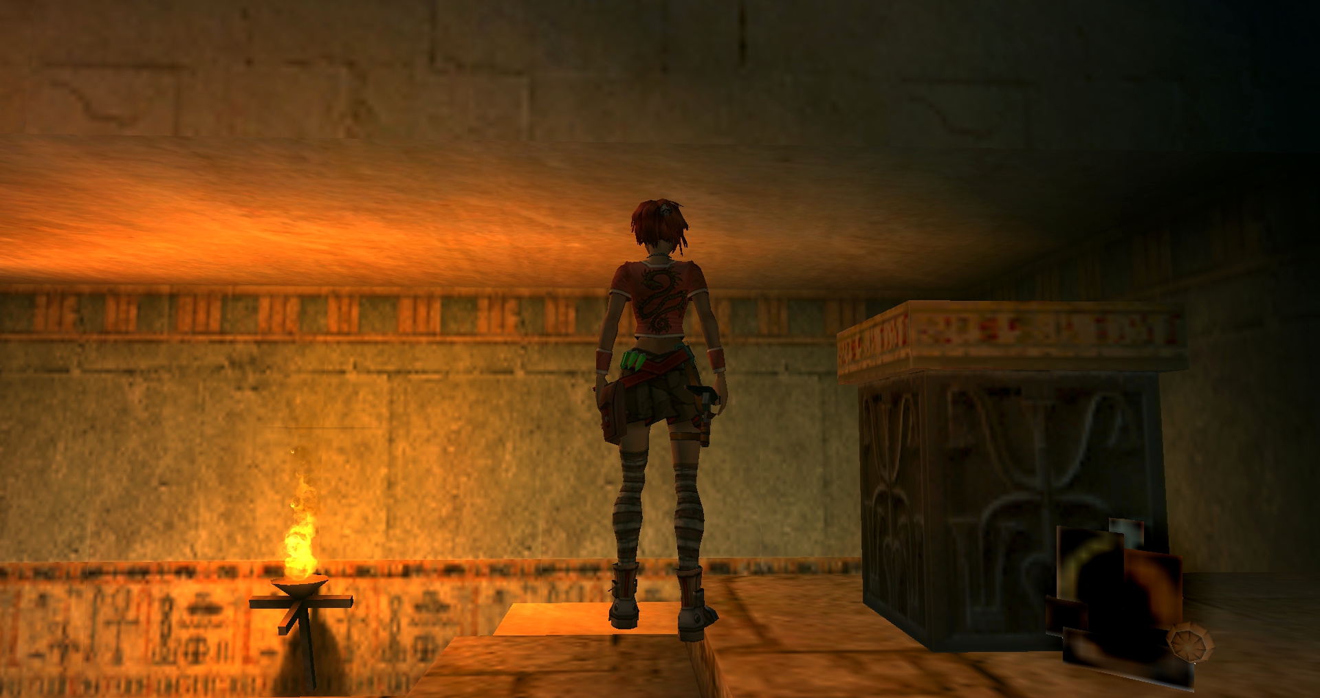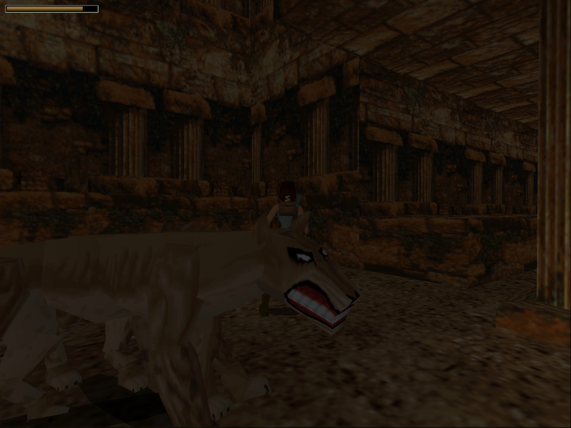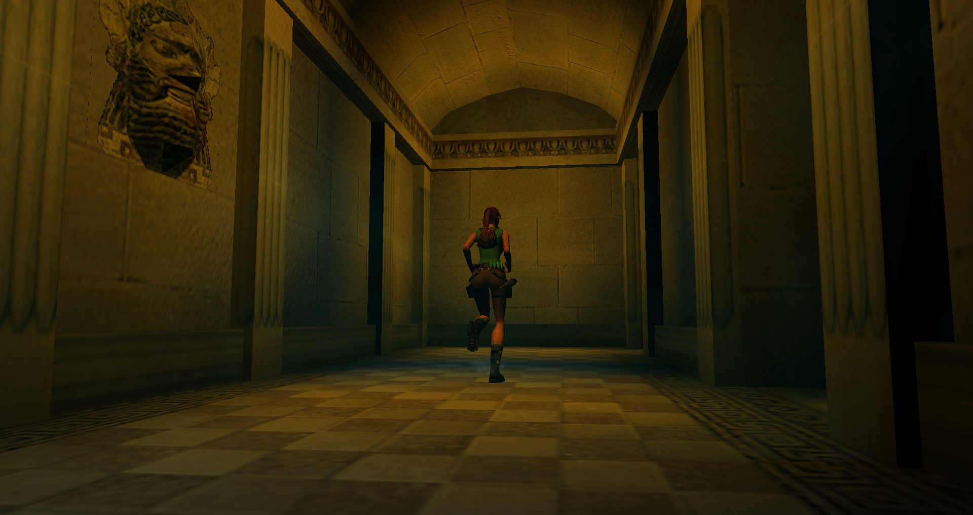 Вообще, уровень вобрал в себя две эпохи, отчего начинаешь игру с переделанной локации, а где-то к середине попадаешь в привычный 1996 год. Разумеется, до финала тут как до луны, враги стоят столбом, белые все, кроме крокодилов, которые, как оказалось, всё-таки могут плавать (хотя это может быть реставрацией фанатов, ибо уровень не запускался без вмешательства). Двери к испытаниям стоят без текстур, но коды к ним те же самые, что в оригинале, но зайдя к ним – ничего не работает. Колона не обрушает локацию, а огня и вовсе нет, тем не менее я не жалуюсь на такую недоработку, всё-таки огненное испытание поджигало не только Лару...
