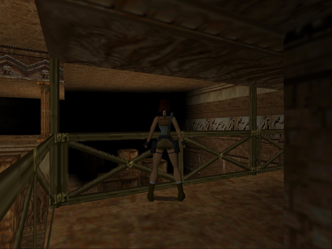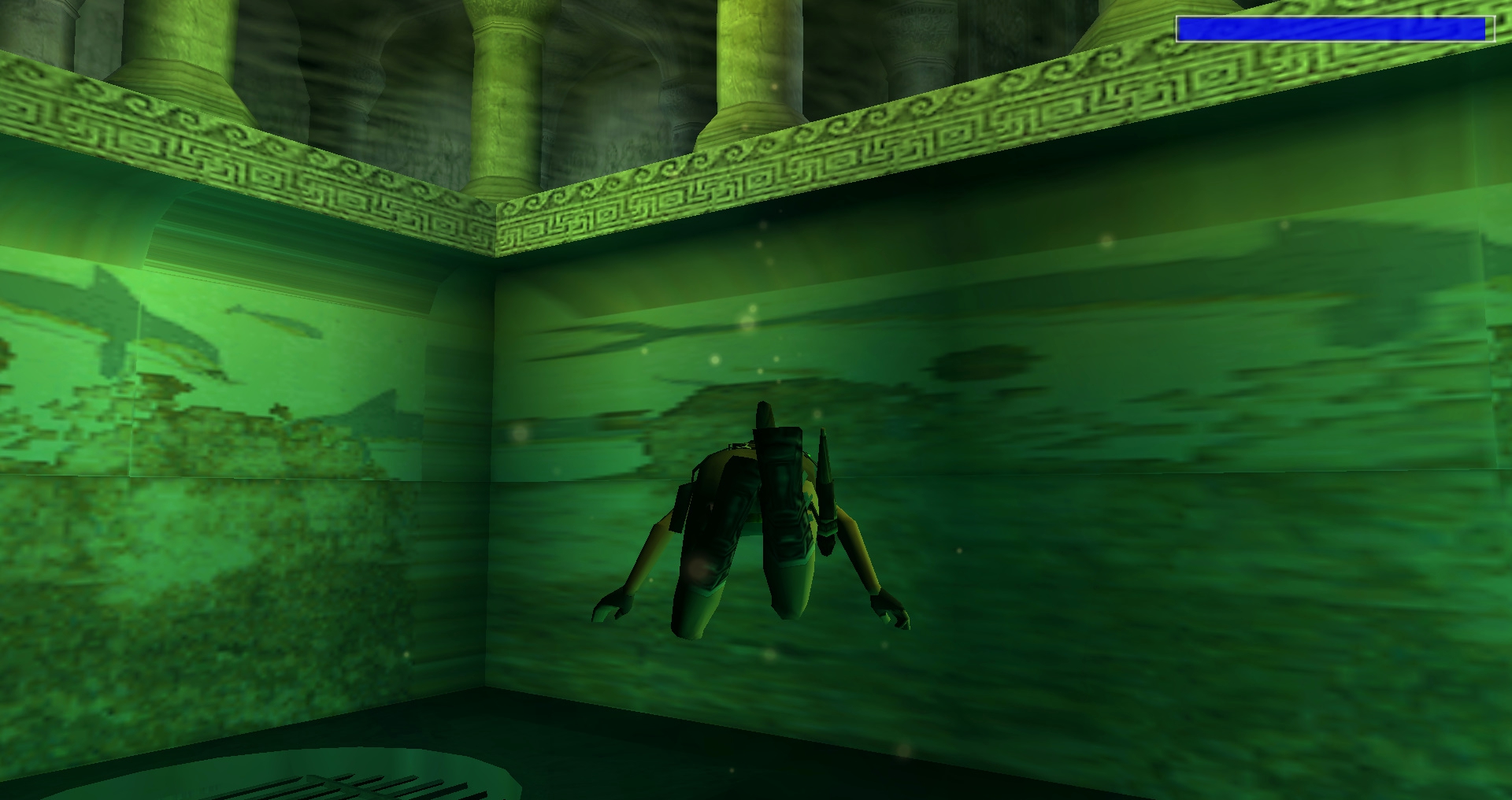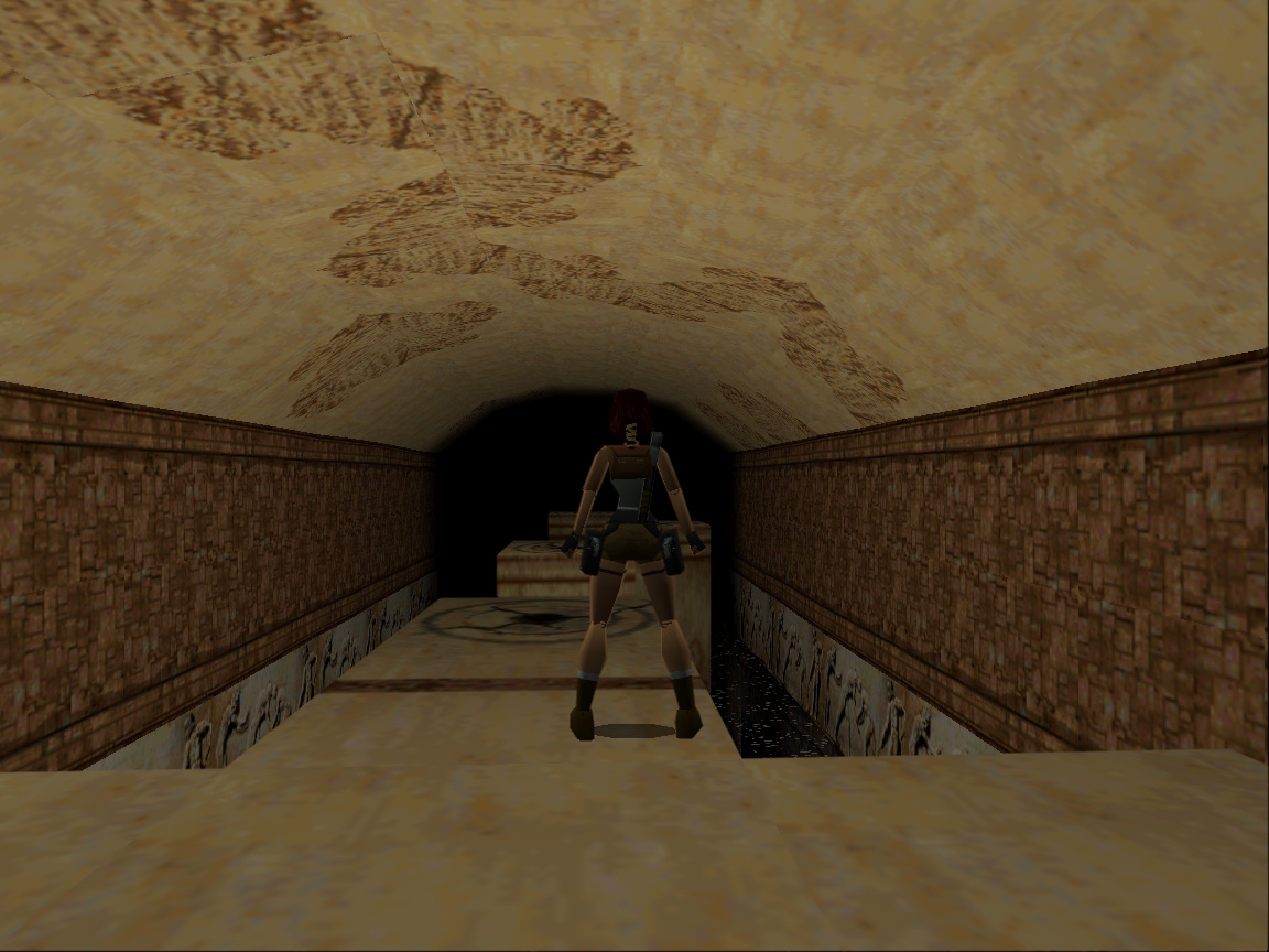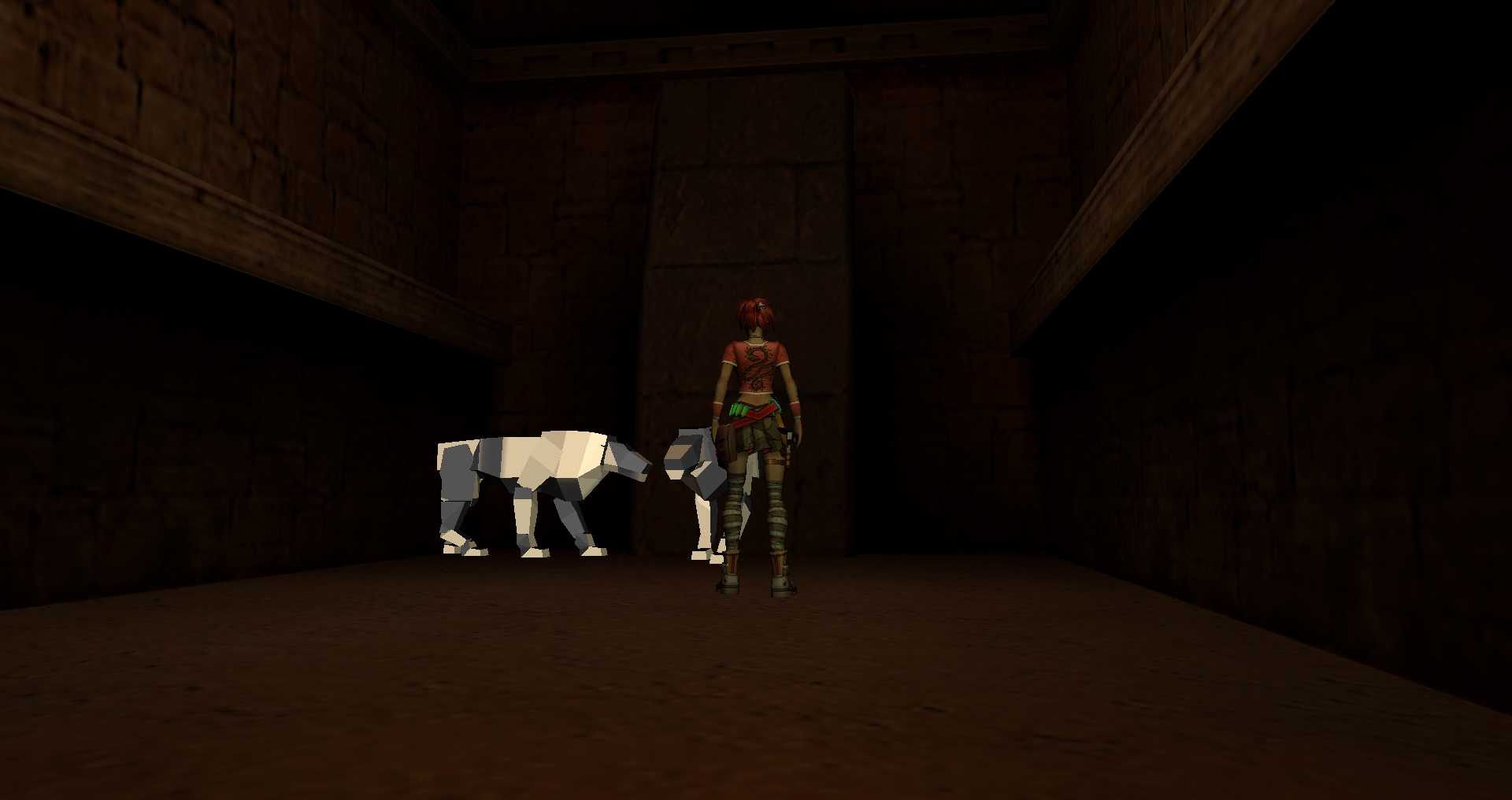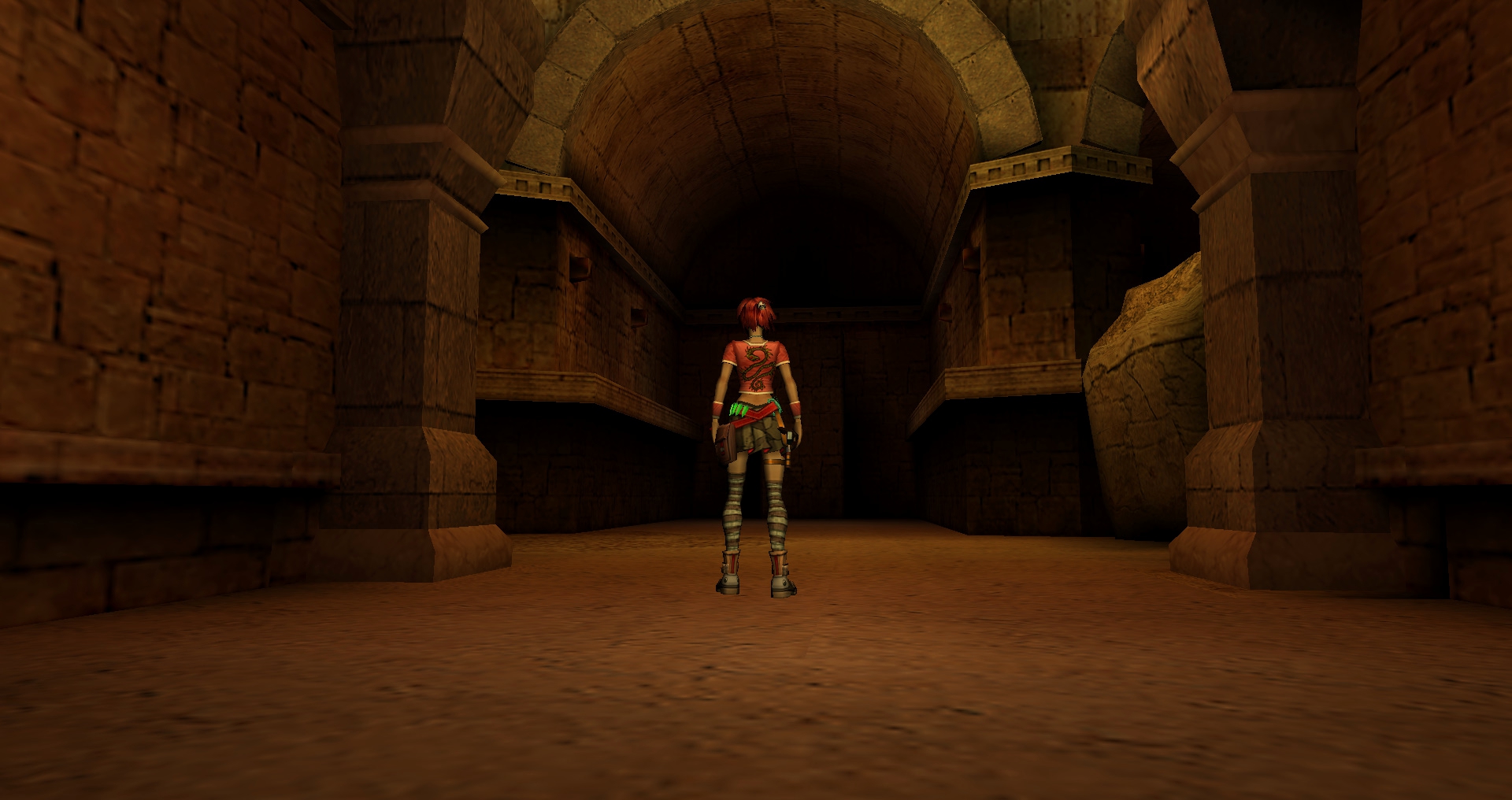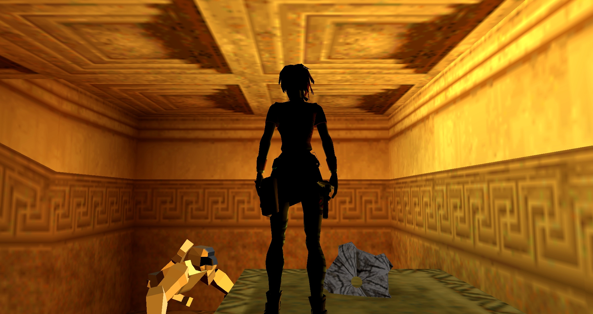 Вообще, уровень вобрал в себя две эпохи, отчего начинаешь игру с переделанной локации, а где-то к середине попадаешь в привычный 1996 год. Разумеется, до финала тут как до луны, враги стоят столбом, белые все, кроме крокодилов, которые, как оказалось, всё-таки могут плавать (хотя это может быть реставрацией фанатов, ибо уровень не запускался без вмешательства). Двери к испытаниям стоят без текстур, но коды к ним те же самые, что в оригинале, но зайдя к ним – ничего не работает. Колона не обрушает локацию, а огня и вовсе нет, тем не менее я не жалуюсь на такую недоработку, всё-таки огненное испытание поджигало не только Лару...