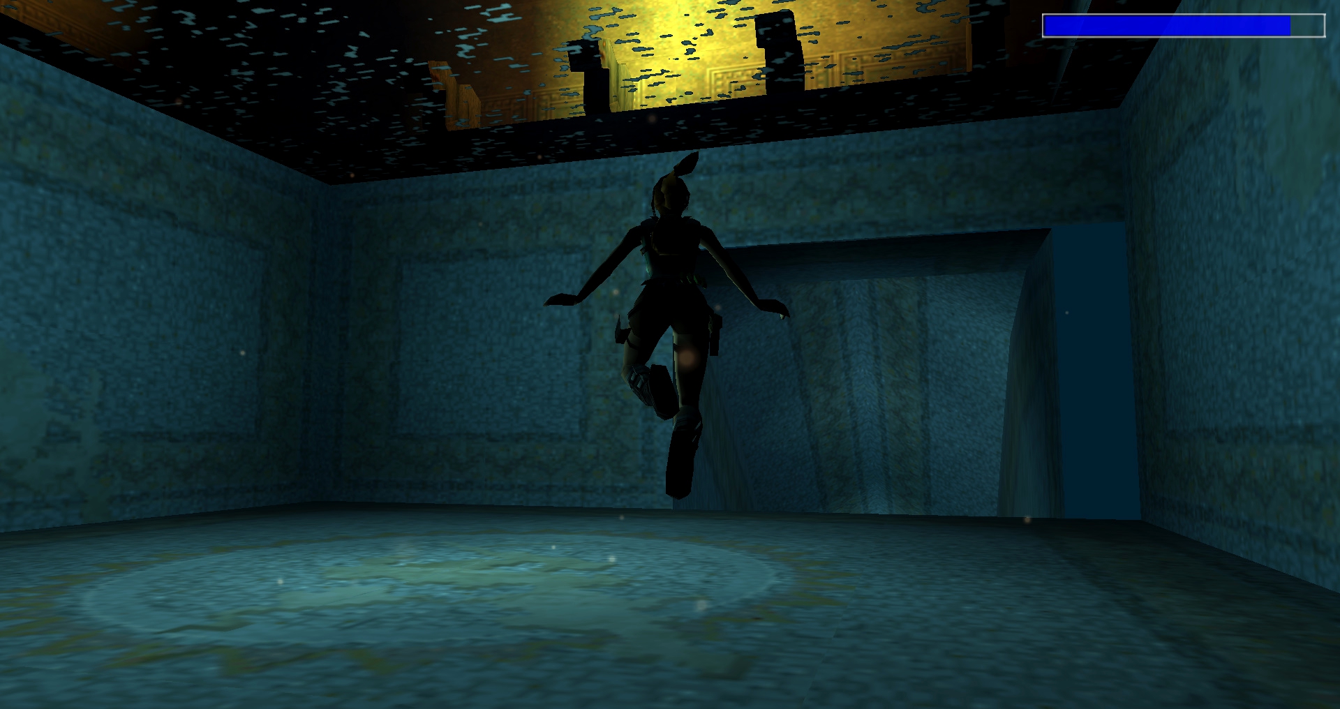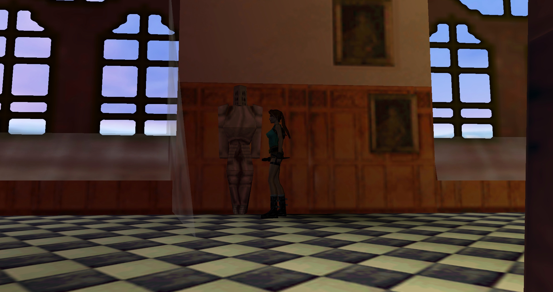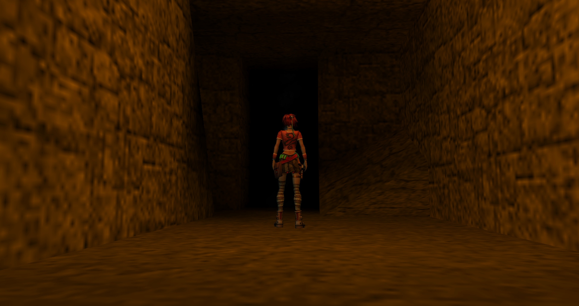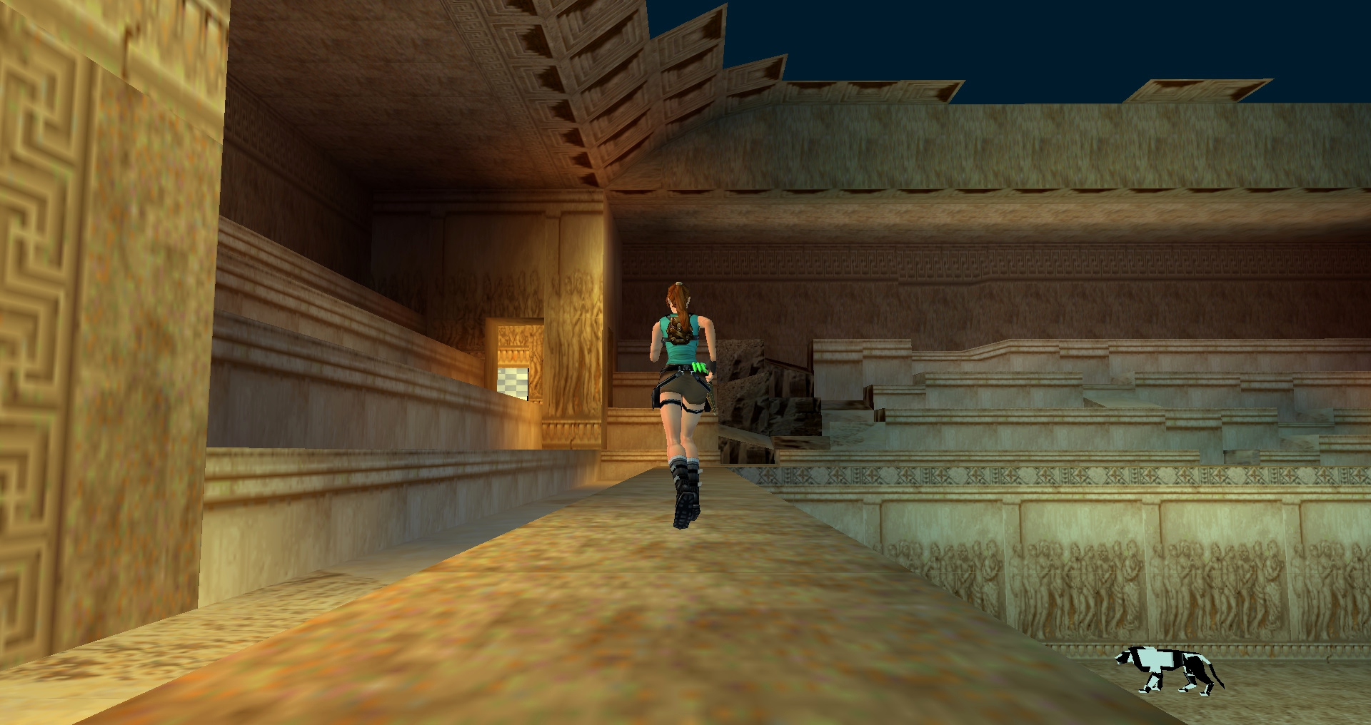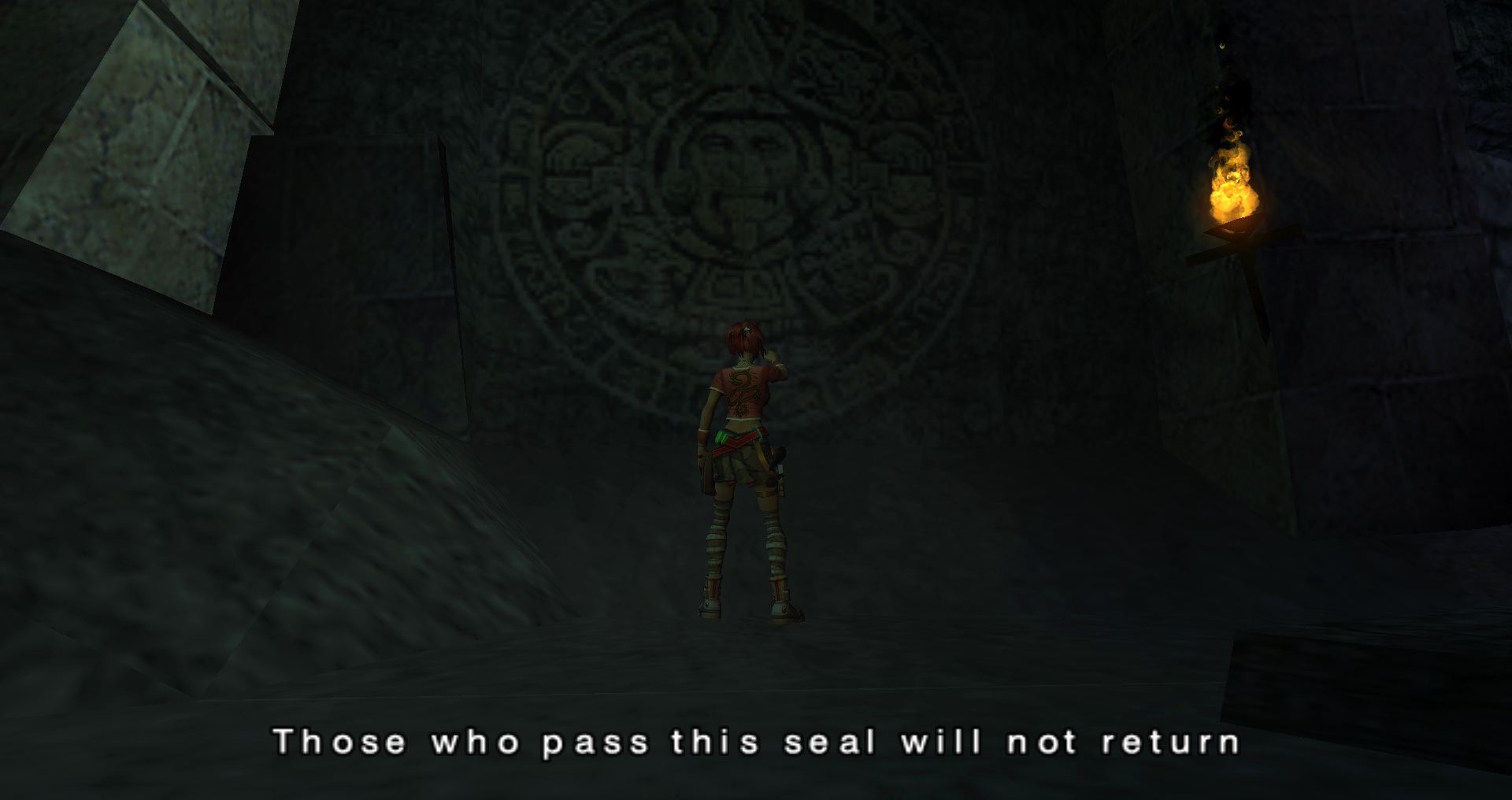 Вообще, уровень вобрал в себя две эпохи, отчего начинаешь игру с переделанной локации, а где-то к середине попадаешь в привычный 1996 год. Разумеется, до финала тут как до луны, враги стоят столбом, белые все, кроме крокодилов, которые, как оказалось, всё-таки могут плавать (хотя это может быть реставрацией фанатов, ибо уровень не запускался без вмешательства). Двери к испытаниям стоят без текстур, но коды к ним те же самые, что в оригинале, но зайдя к ним – ничего не работает. Колона не обрушает локацию, а огня и вовсе нет, тем не менее я не жалуюсь на такую недоработку, всё-таки огненное испытание поджигало не только Лару...